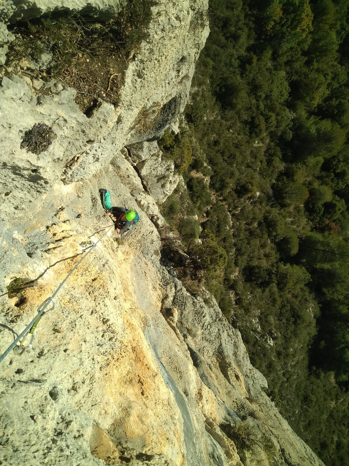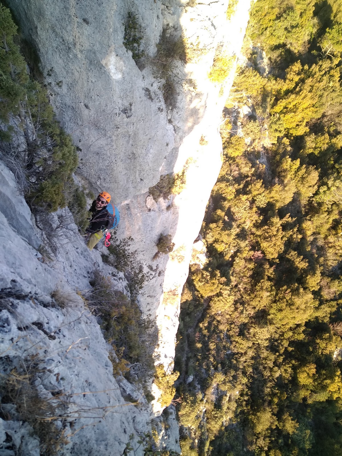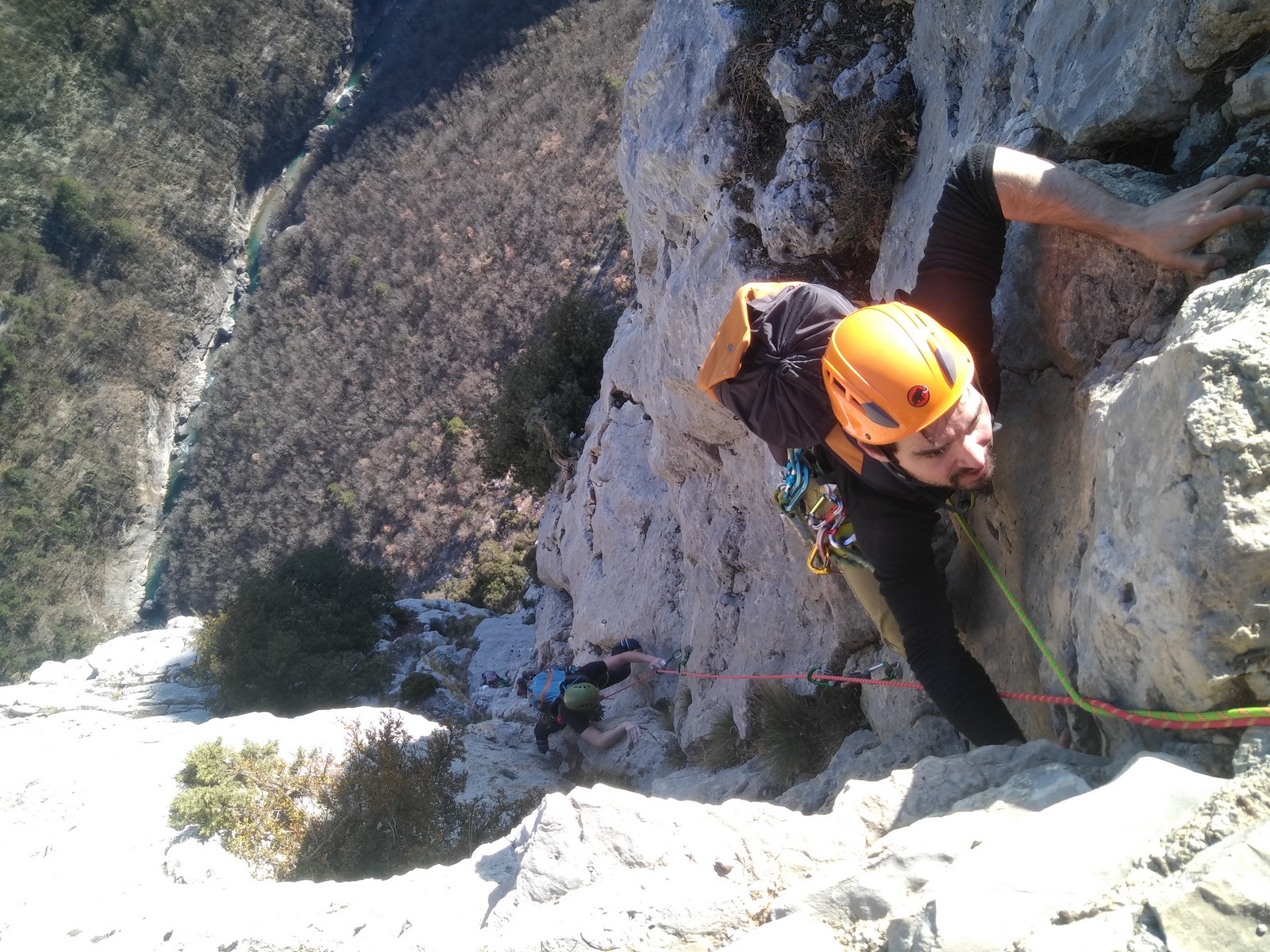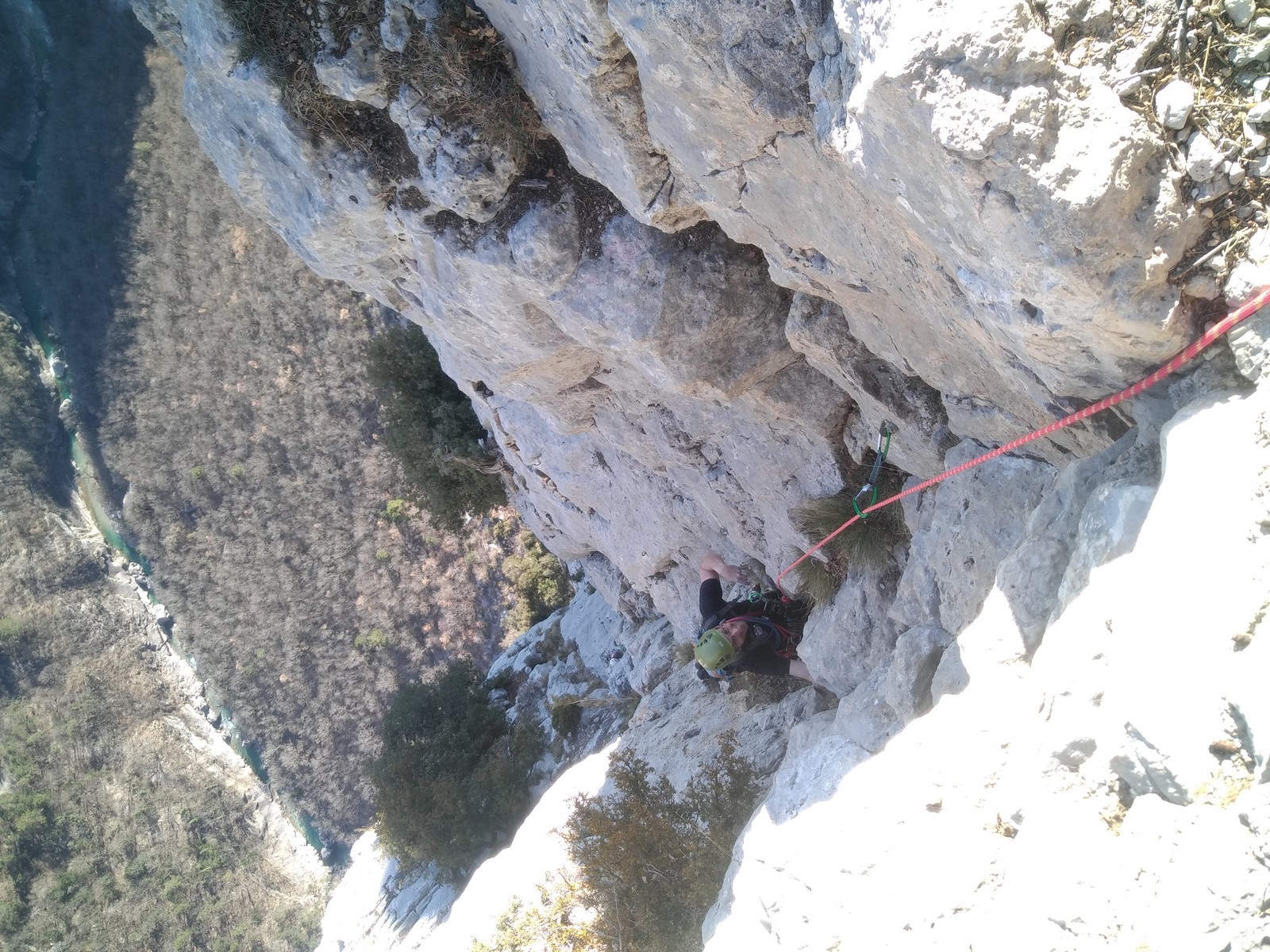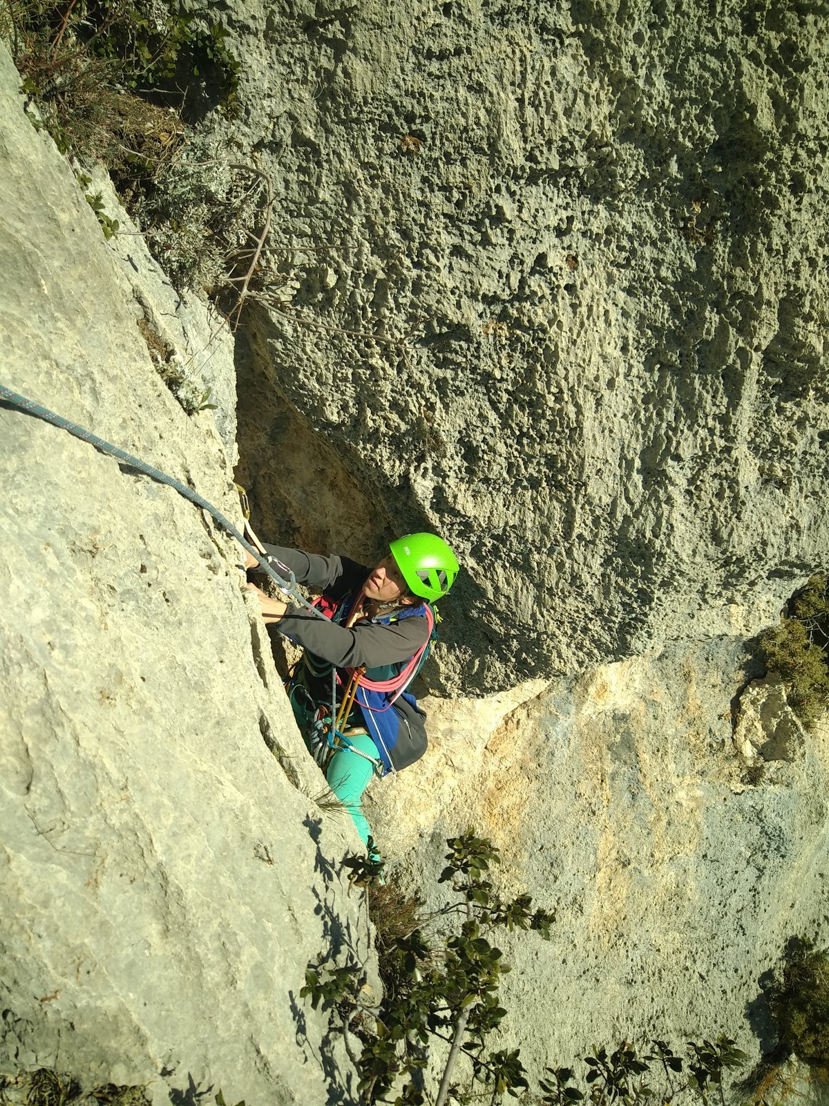 Je pars donc avec Théo dans Esmeralda, la seule voie en 3 longueurs 5c, 6a, 6c.