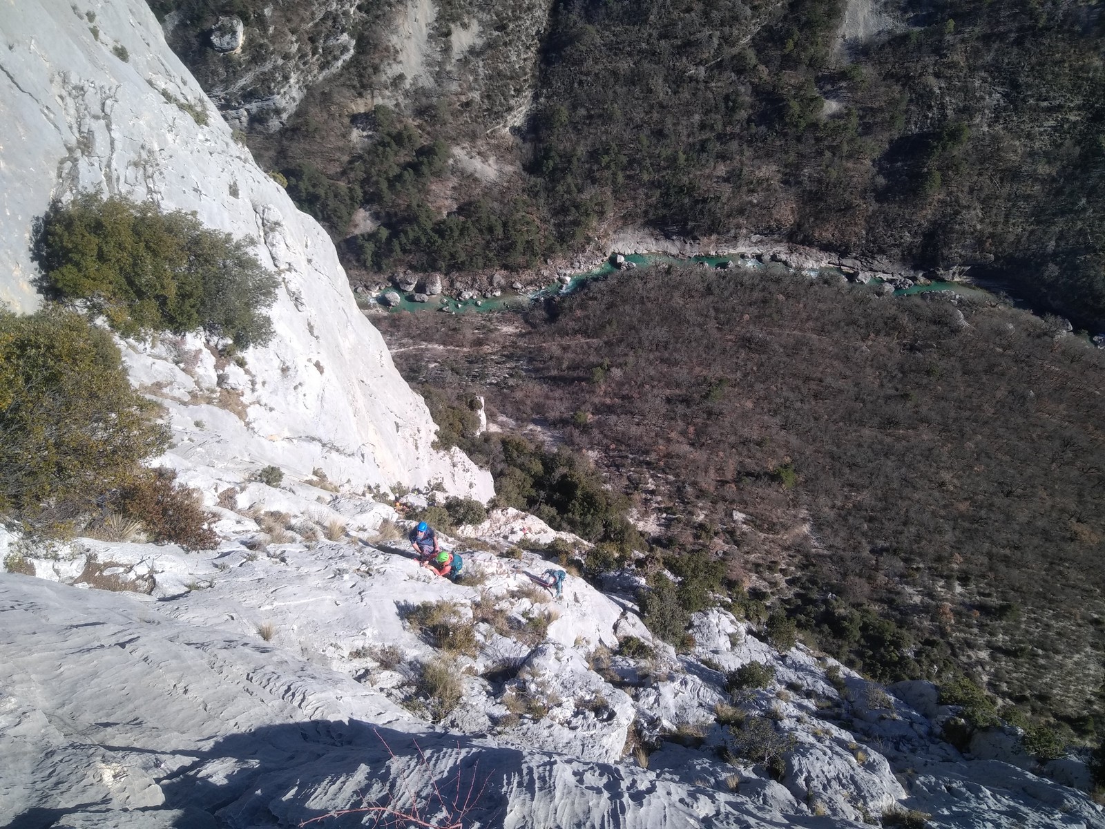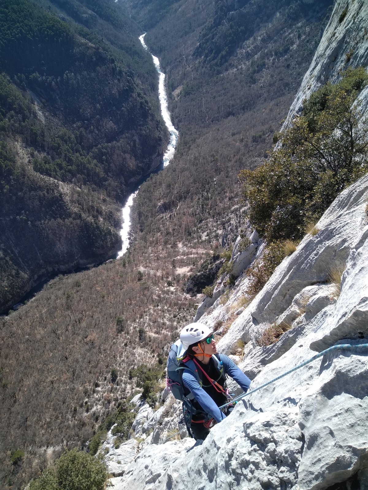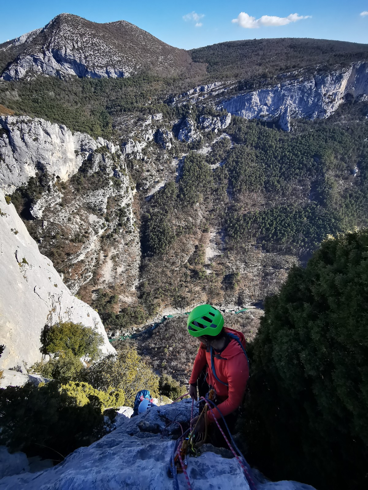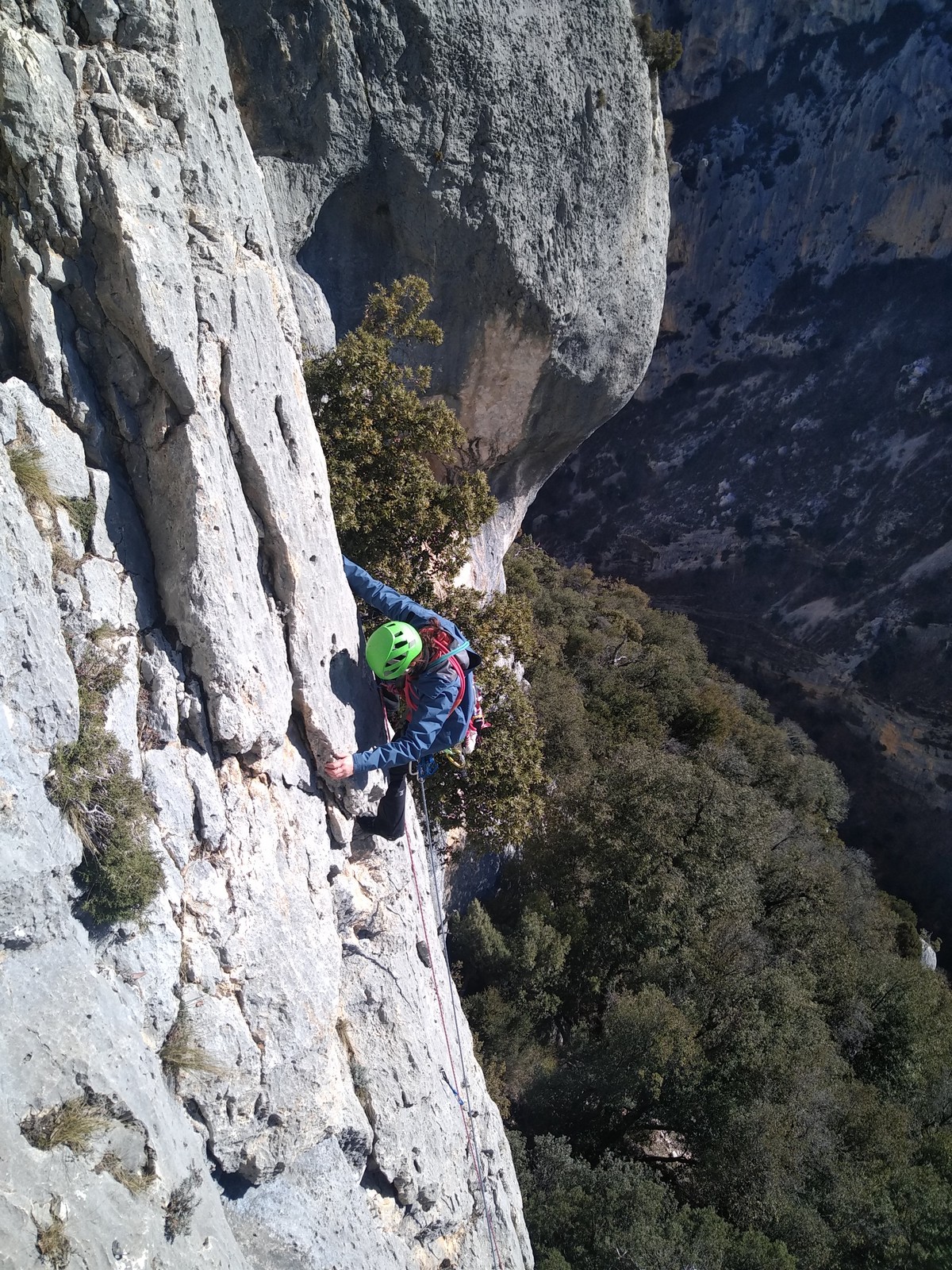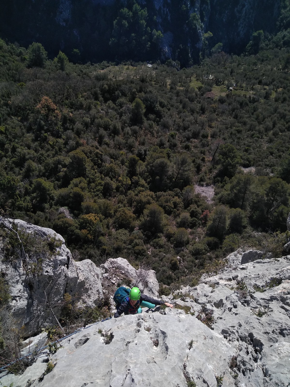 Je pars donc avec Théo dans Esmeralda, la seule voie en 3 longueurs 5c, 6a, 6c.