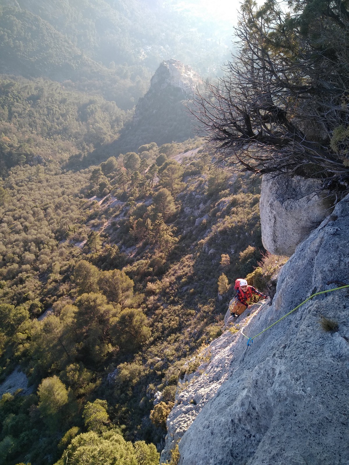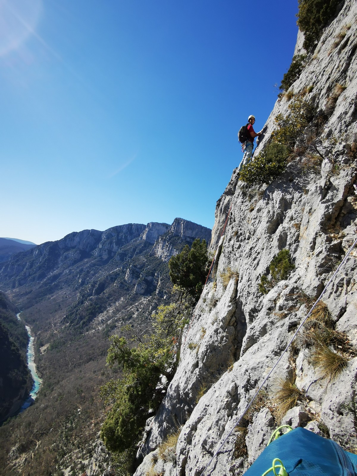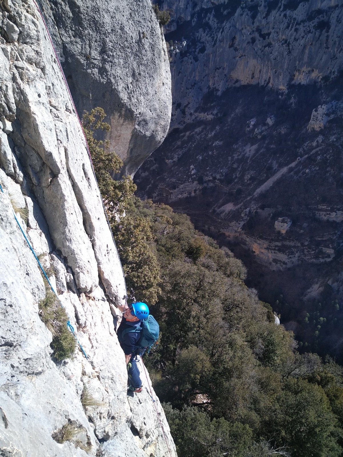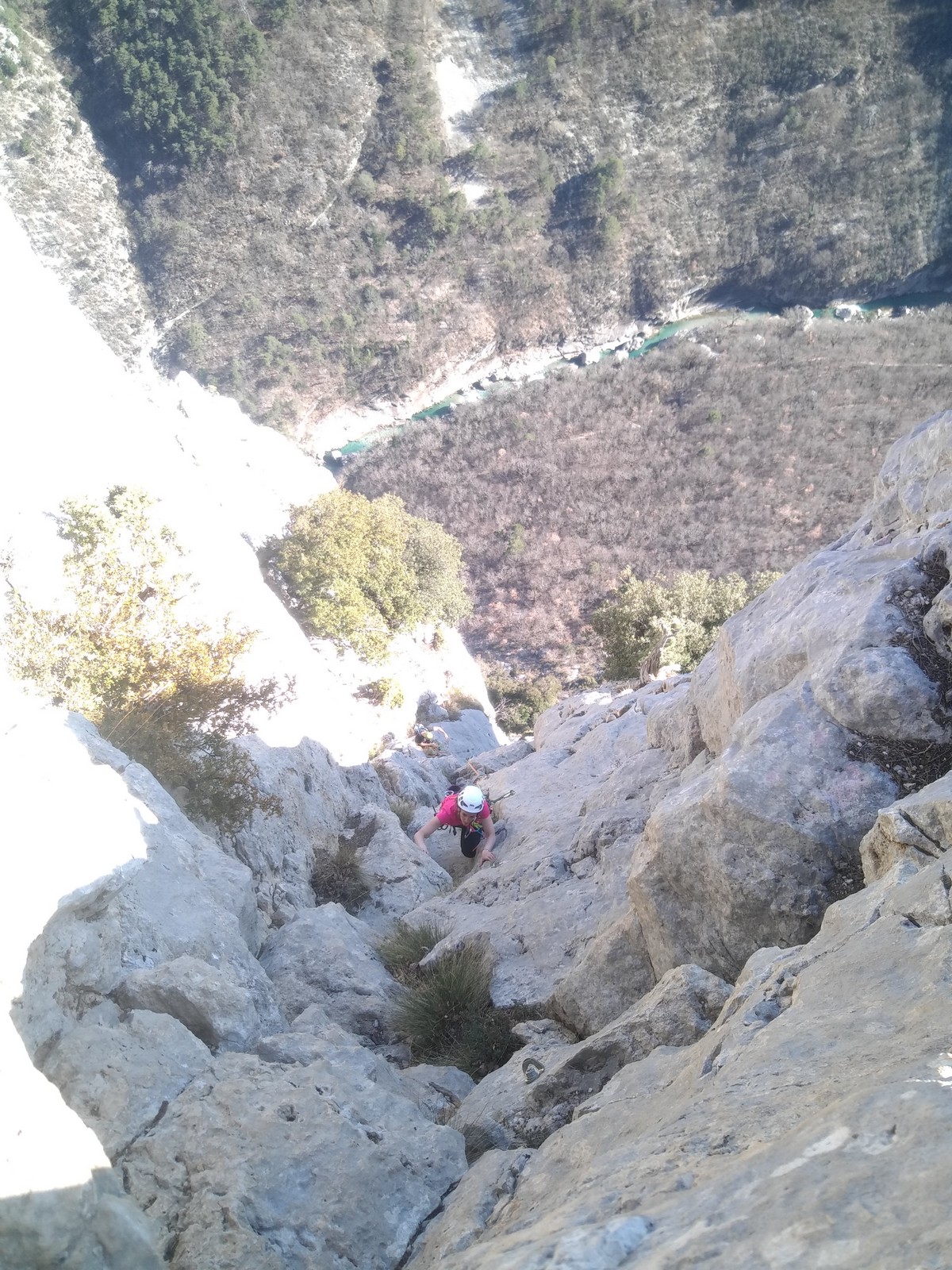 Je pars donc avec Théo dans Esmeralda, la seule voie en 3 longueurs 5c, 6a, 6c.