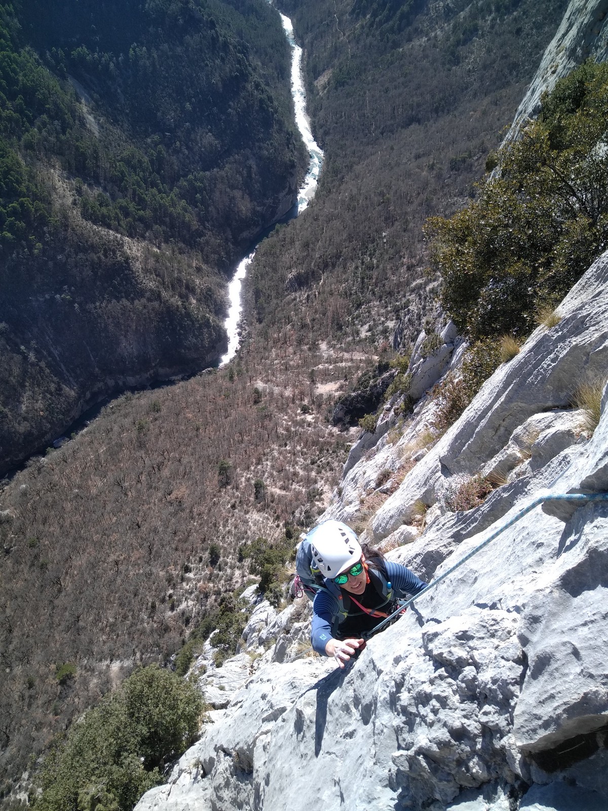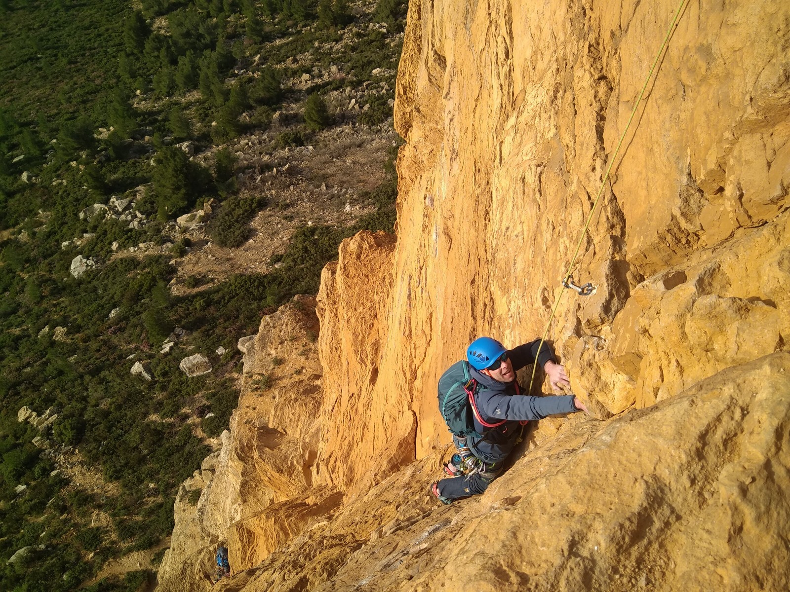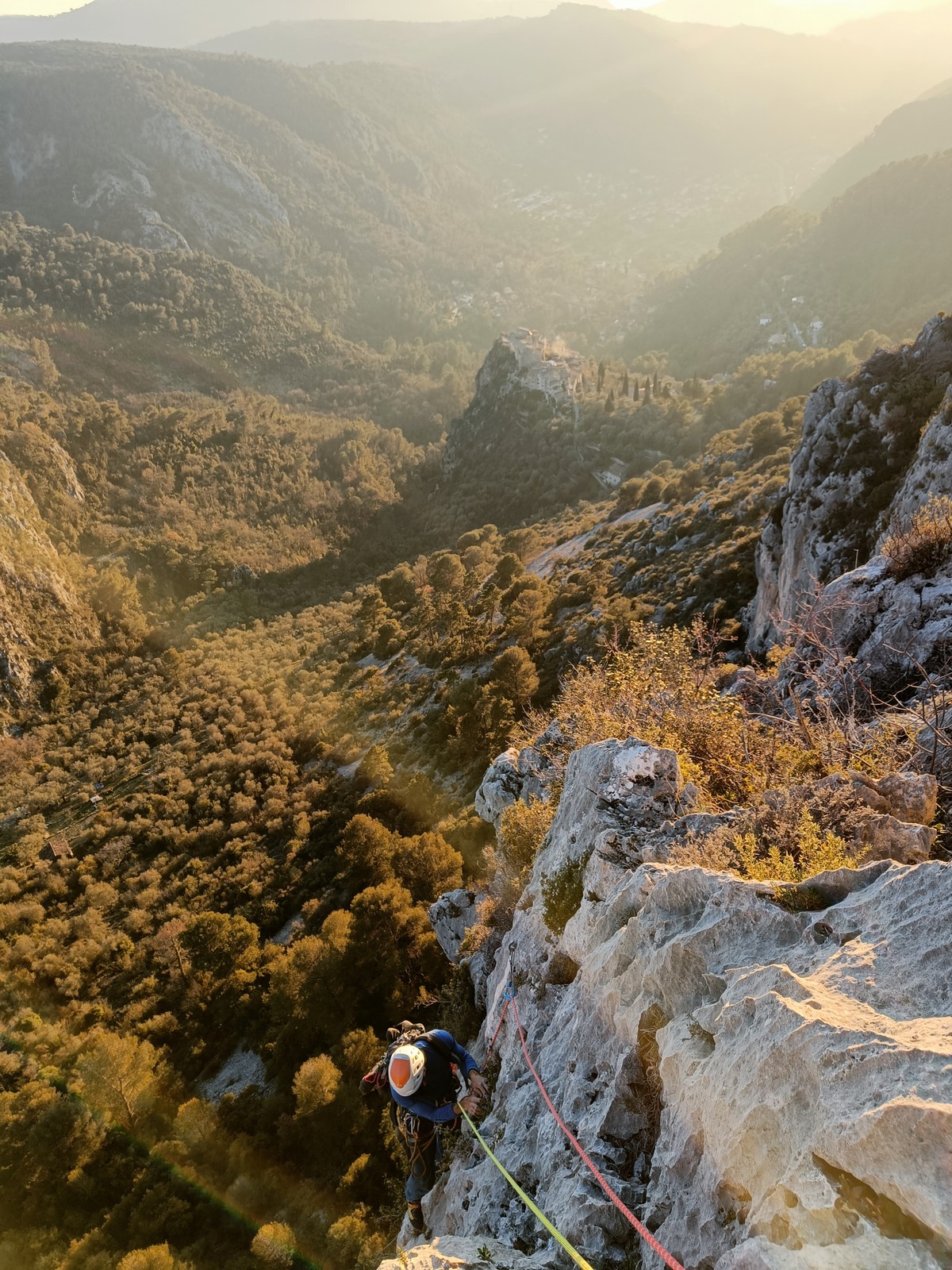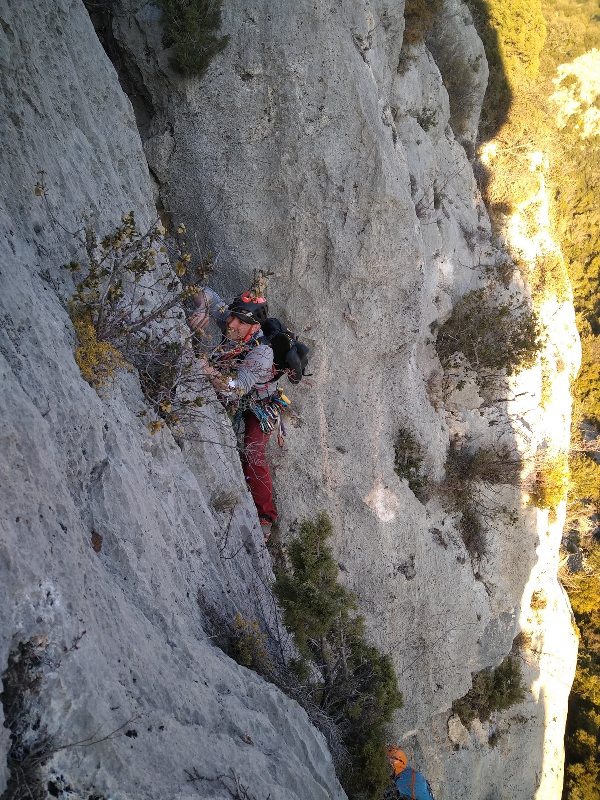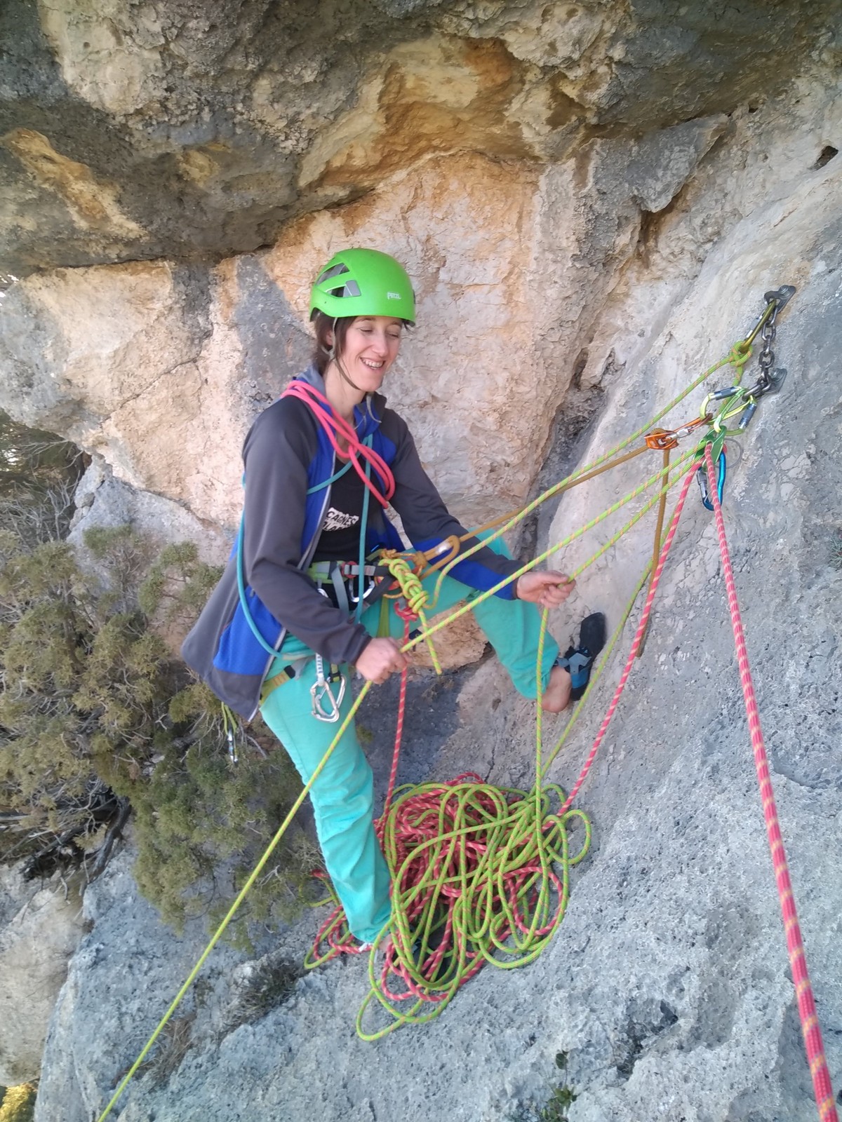 Je pars donc avec Théo dans Esmeralda, la seule voie en 3 longueurs 5c, 6a, 6c.