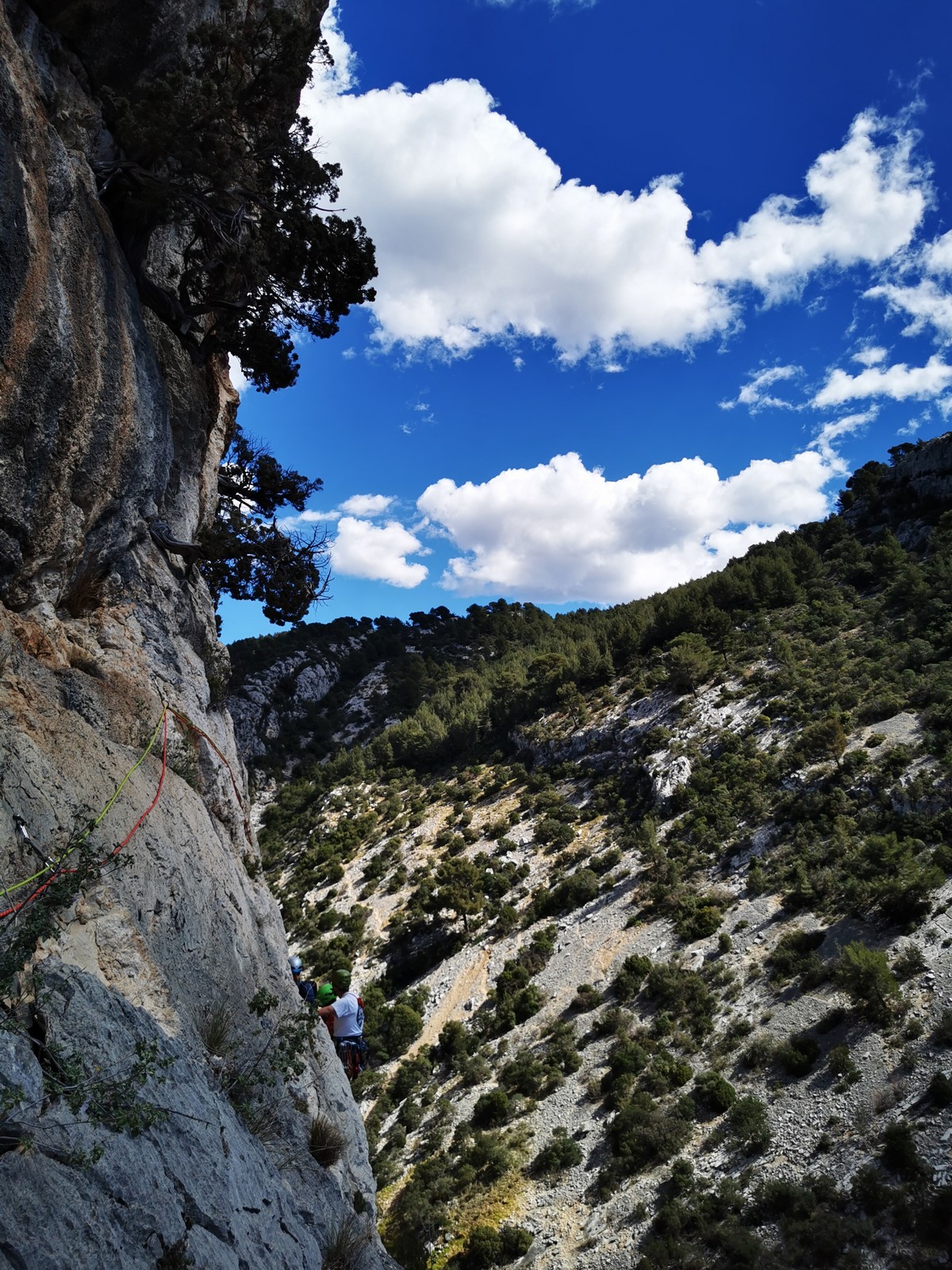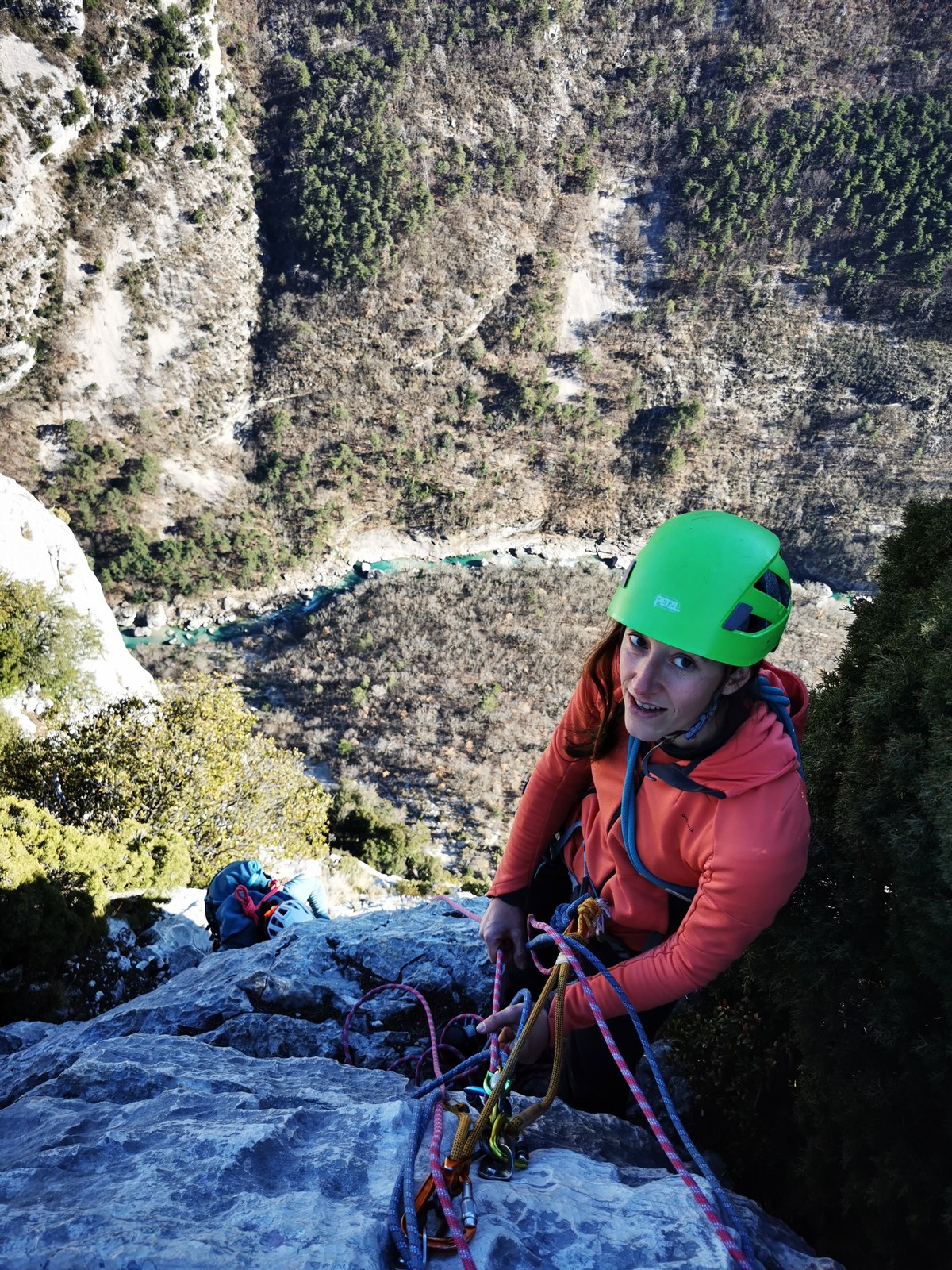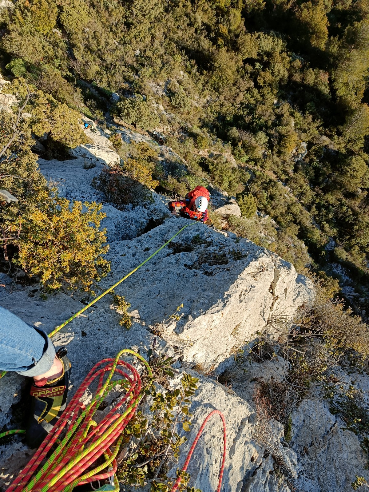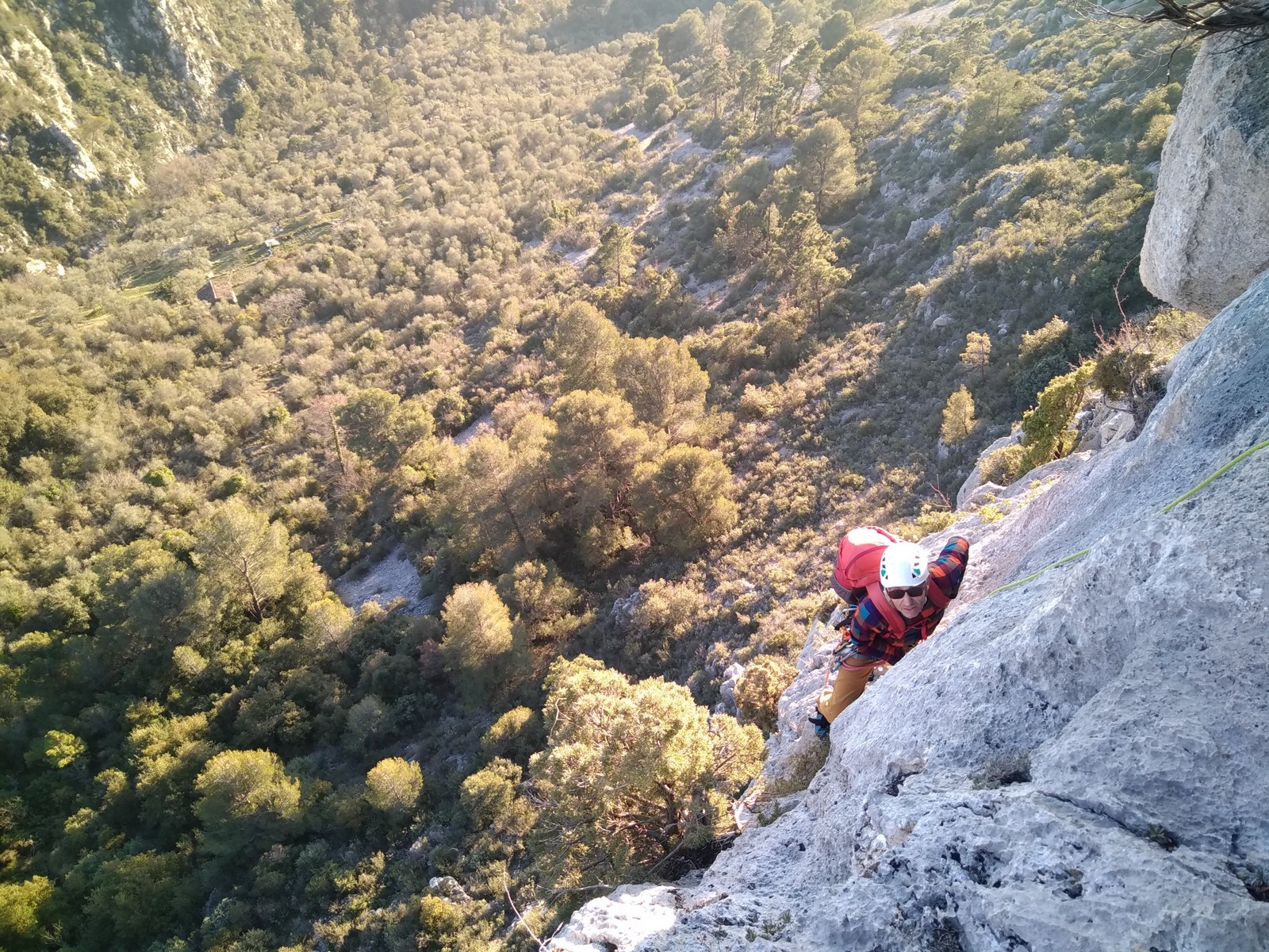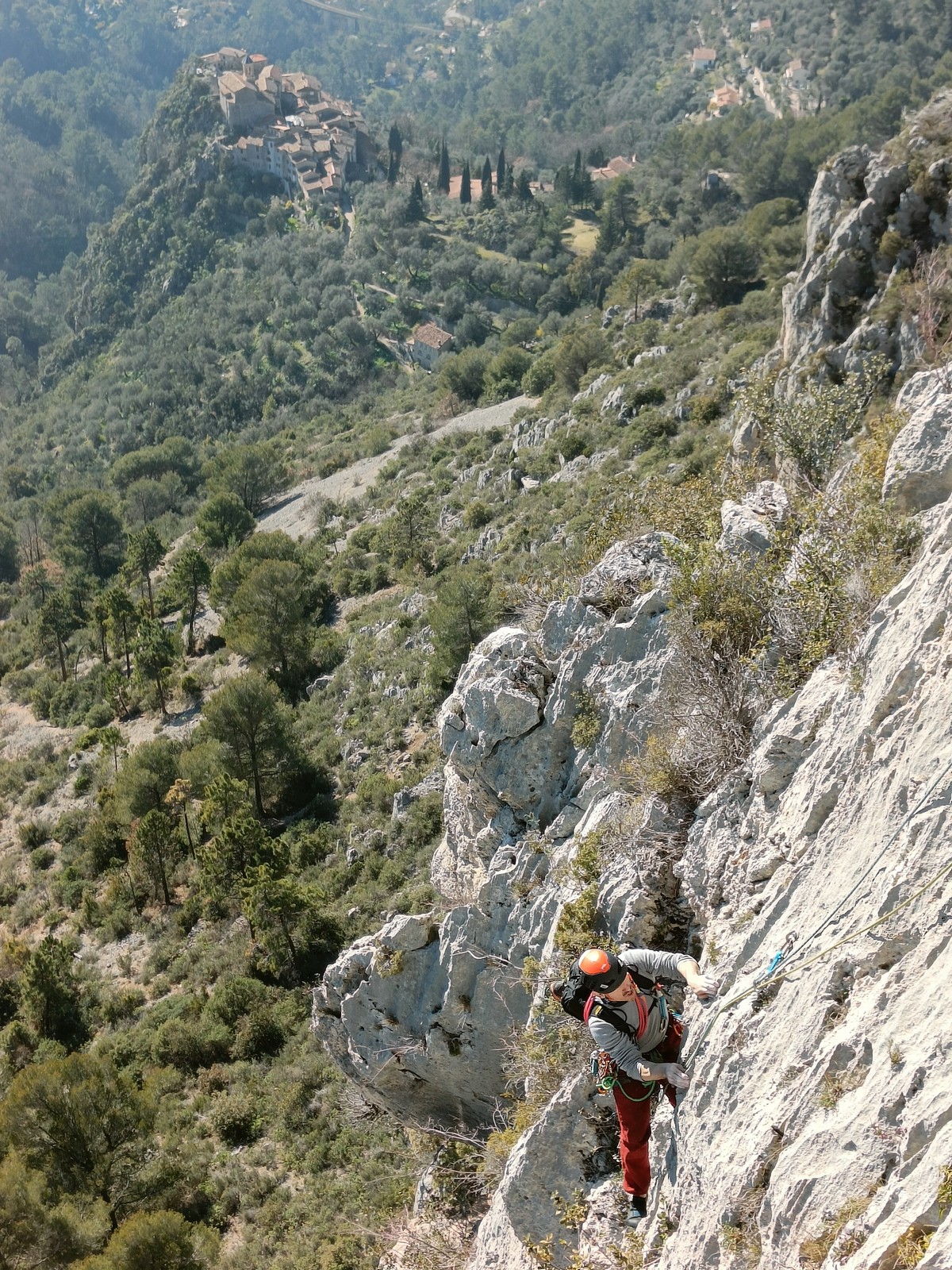 Je pars donc avec Théo dans Esmeralda, la seule voie en 3 longueurs 5c, 6a, 6c.