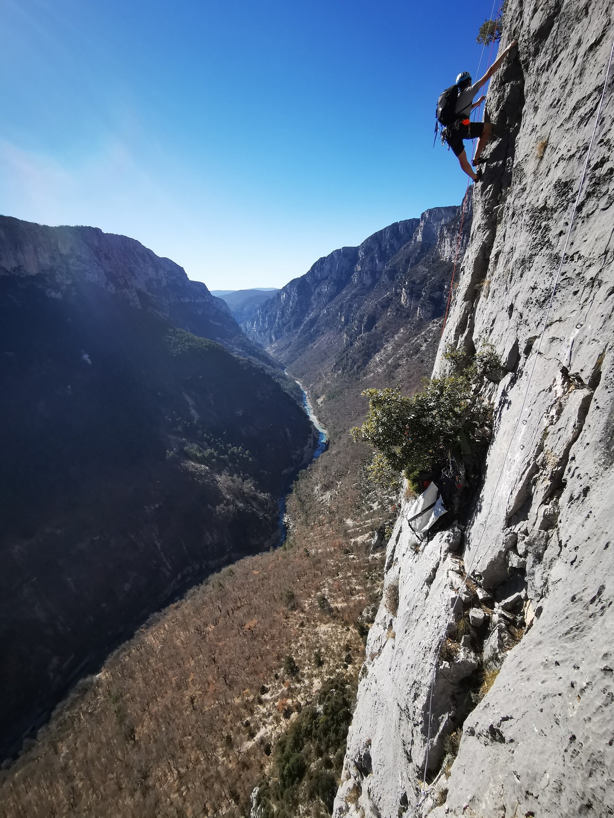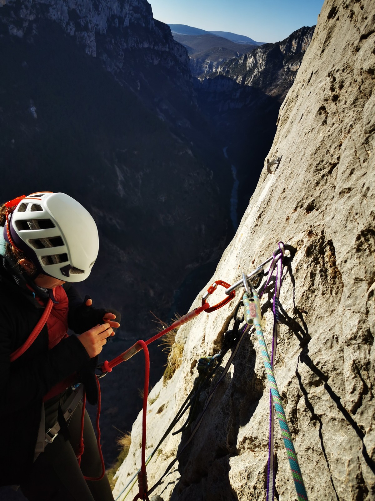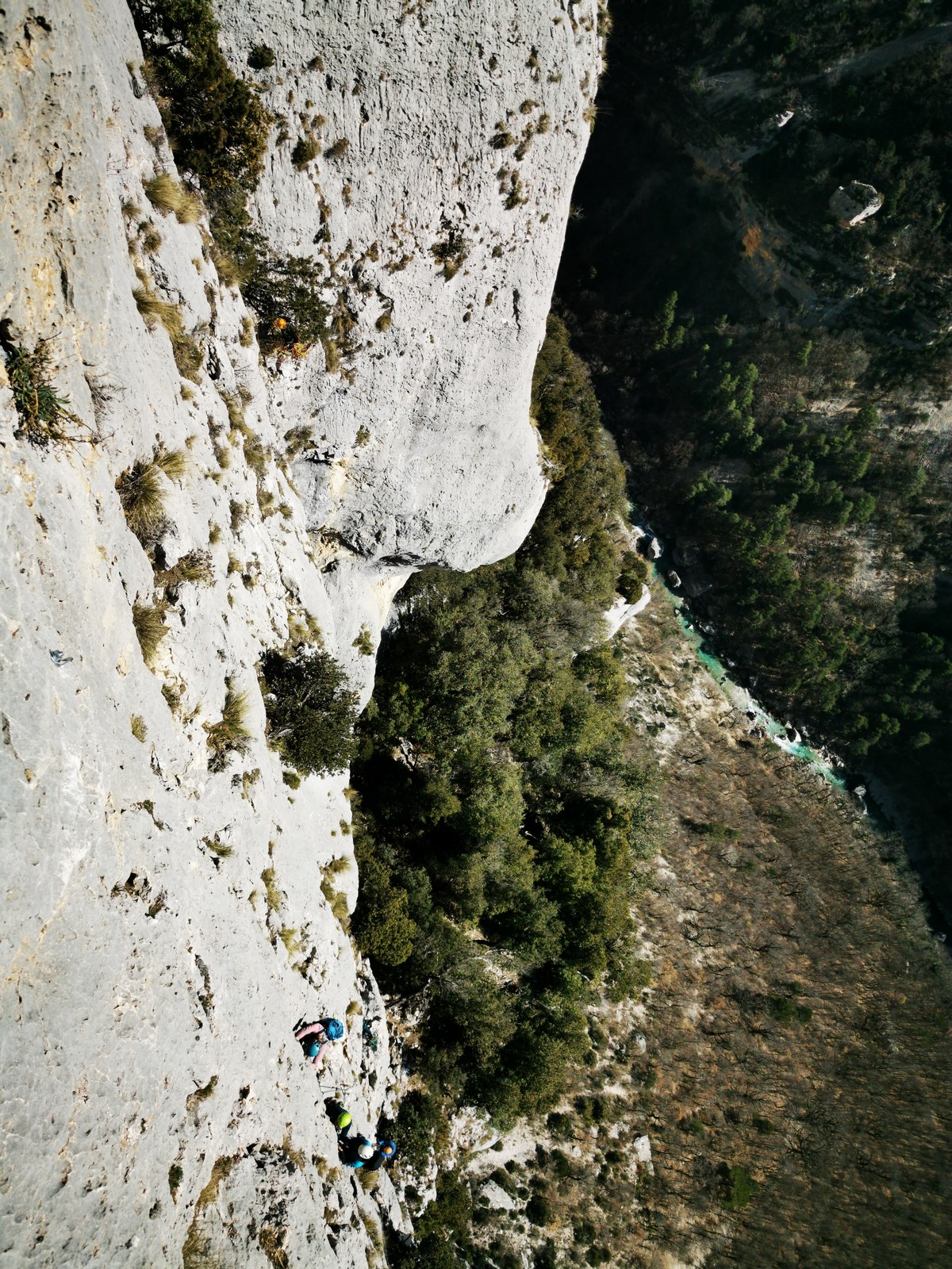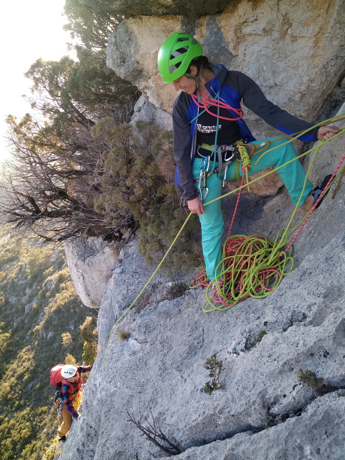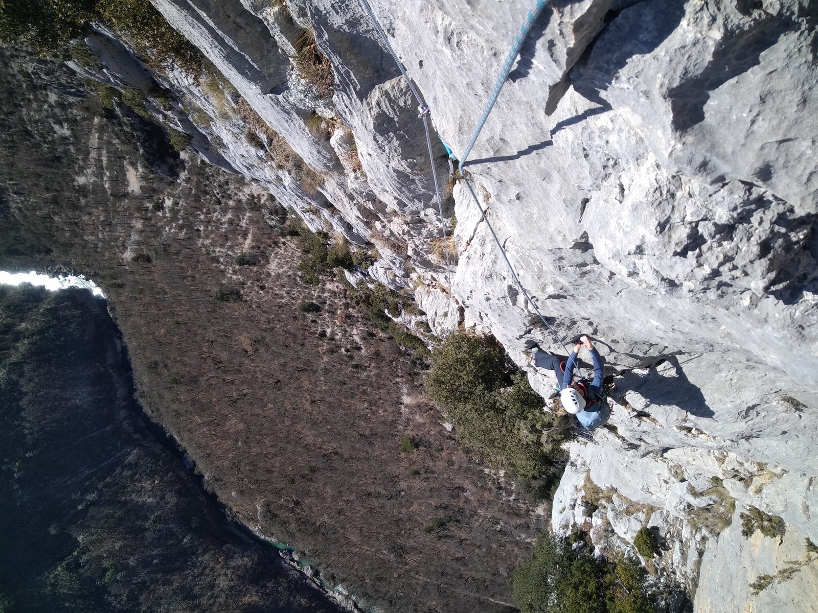 Je pars donc avec Théo dans Esmeralda, la seule voie en 3 longueurs 5c, 6a, 6c.