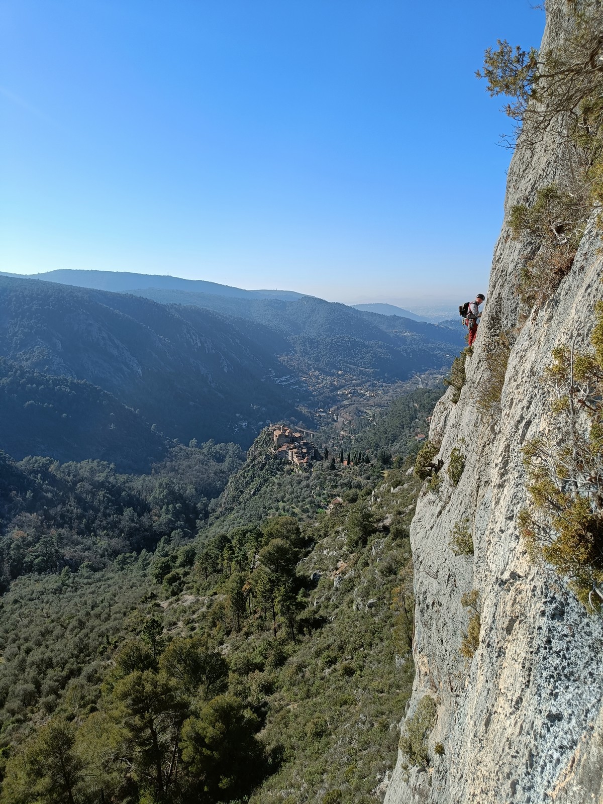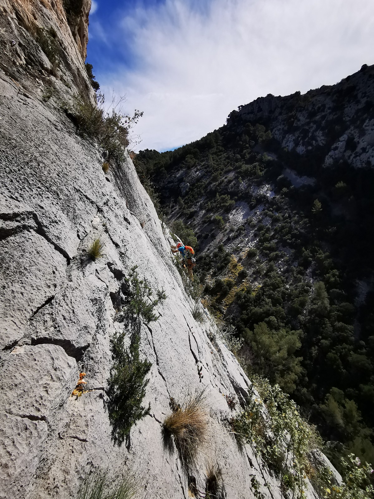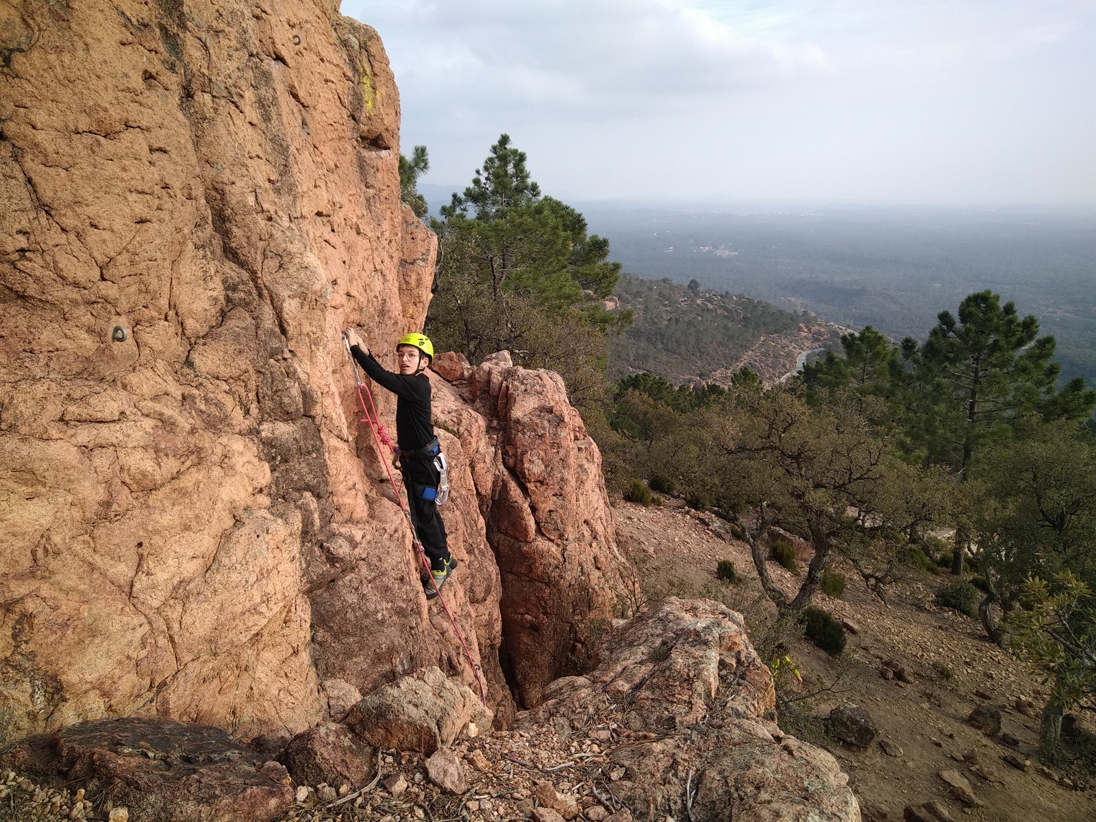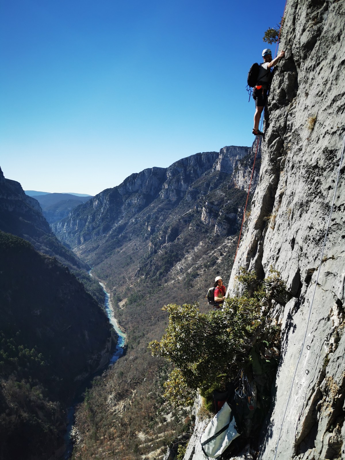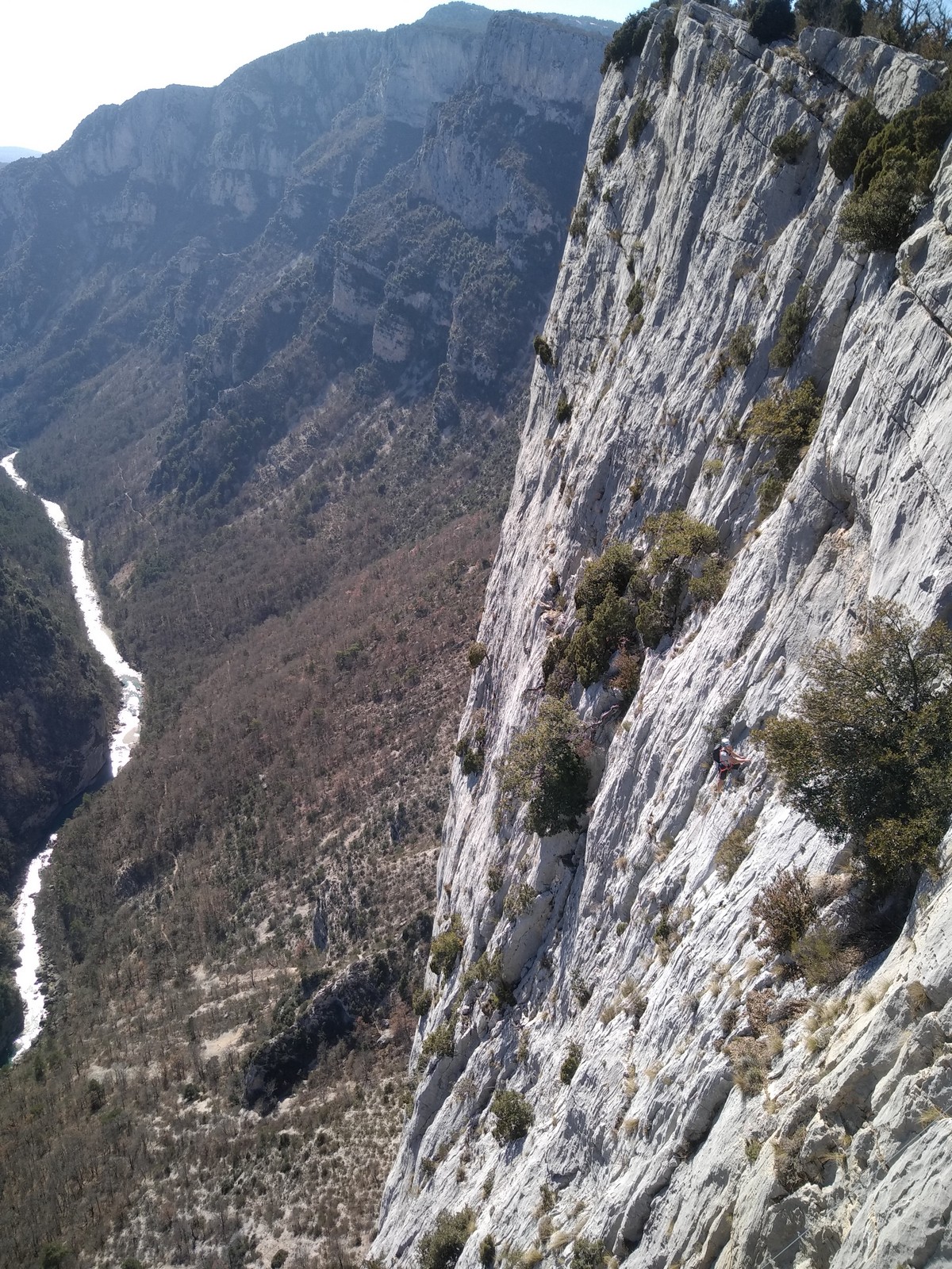 Je pars donc avec Théo dans Esmeralda, la seule voie en 3 longueurs 5c, 6a, 6c.