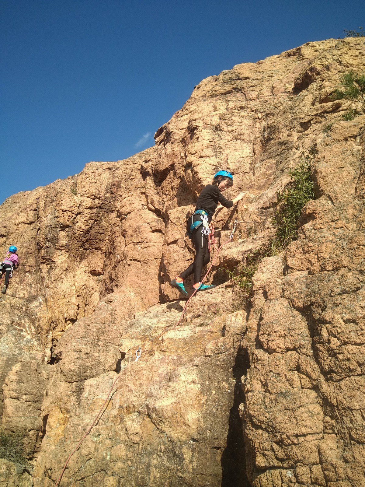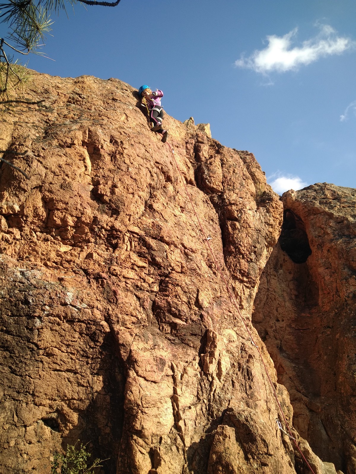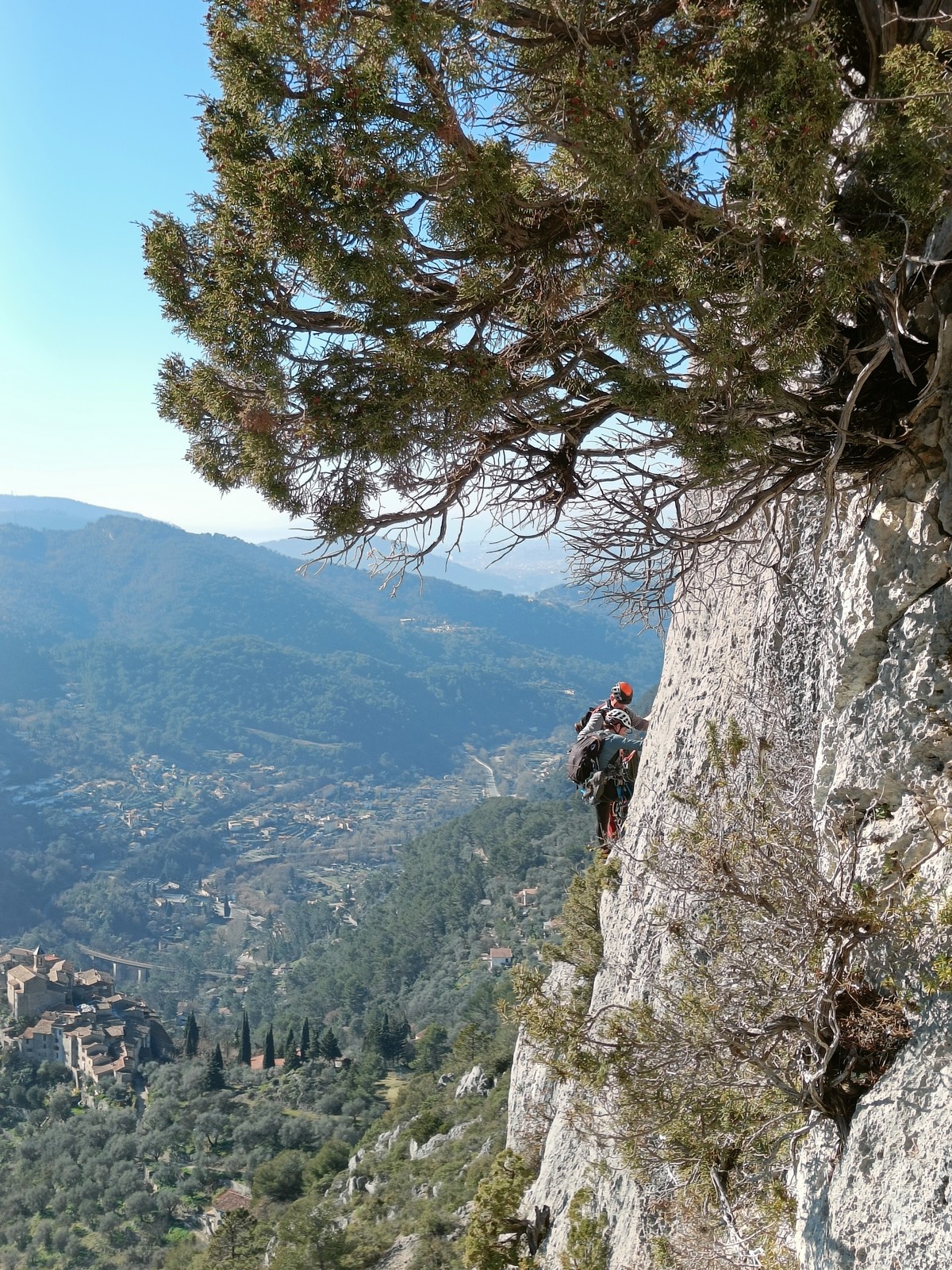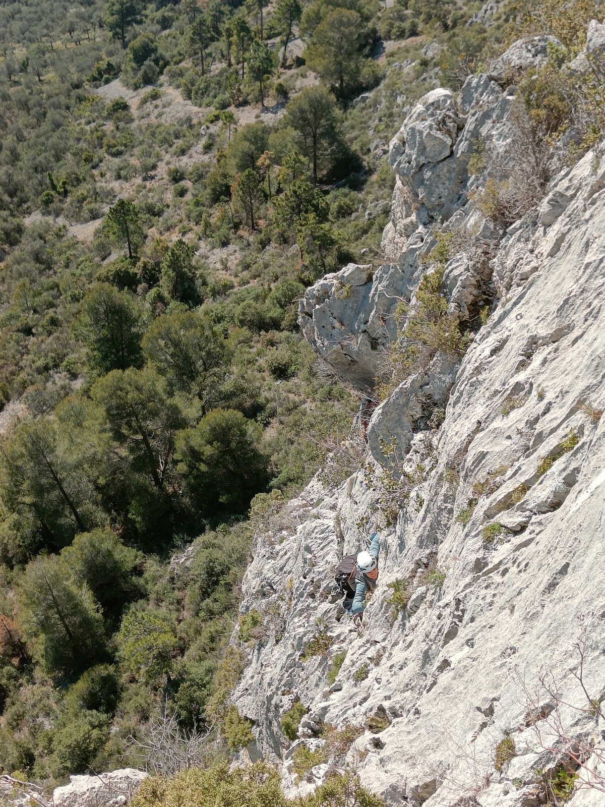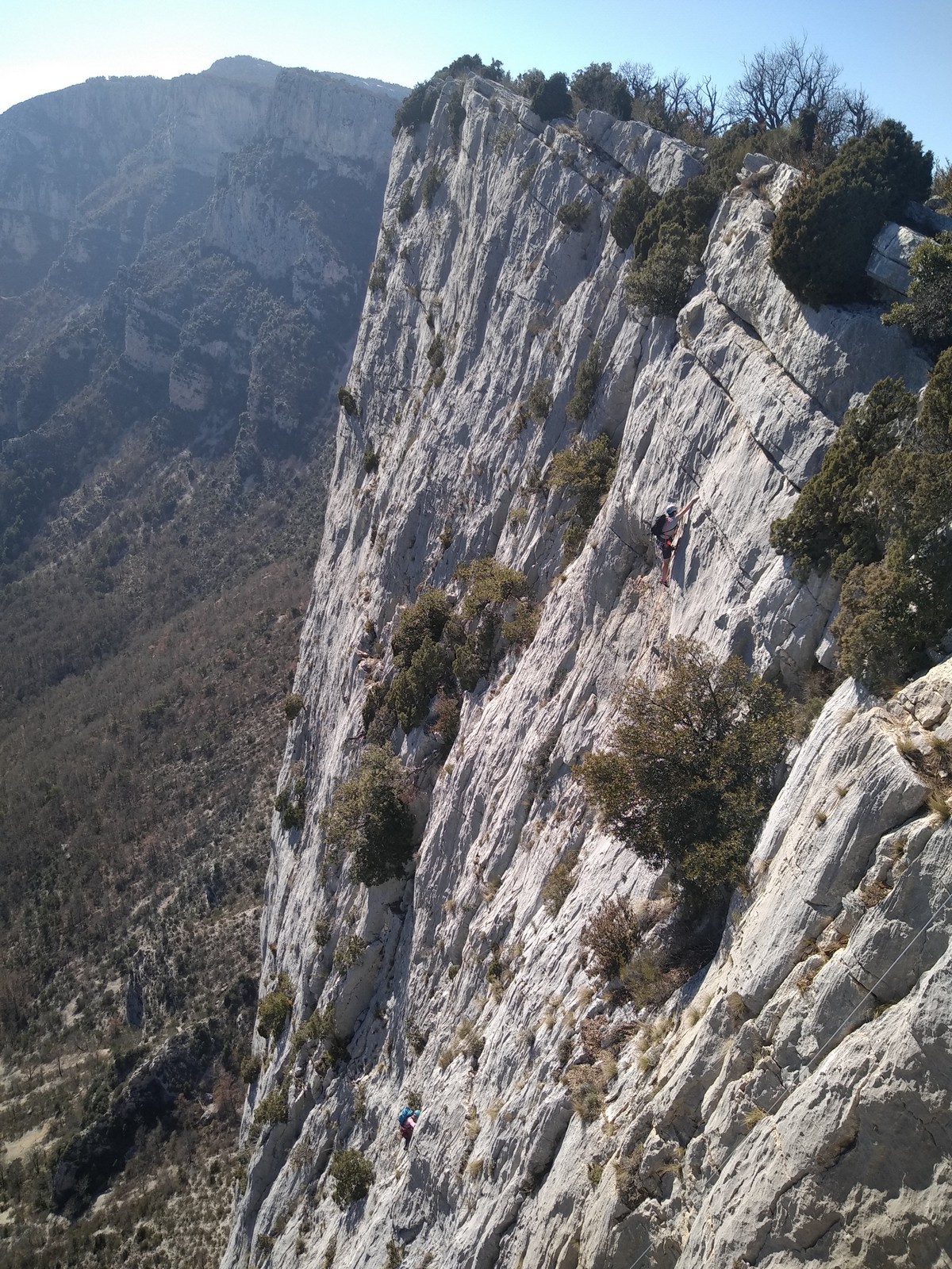 Je pars donc avec Théo dans Esmeralda, la seule voie en 3 longueurs 5c, 6a, 6c.