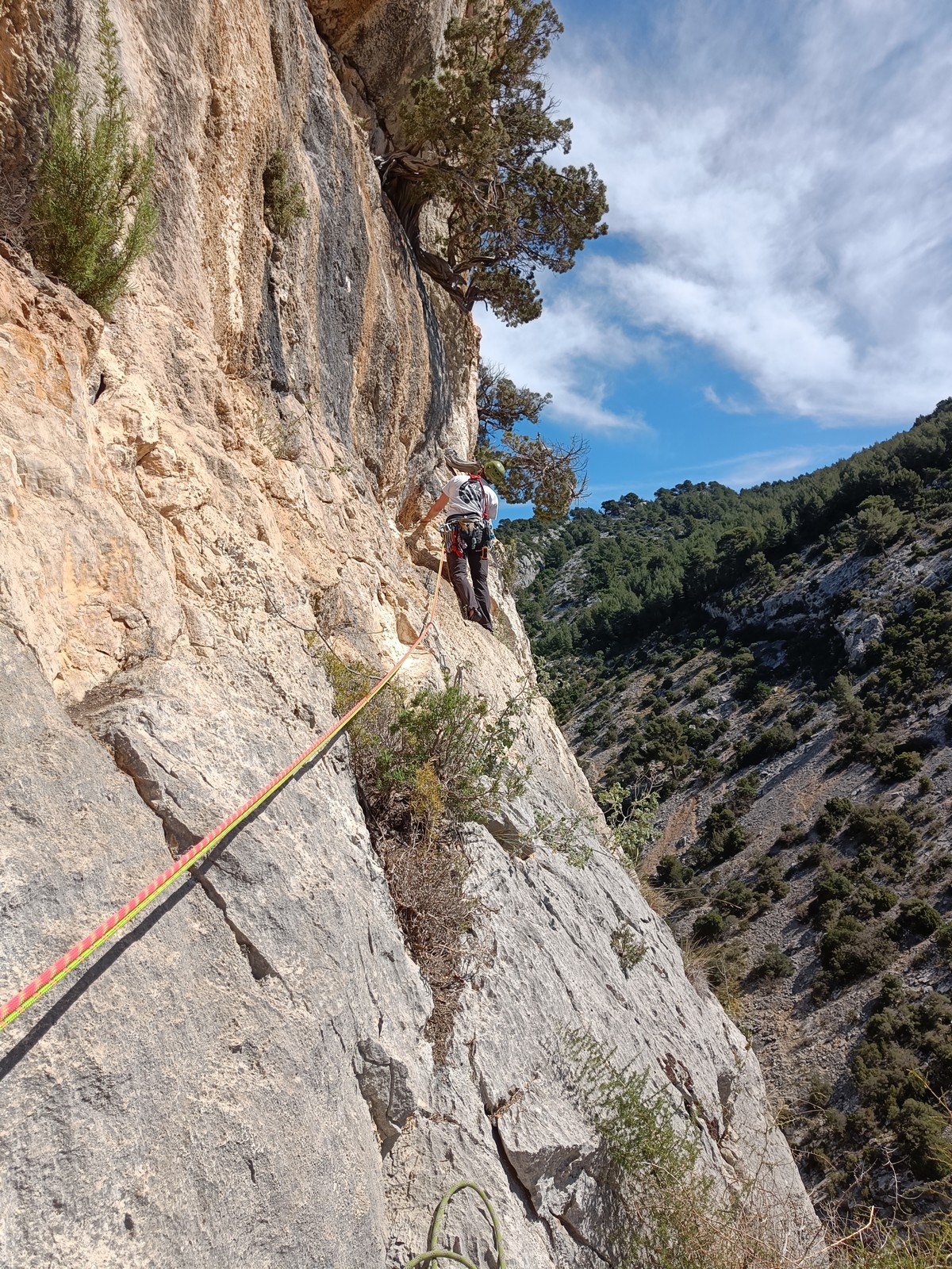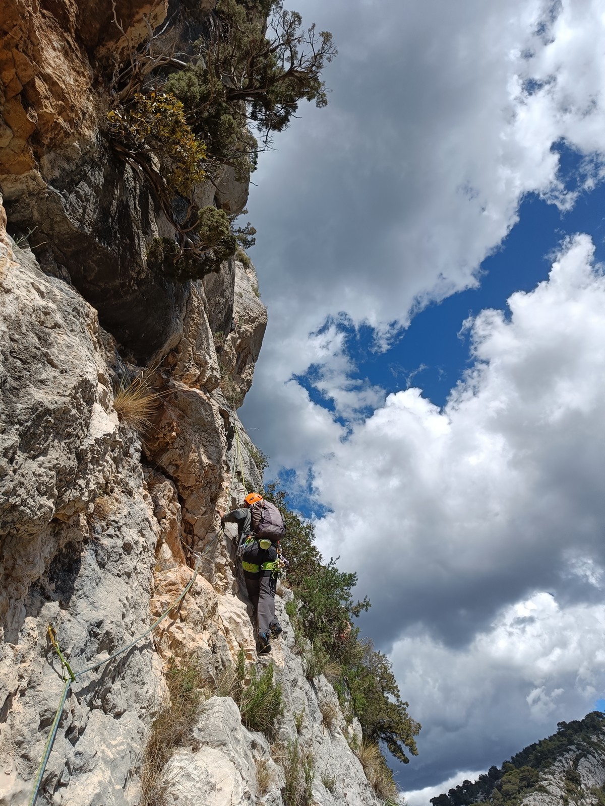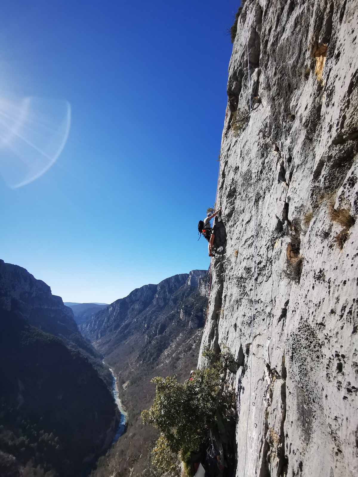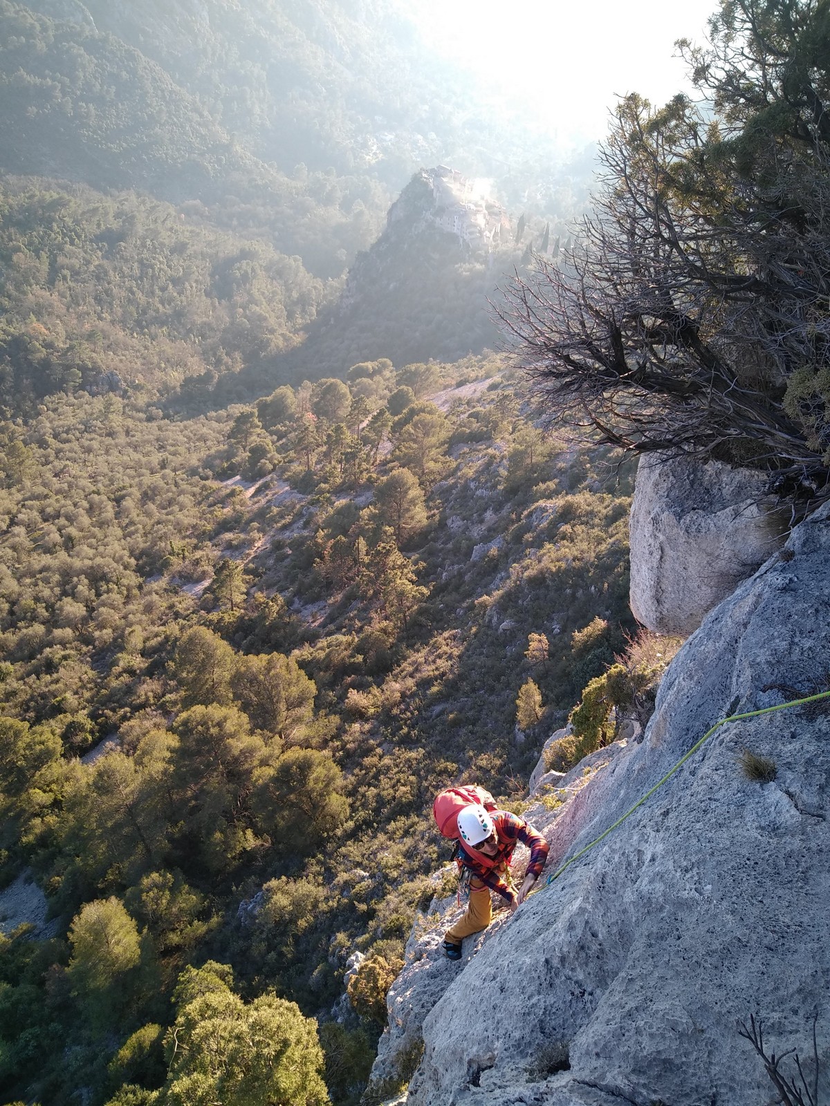 Je pars donc avec Théo dans Esmeralda, la seule voie en 3 longueurs 5c, 6a, 6c.