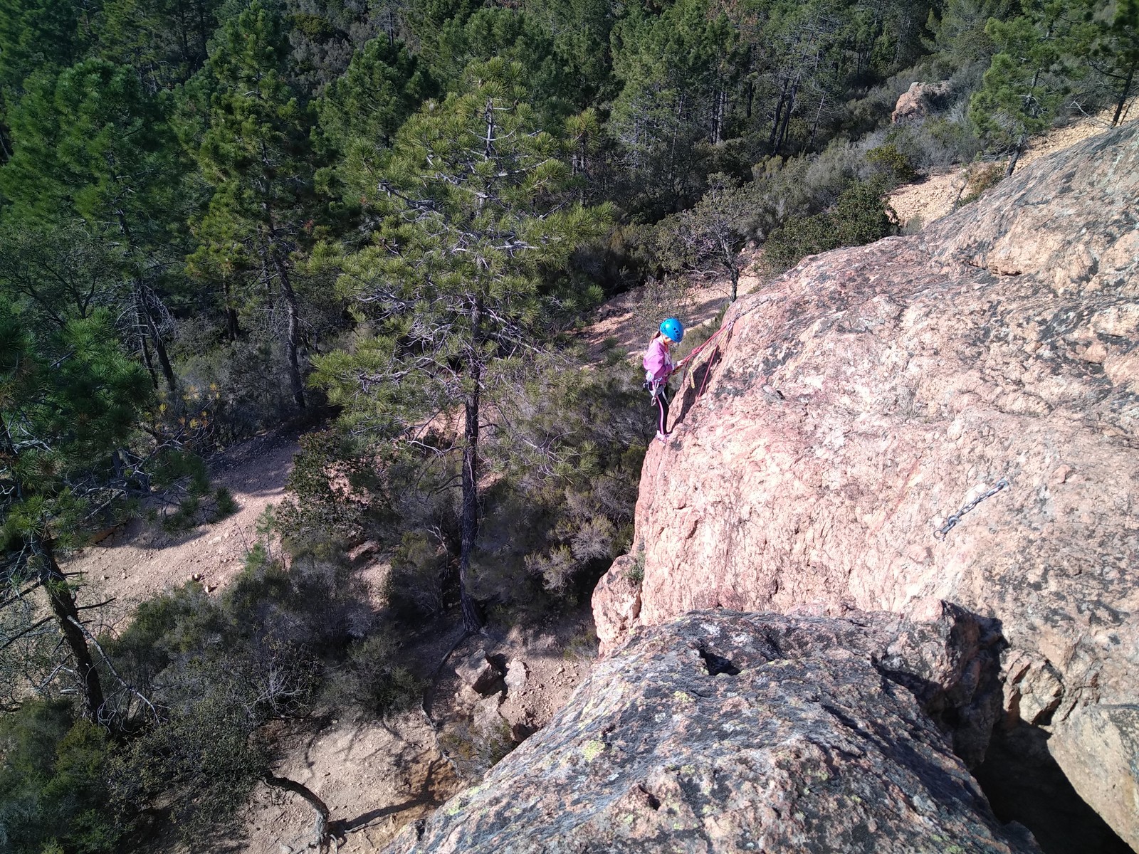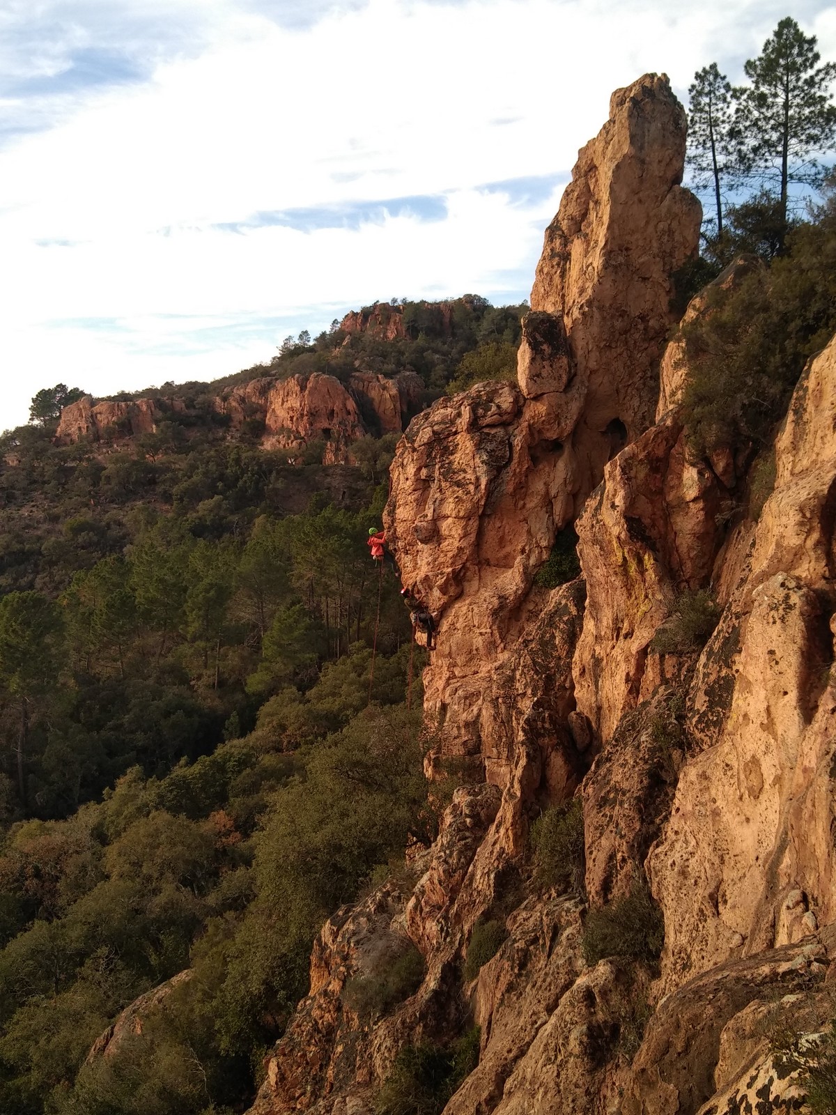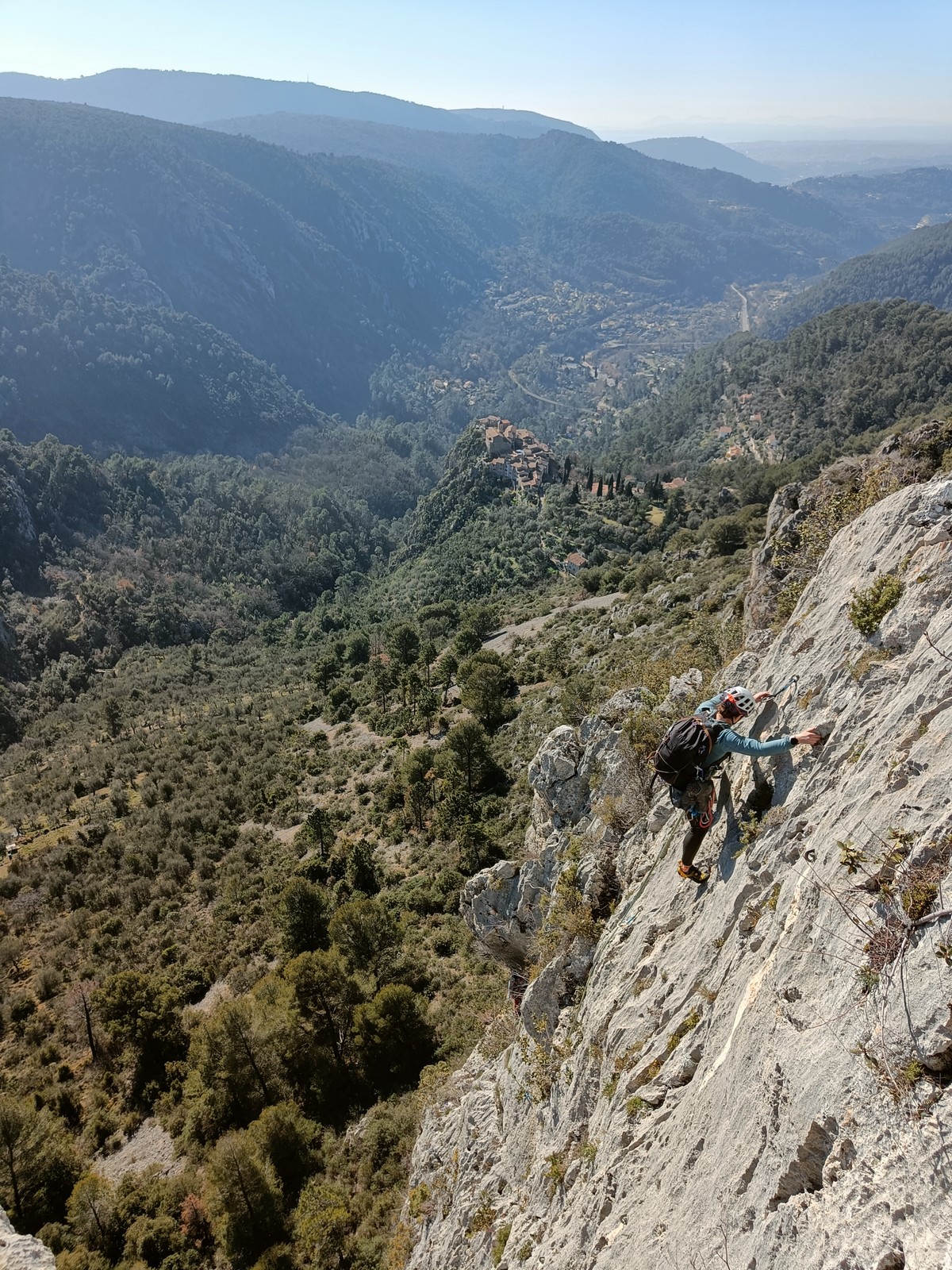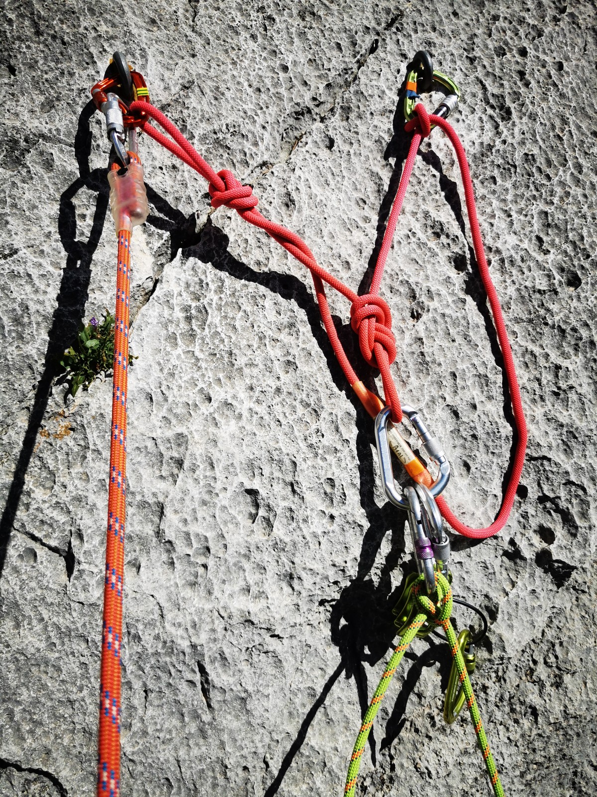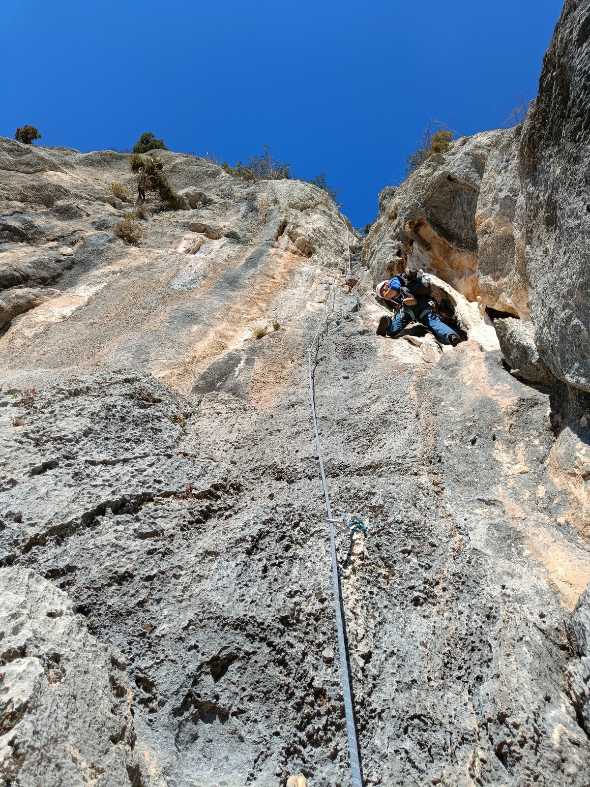 Je pars donc avec Théo dans Esmeralda, la seule voie en 3 longueurs 5c, 6a, 6c.