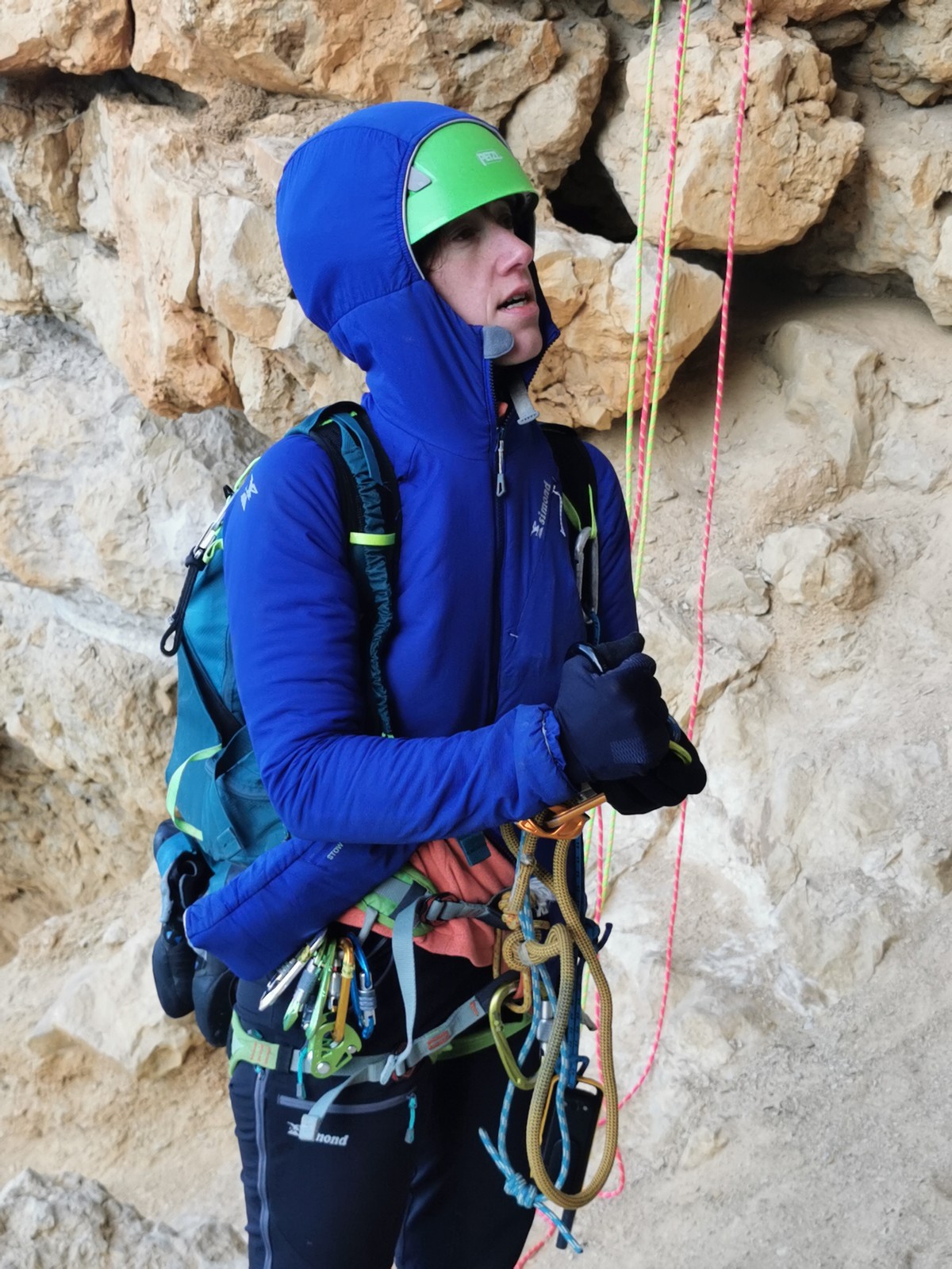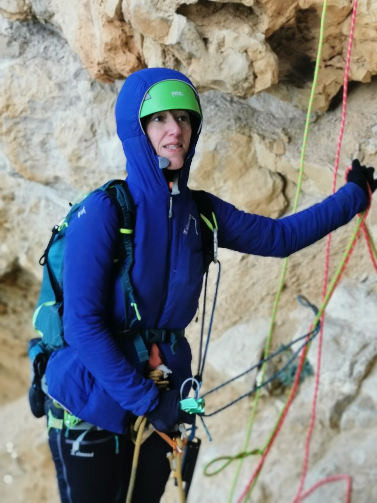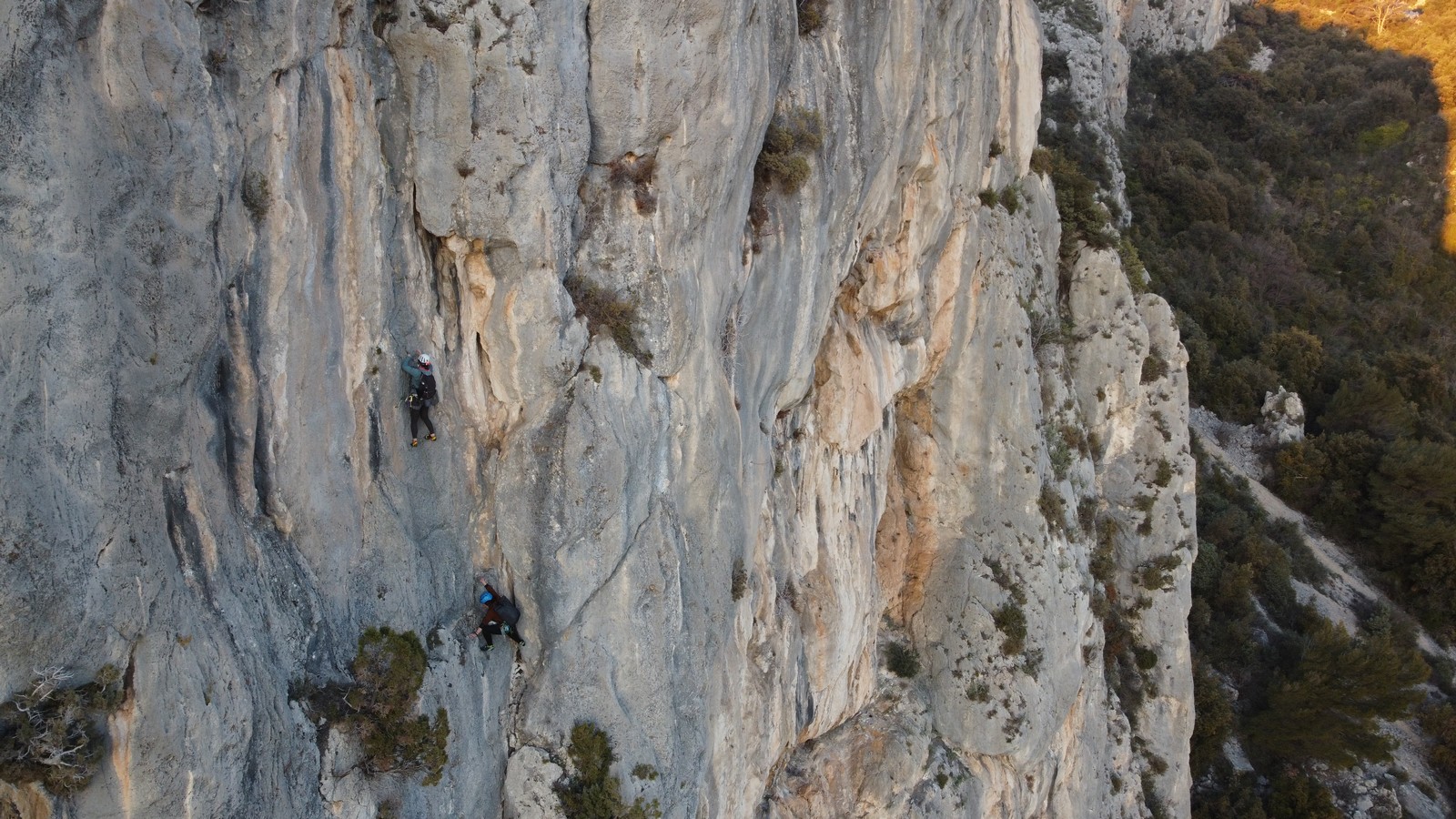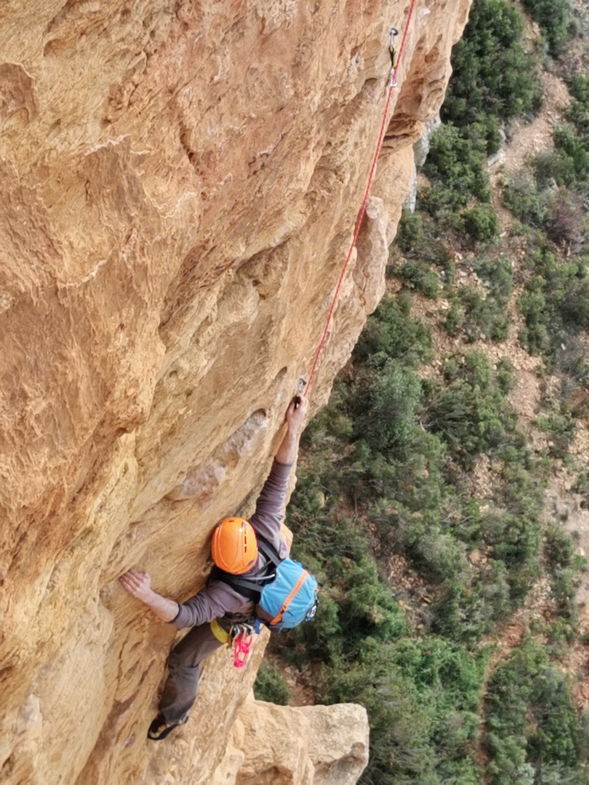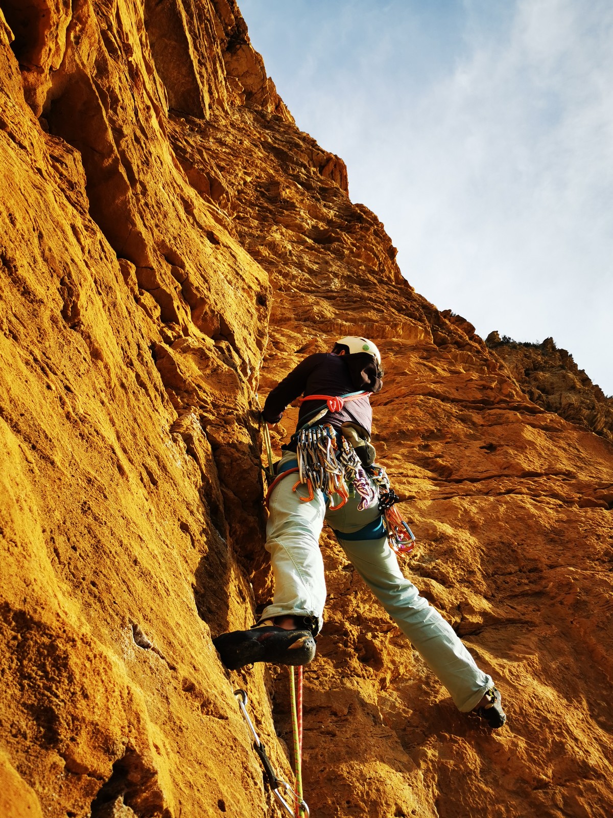 Je pars donc avec Théo dans Esmeralda, la seule voie en 3 longueurs 5c, 6a, 6c.