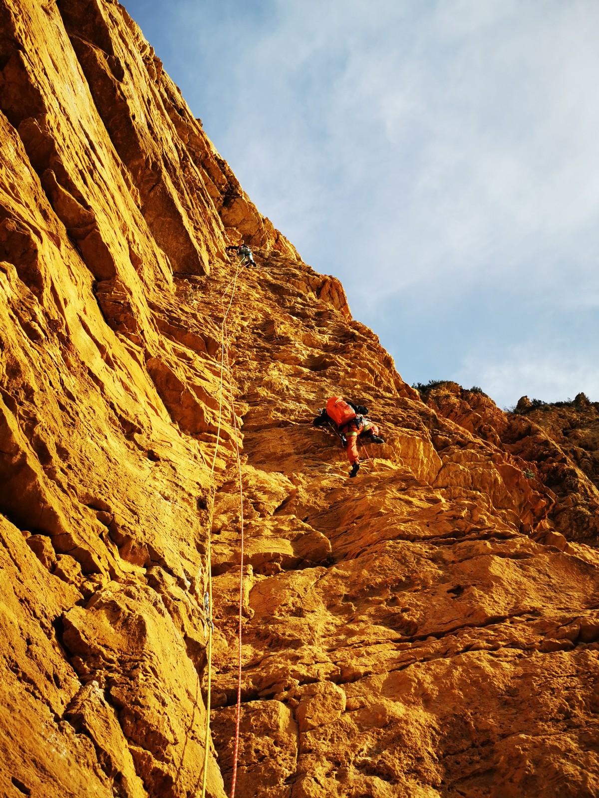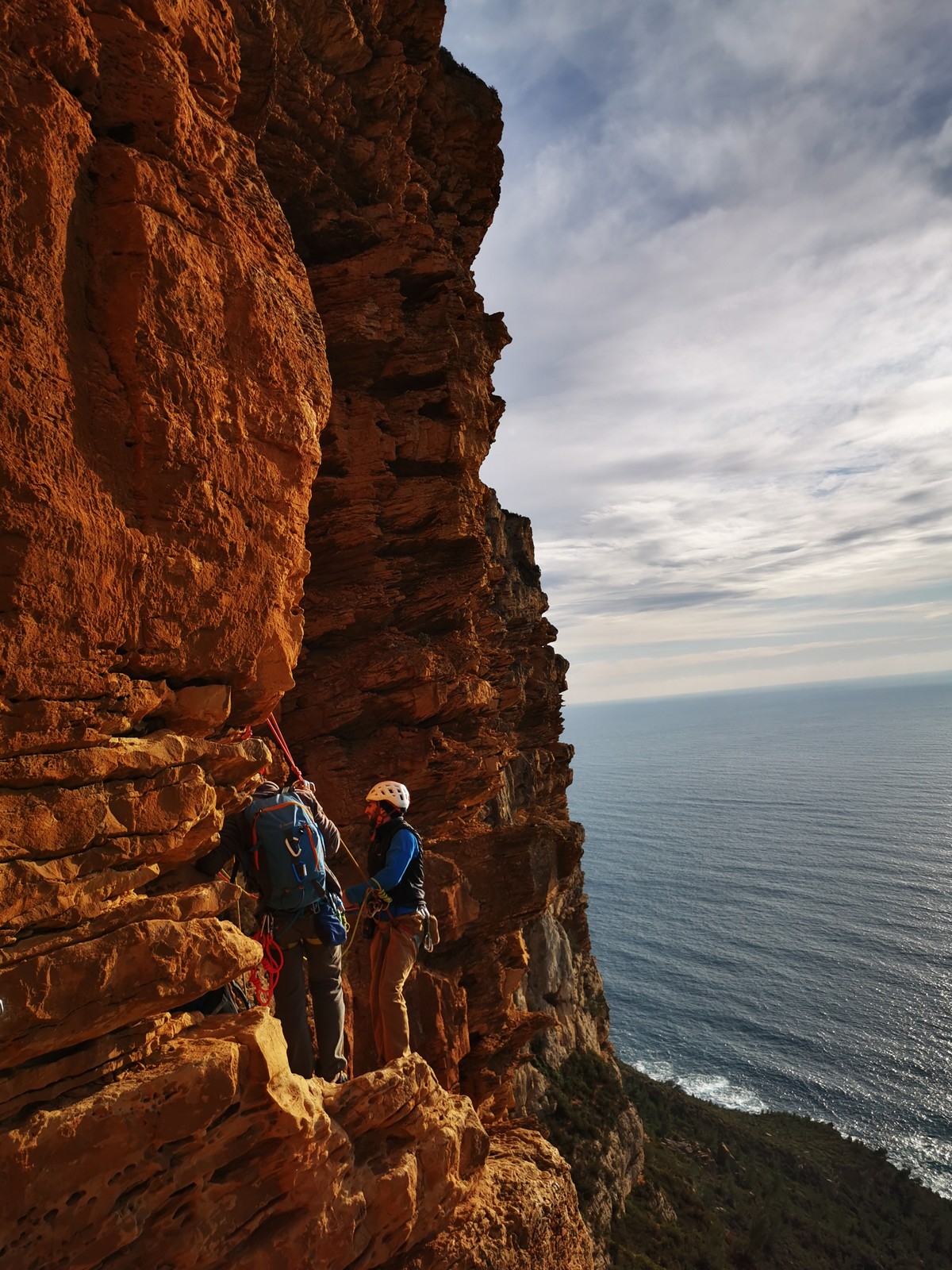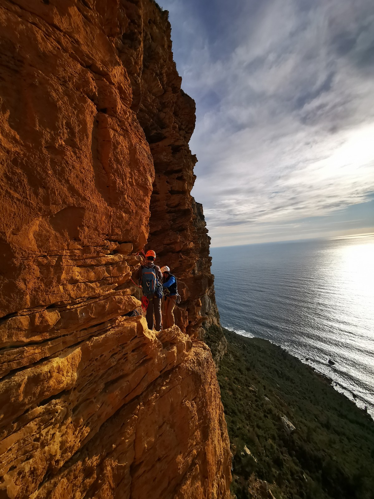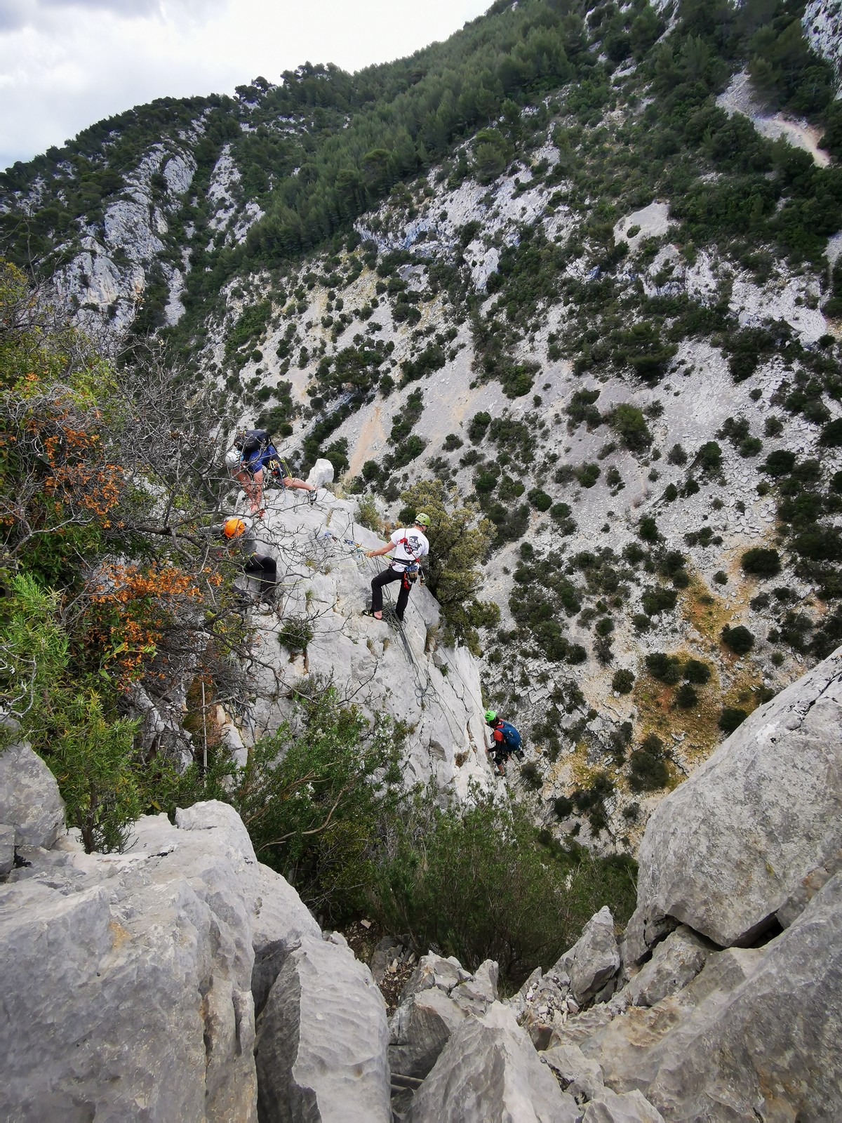 Xavier, Alexis et Jean-Luc qui a récupéré suffisamment de confiance dans son genou pour revenir en grandes voies, partent dans Turkish delight et imaginent finir dans la traversée également : 5c, 5b, 5b, 4c, 4c, 5b, 5c.