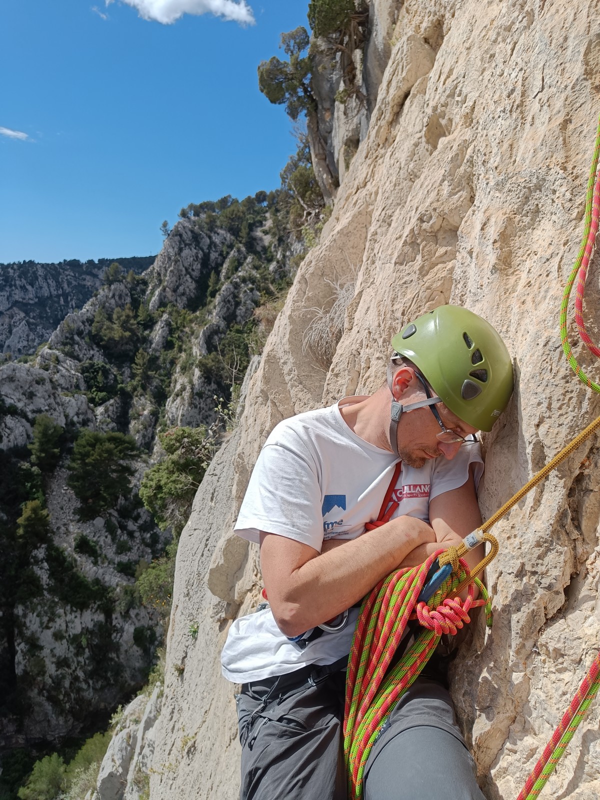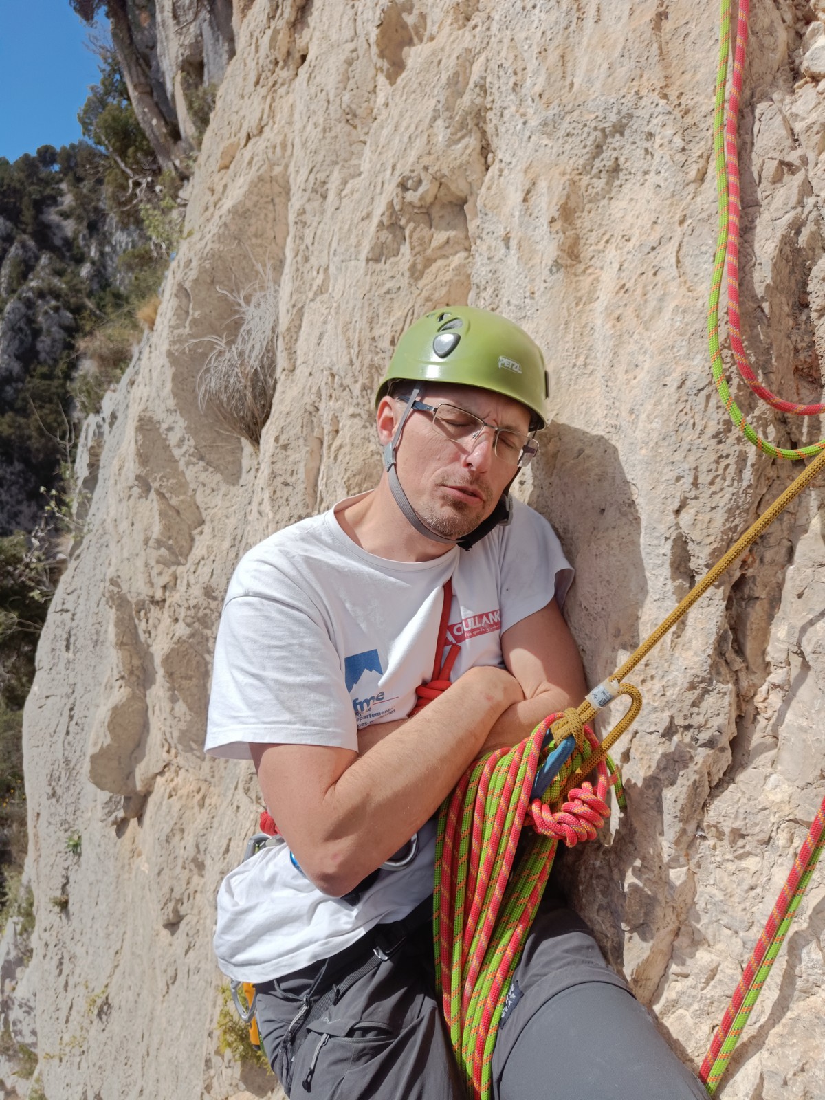 Ce dimanche, pendant qu’une bonne partie des enfants du club défendait les couleurs du club pour la dernière manche du challenge Berhault à Bréa avec Sébastien, j’étais de sortie grandes voies du côté de Toulon, dans les gorges du Destel.