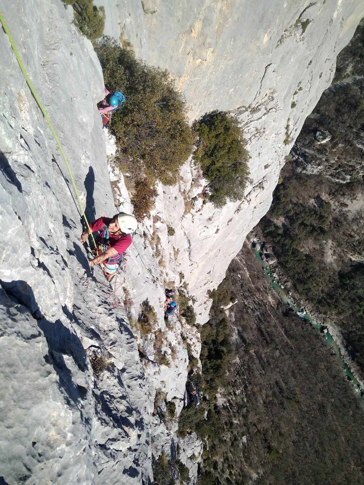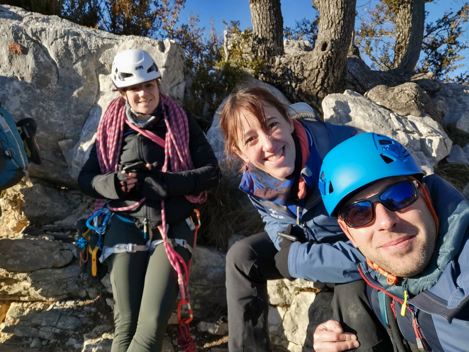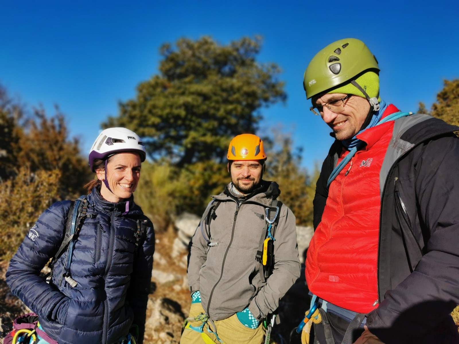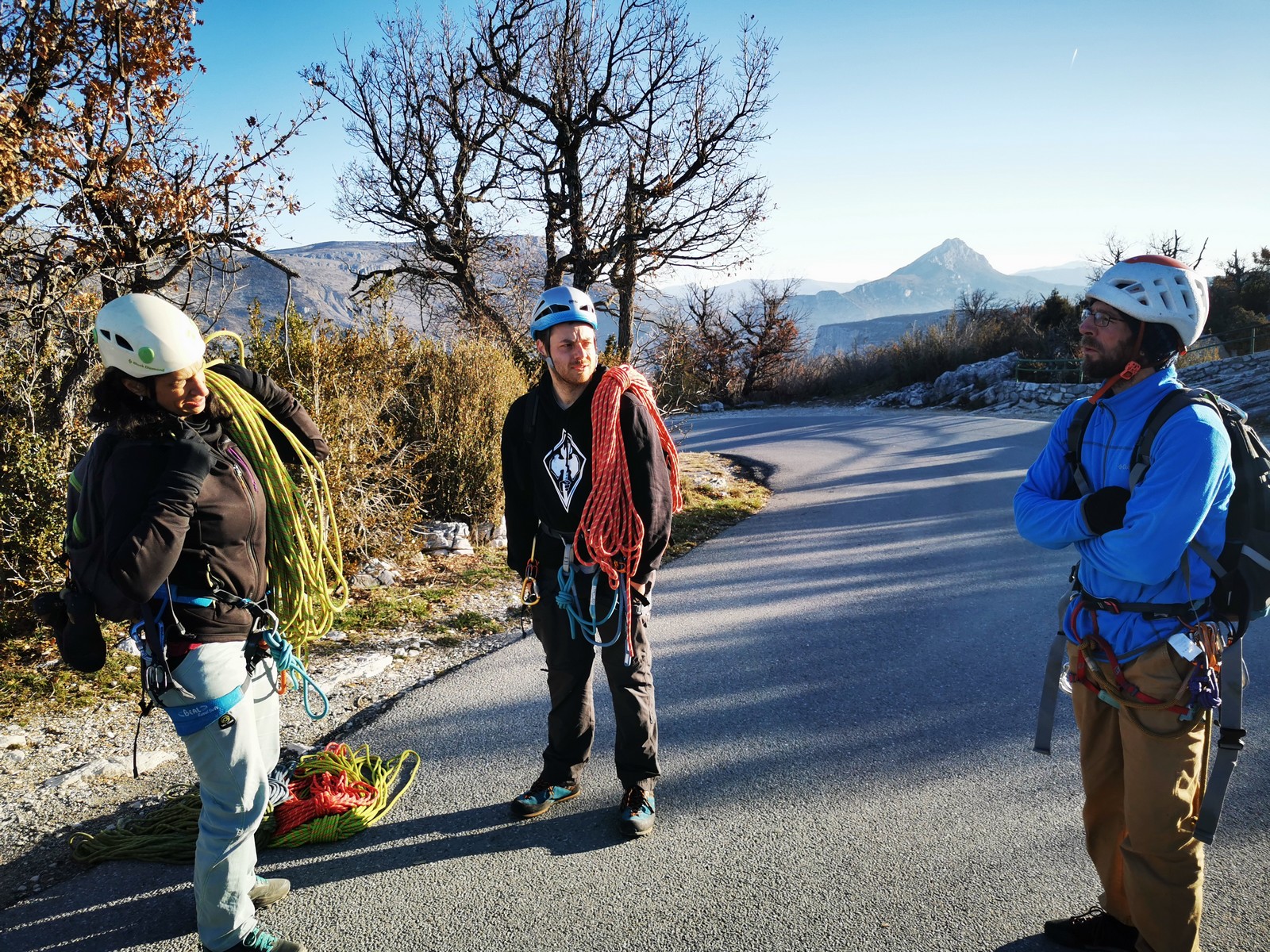Camille, Brice et Gautier décident de partir dans Gardarem lou Destel puis de finir dans la traversée pour 5 longueurs en 5c, 5b, 6a, 5b, 5c.