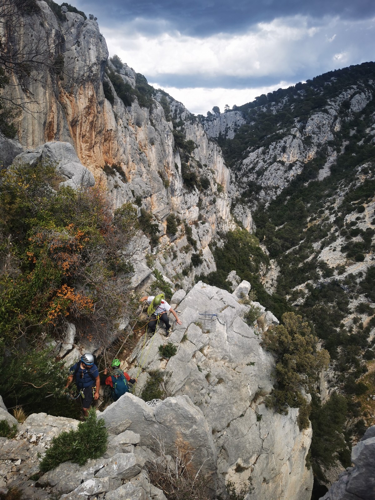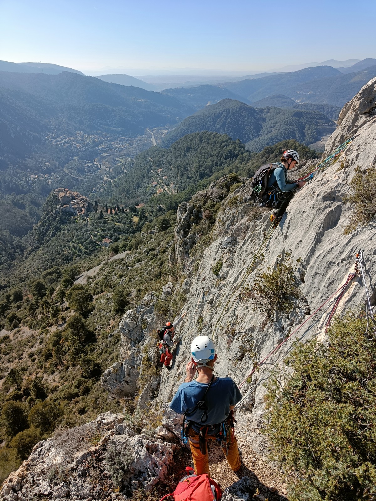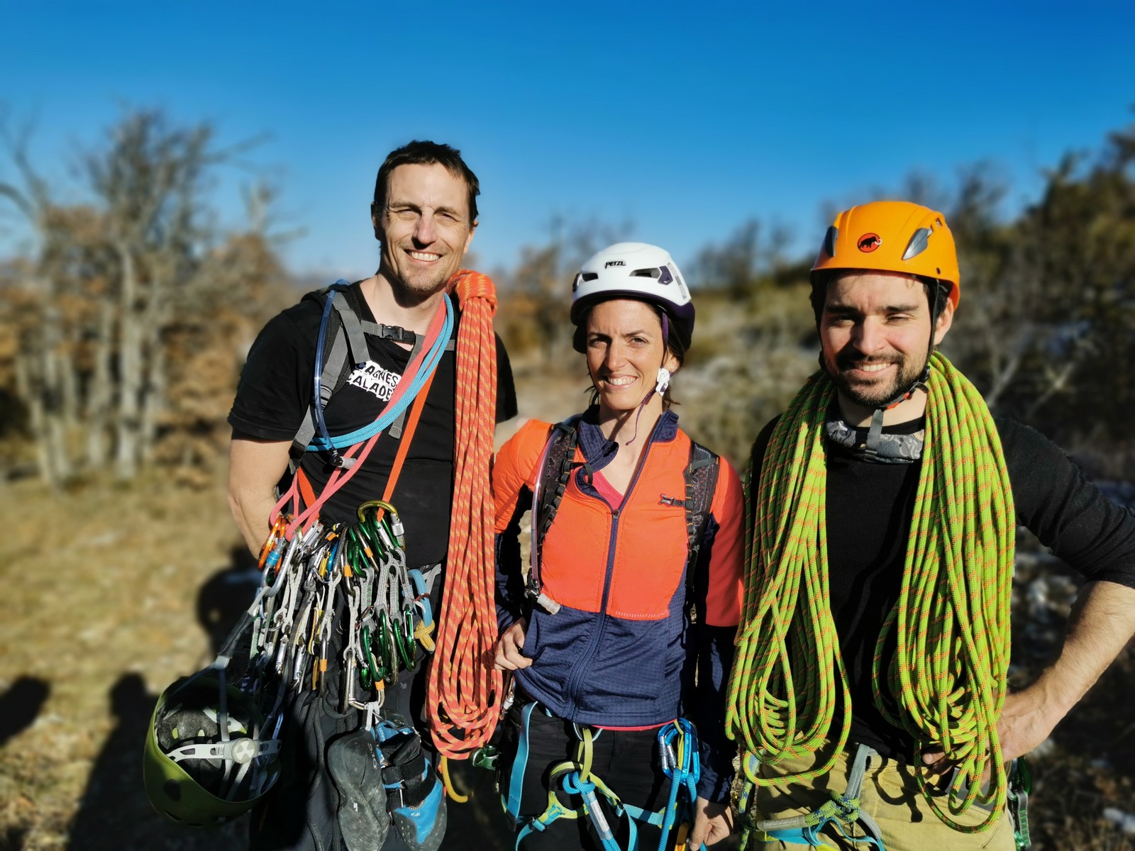 Camille, Brice et Gautier décident de partir dans Gardarem lou Destel puis de finir dans la traversée pour 5 longueurs en 5c, 5b, 6a, 5b, 5c.