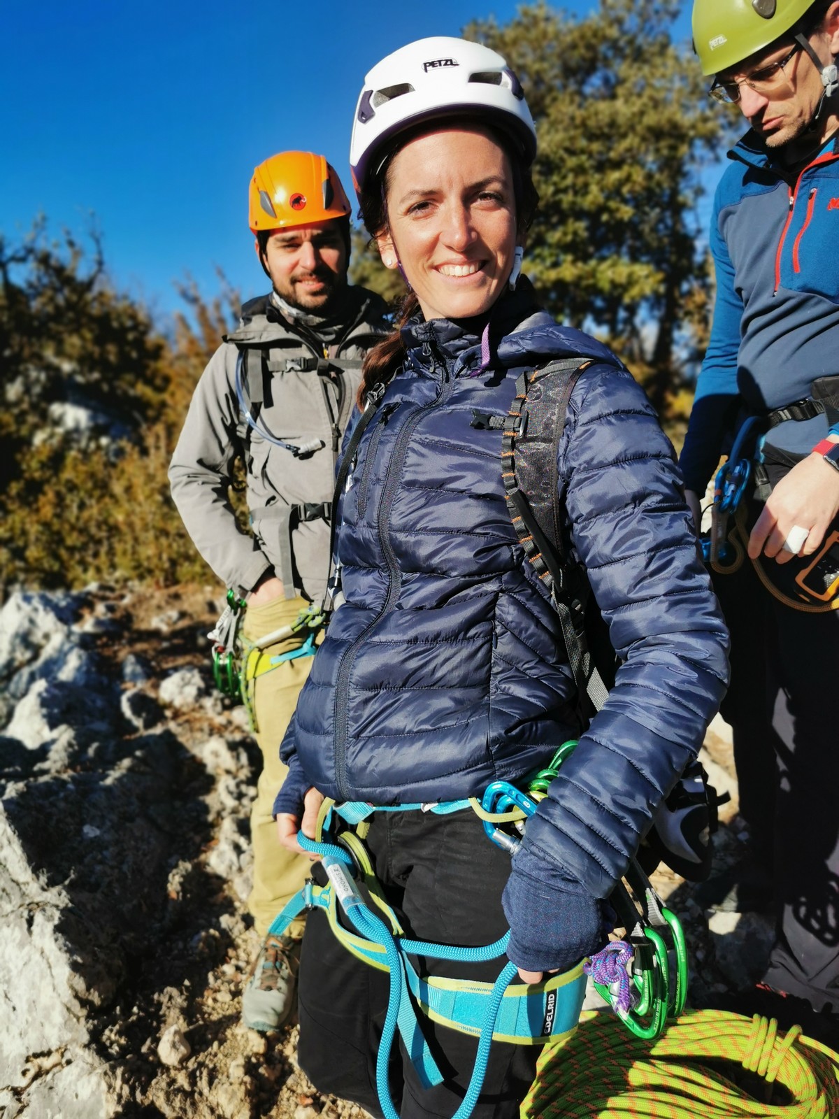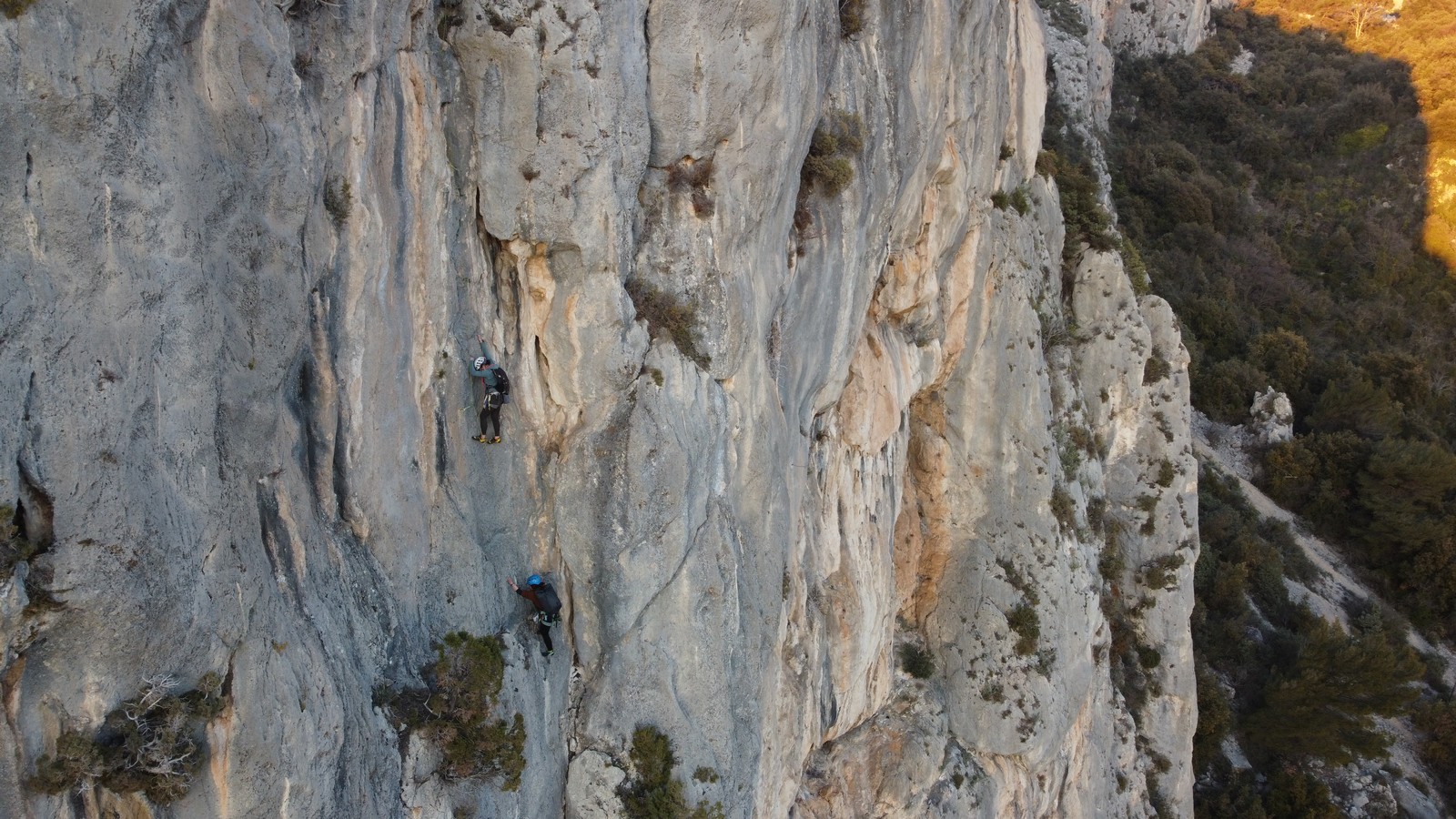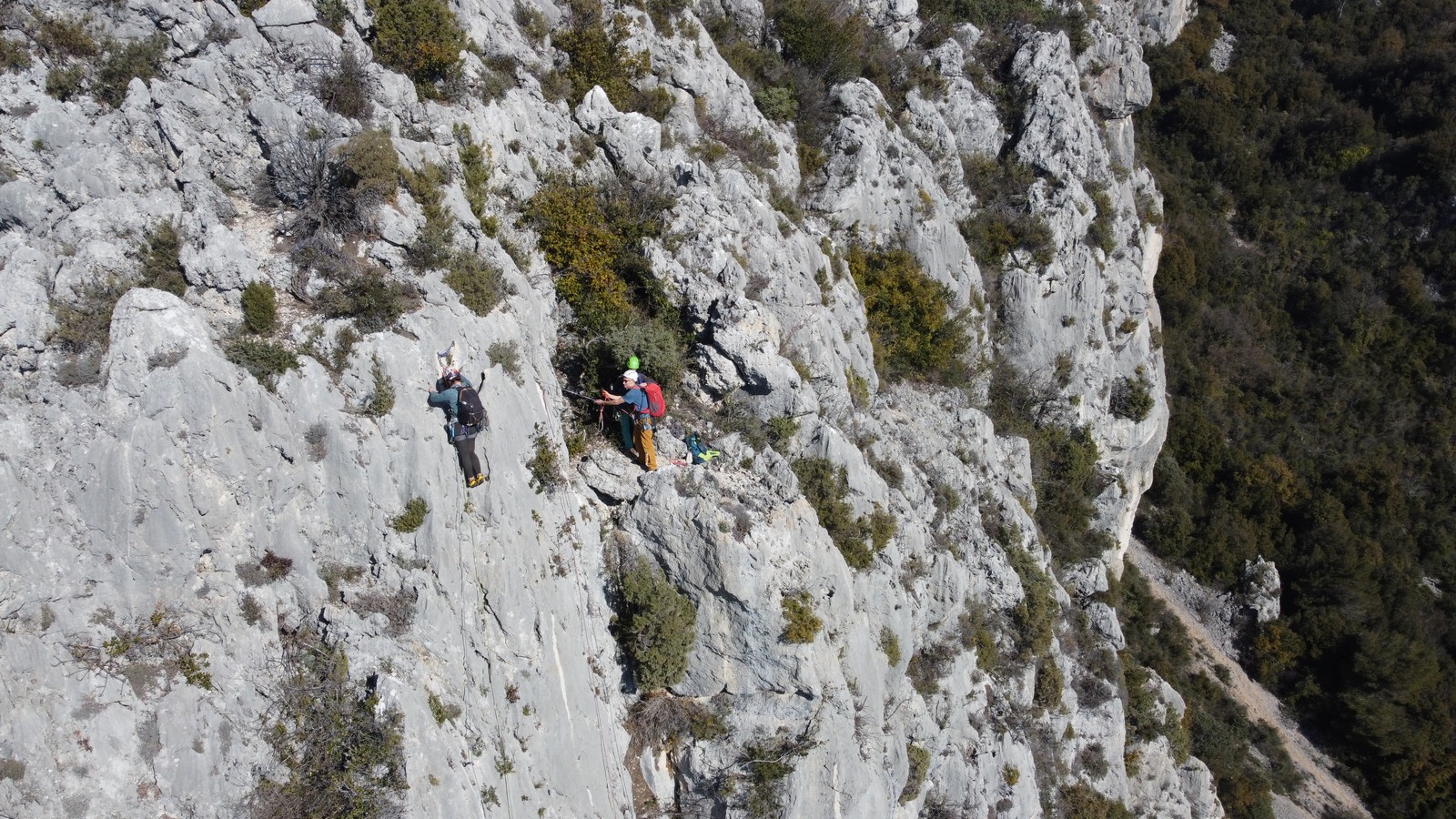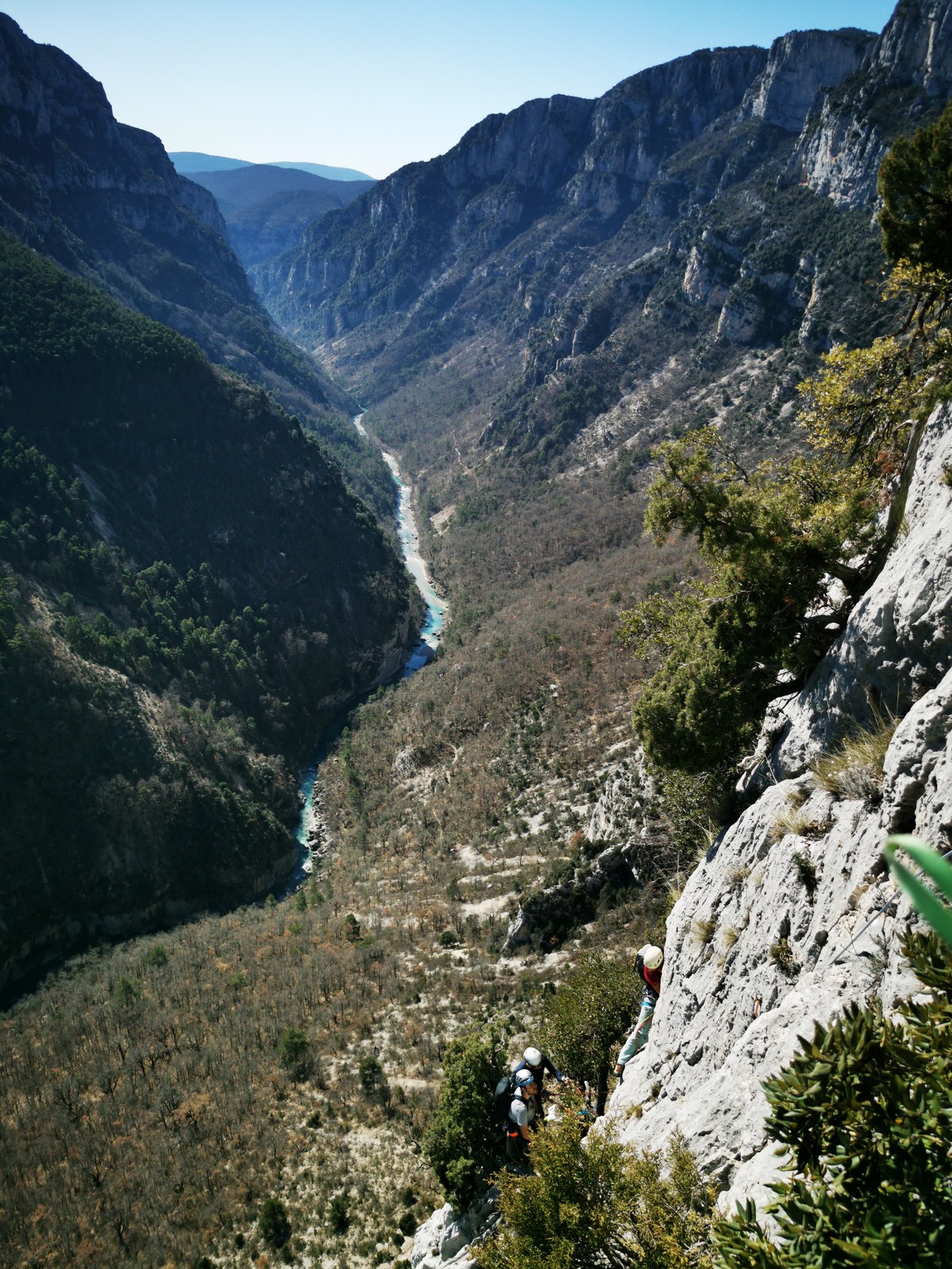 Camille, Brice et Gautier décident de partir dans Gardarem lou Destel puis de finir dans la traversée pour 5 longueurs en 5c, 5b, 6a, 5b, 5c.