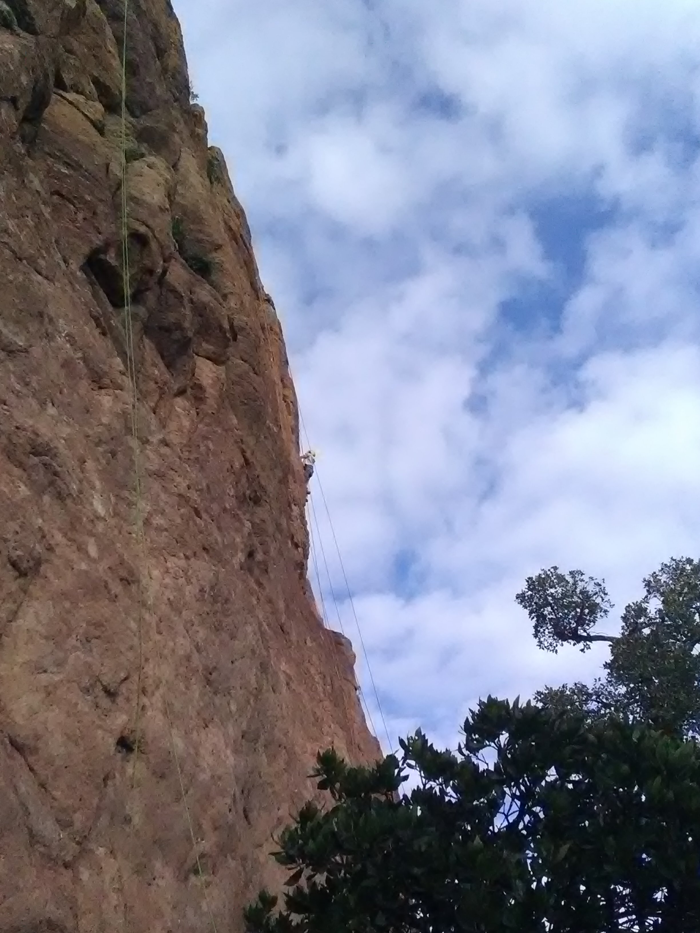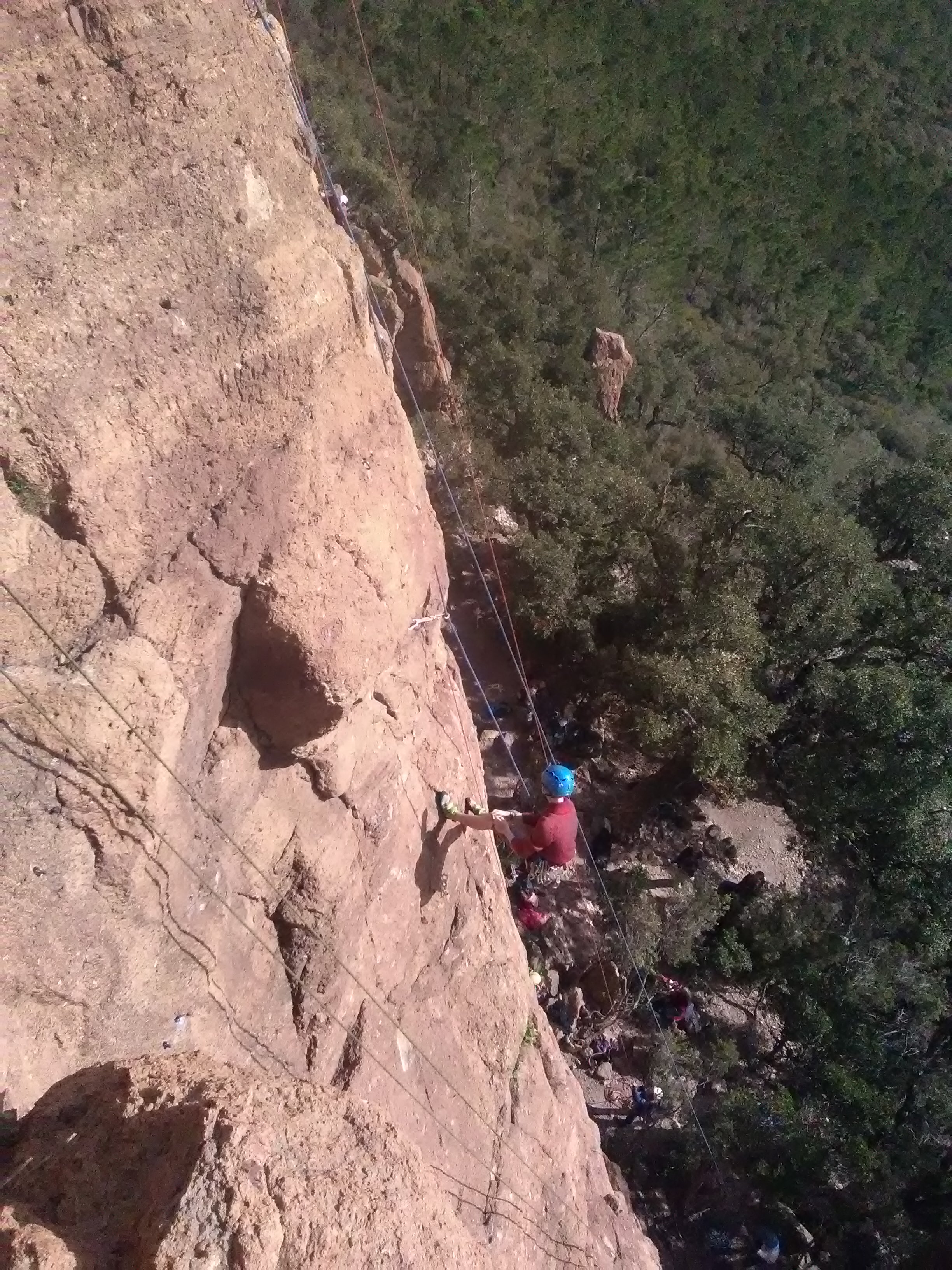 Ce dimanche, j’étais avec 10 jeunes du club et quelques parents au rocher des Monges, petite falaise fort sympathique au dessus de Théoule. Vue mer et ensoleillement maximum !