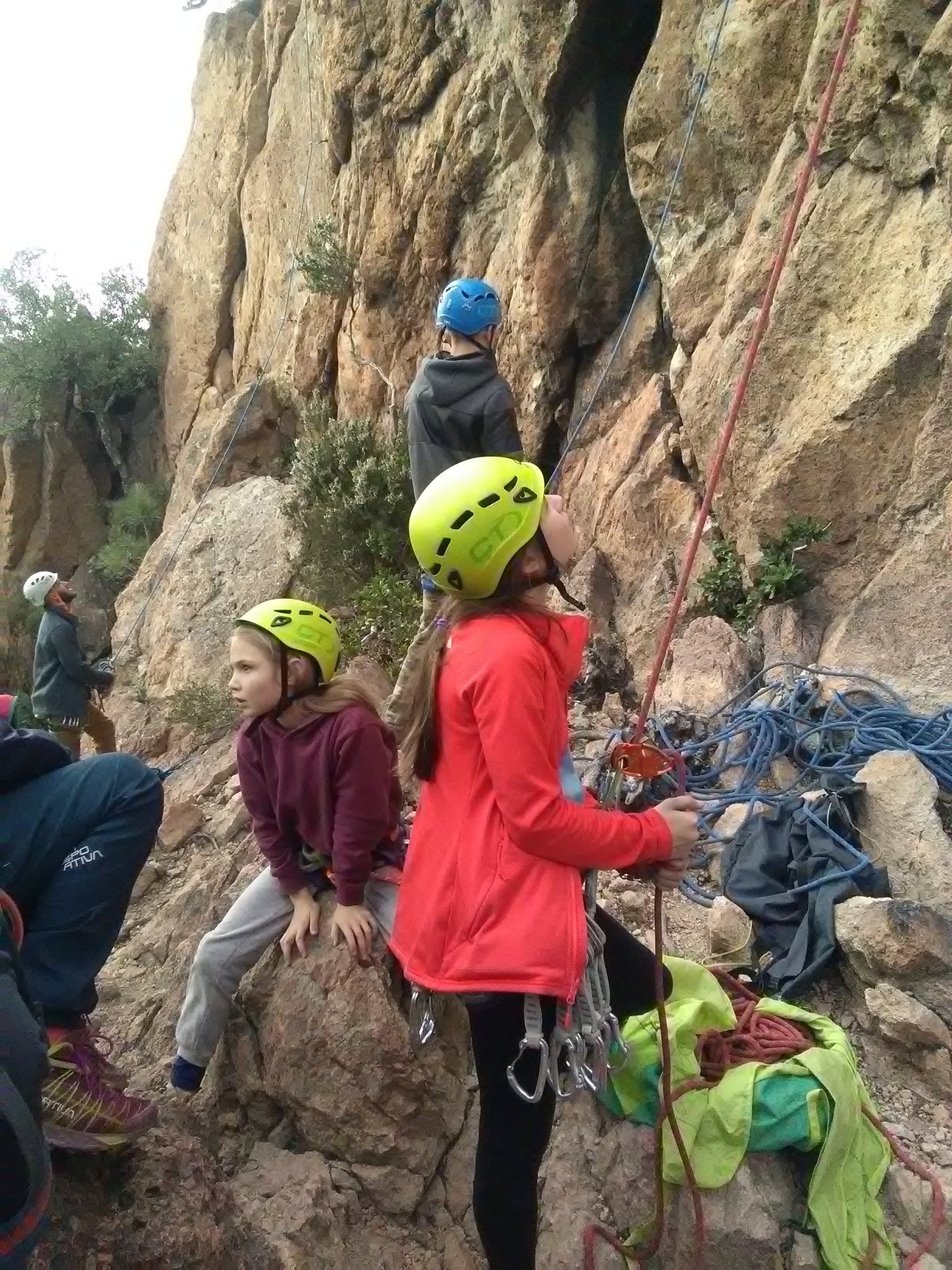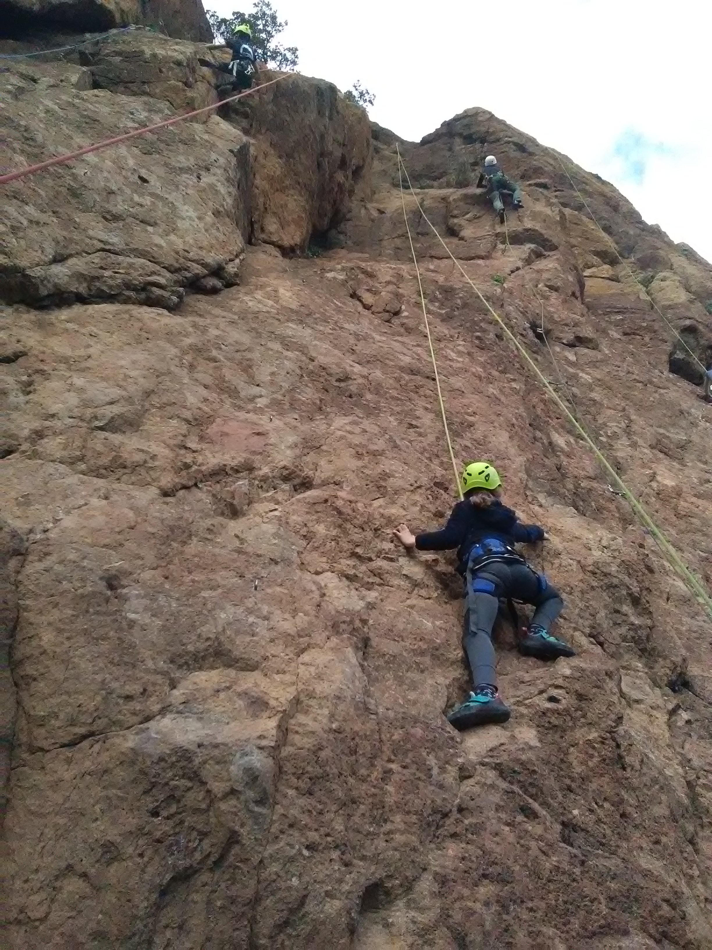 L’après-midi ne se voit pas plus reposant et ma vigilance est mise à rude épreuve. Mais tout se passe bien et les enfants explorent essentiellement 3 des 5c installés en moulinette. Agathe et Marine se démènent dans un beau et long 6a+ et Sienna profite d’une moulinette dans un 6a/b. Bref, ça grimpe !