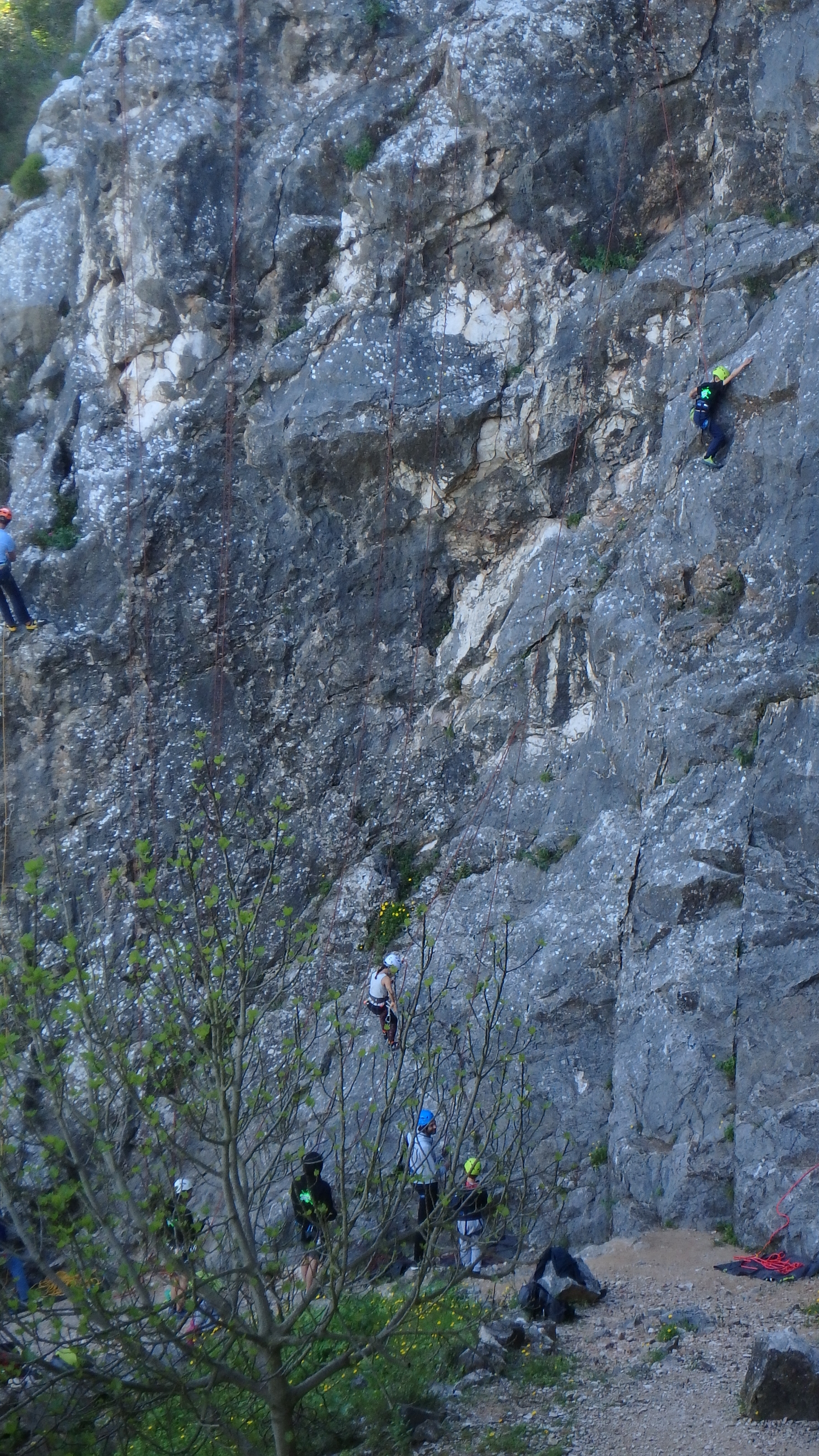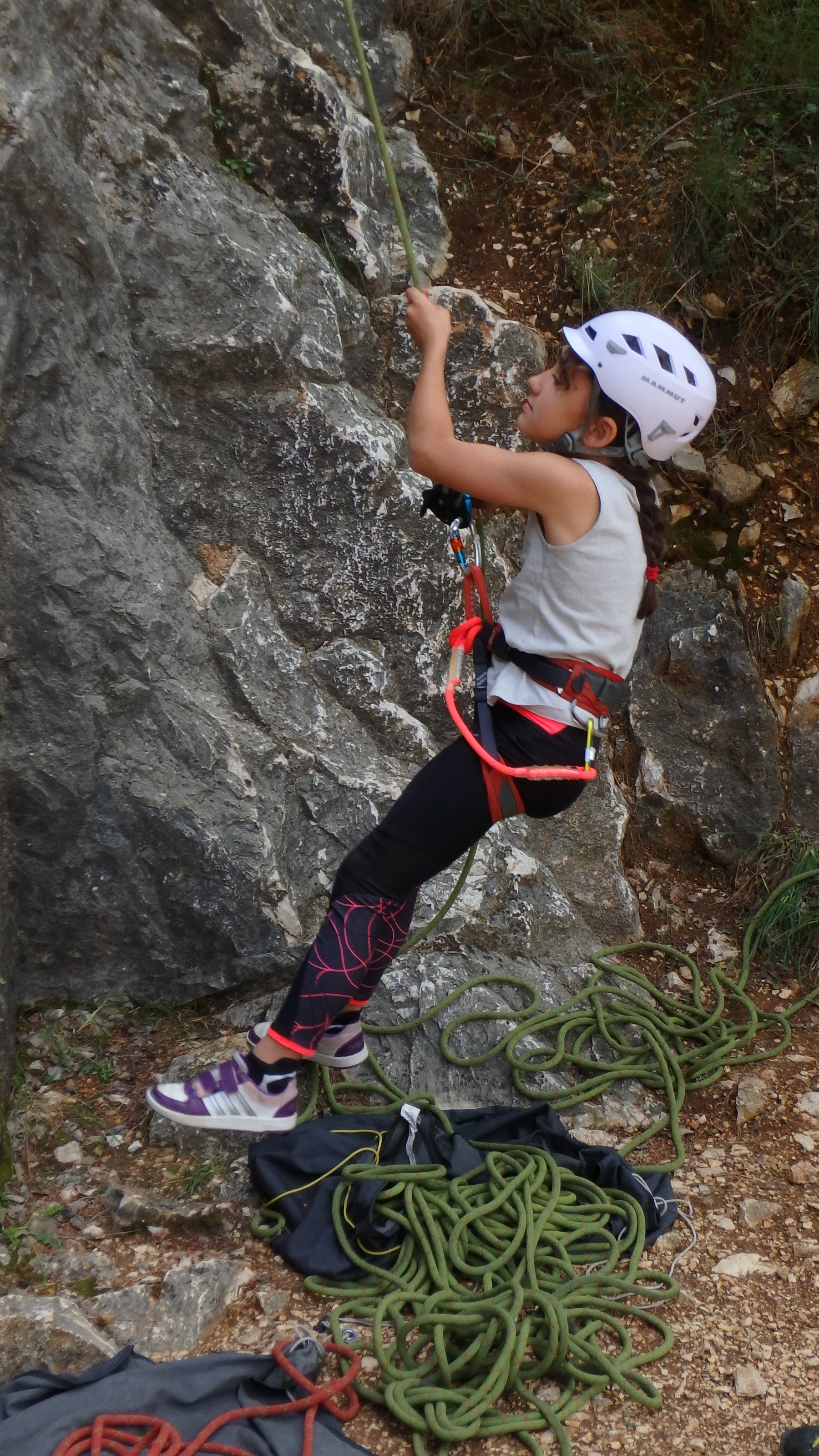 Antoine essaiera en fin de matinée et tout l’après-midi des voies assez dures, des 5, 5c et même de beaux essais dans un 6a. Sacrée motivation! Il n’hésitera pas à poser les dents sur le rocher pour monter toujours plus haut 😉 Une sacrée saison pour lui cette année, je ne l’aurai plus dans mes cours l’année prochaine mais je pense qu’il va vraiment s’éclater dans le créneau qu’il intègre.