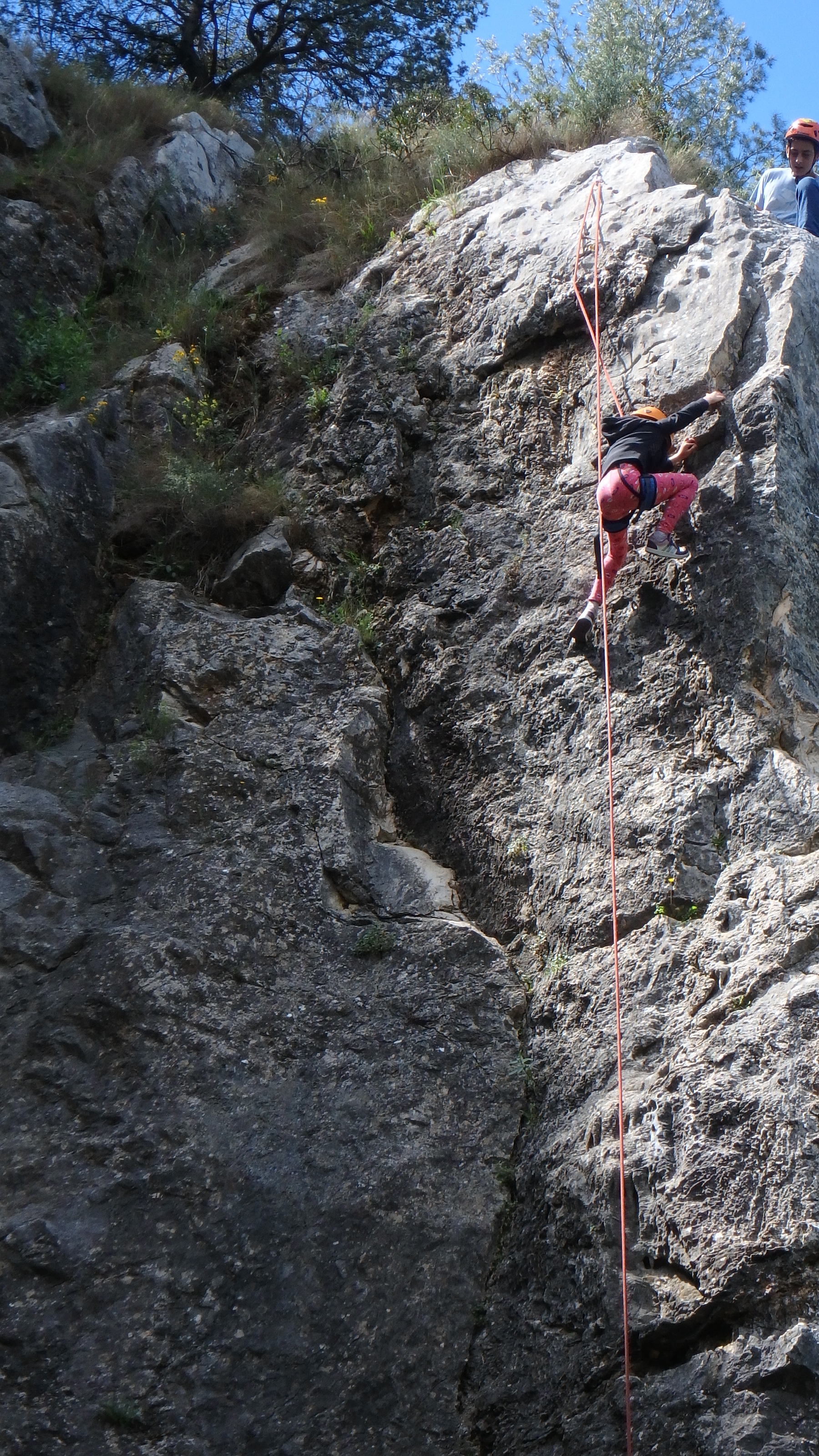 Louis et Axel grimperont sans relâche toute la journée. Content de voir que Louis se débrouille aussi bien sur rocher qu’en salle. Une motivation et un sérieux exemplaire chez ce jeune garçon, j’ai hâte de le retrouver l’année prochaine dans les cours pour suivre et participer à sa progression dans l’activité. Quant à Axel, il semble très motivé par les sorties falaises, toujours présent lors de celles-ci. Dommage qu’à la salle cette même motivation fasse un peu le yoyo d’une séance à l’autre ! Rien de grave à cet âge bien sûr mais il serait sacrément fort s’il était un poil plus constant sur les différentes séances. Néanmoins un super jeune!