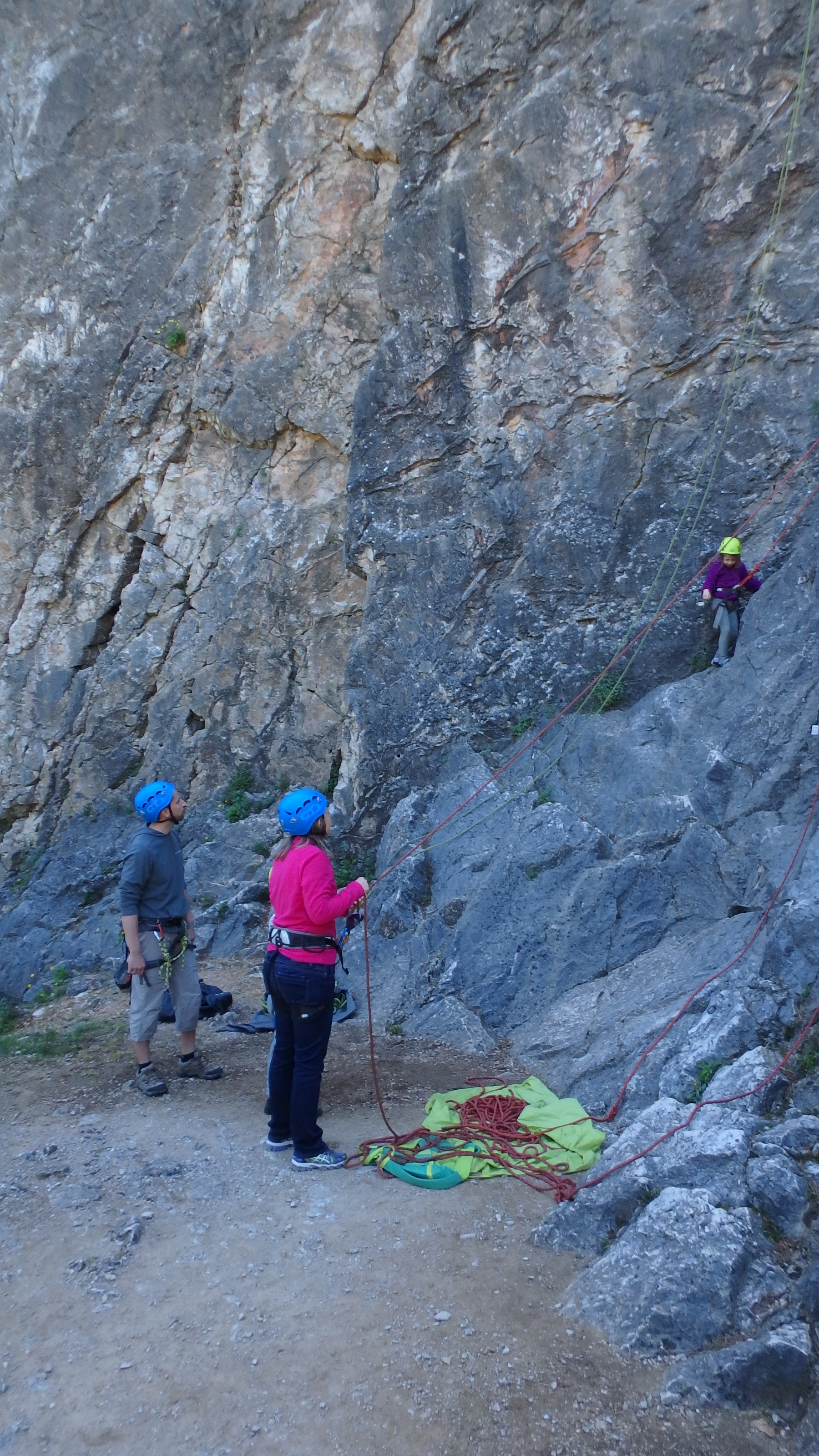 Les plus petits auront un peu de mal à la descente. Un classique à ce secteur, surtout la partie de gauche où les voies sont taillées en escaliers… Du coup à chaque fois qu’on en descend une, si on n’est pas vigilant ou qu’on s’y attend pas, on se fait un bobo…