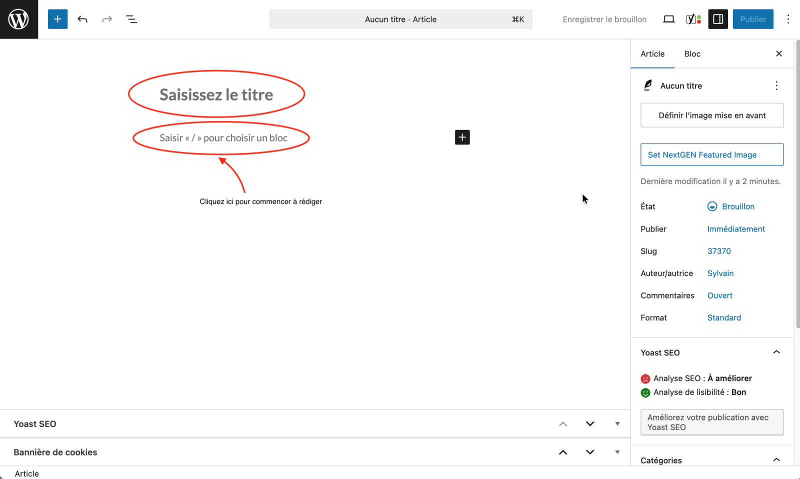 Taper le titre de l’article là où c’est indiqué Saisir le titre.