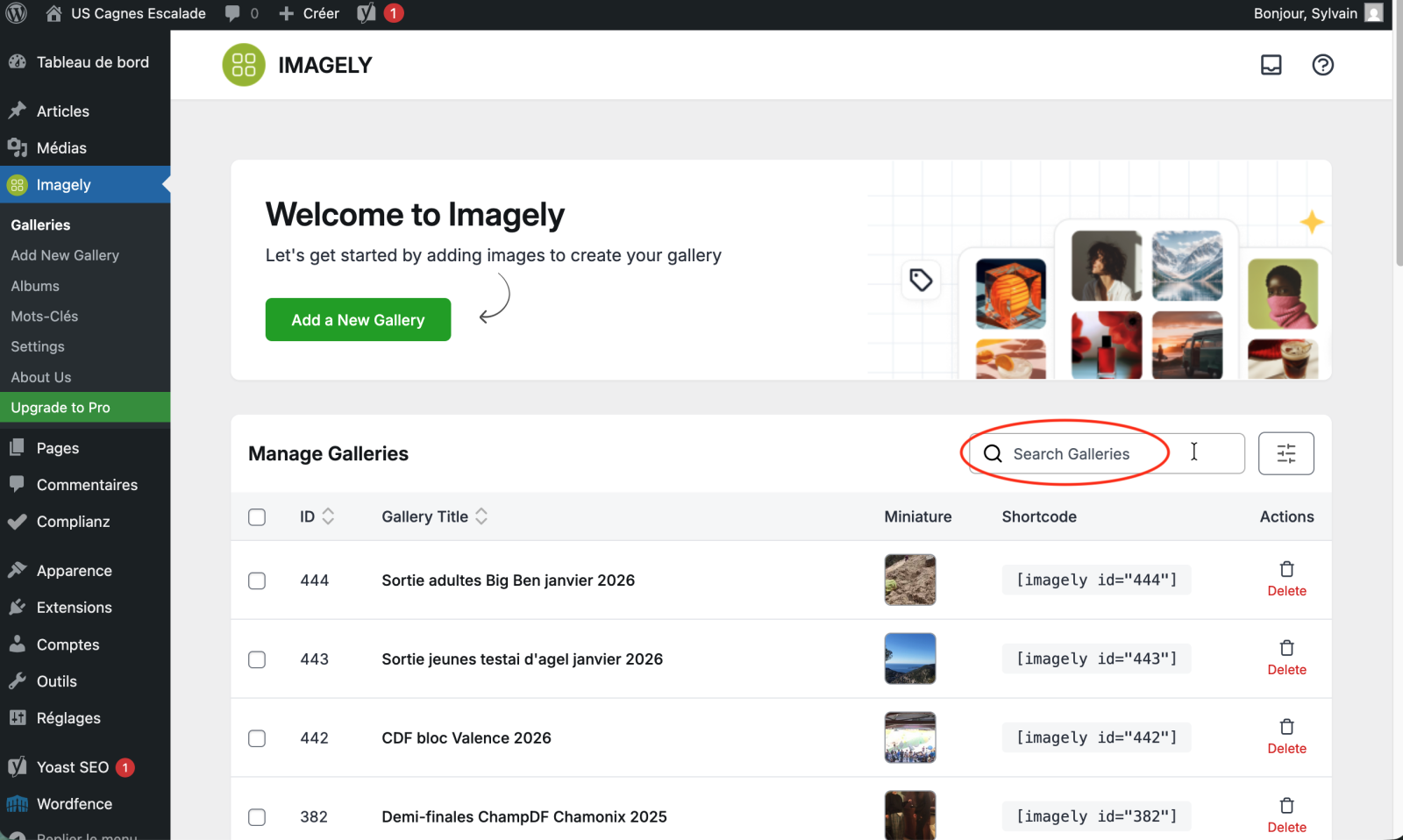 Dans le nouvel onglet créé, dans le menu de gauche, survolez IMAGELY et cliquez sur Galleries.