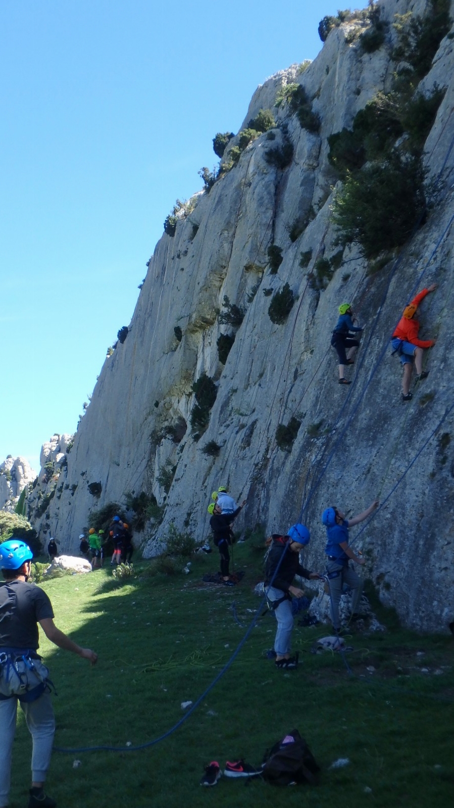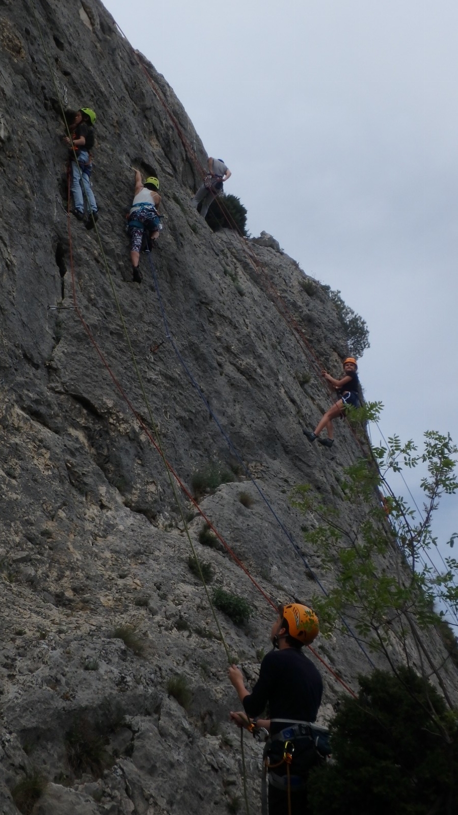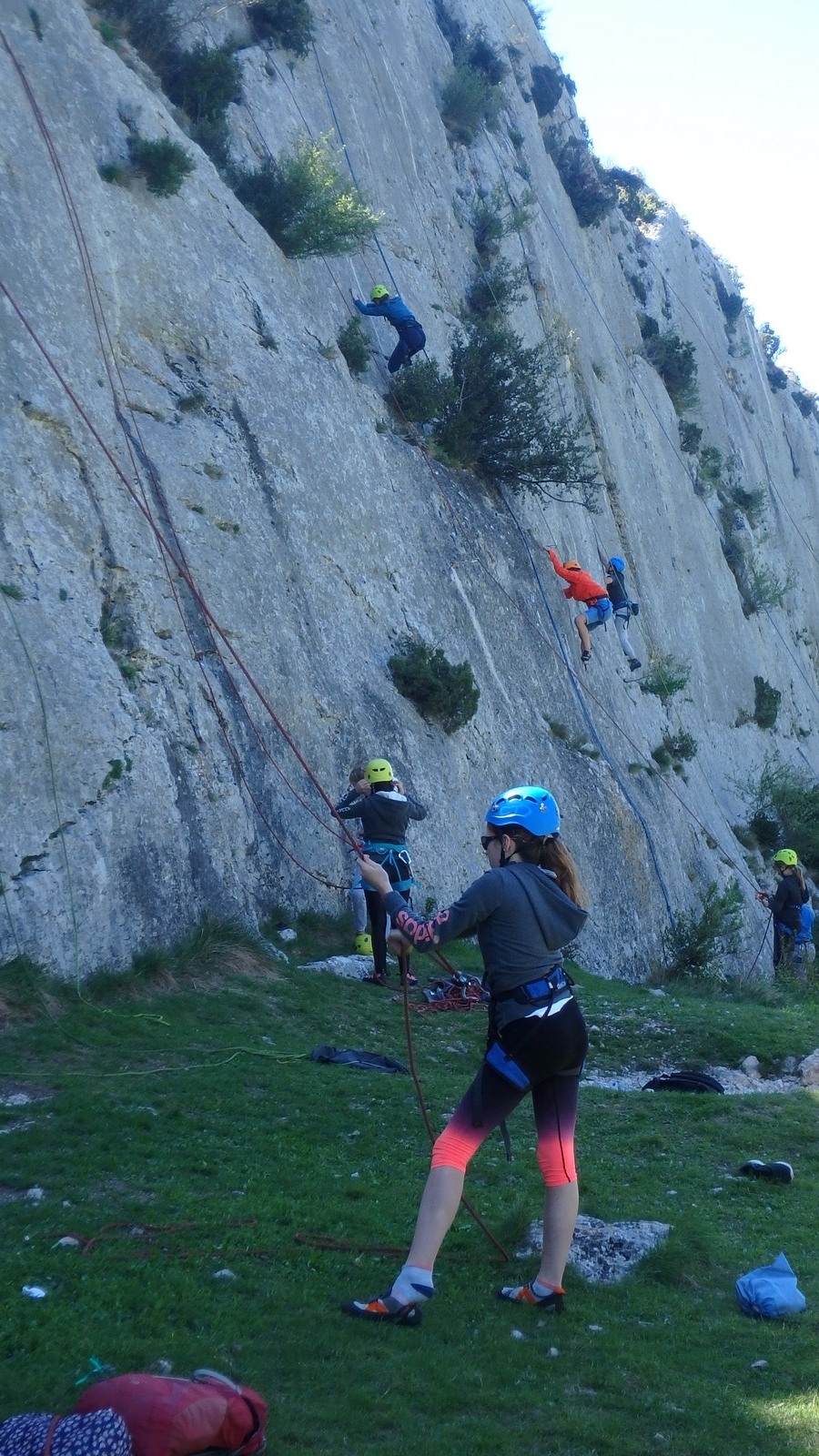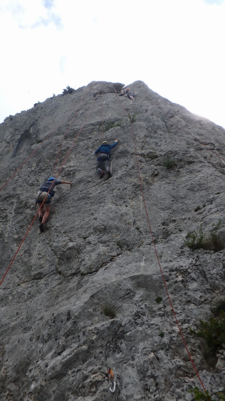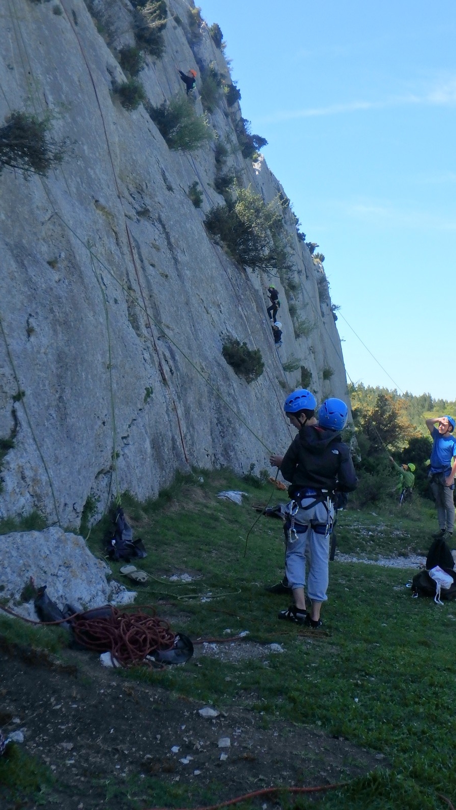 Les cordées s’organisent et chacun prend ses marques, les plus jeunes ont besoin d’être un peu poussés, d’autres enchaînent les longueurs, et s’essaient à la grimpe en tête. Au final l’après-midi est bien remplie et chacun a pu grimper à son rythme.