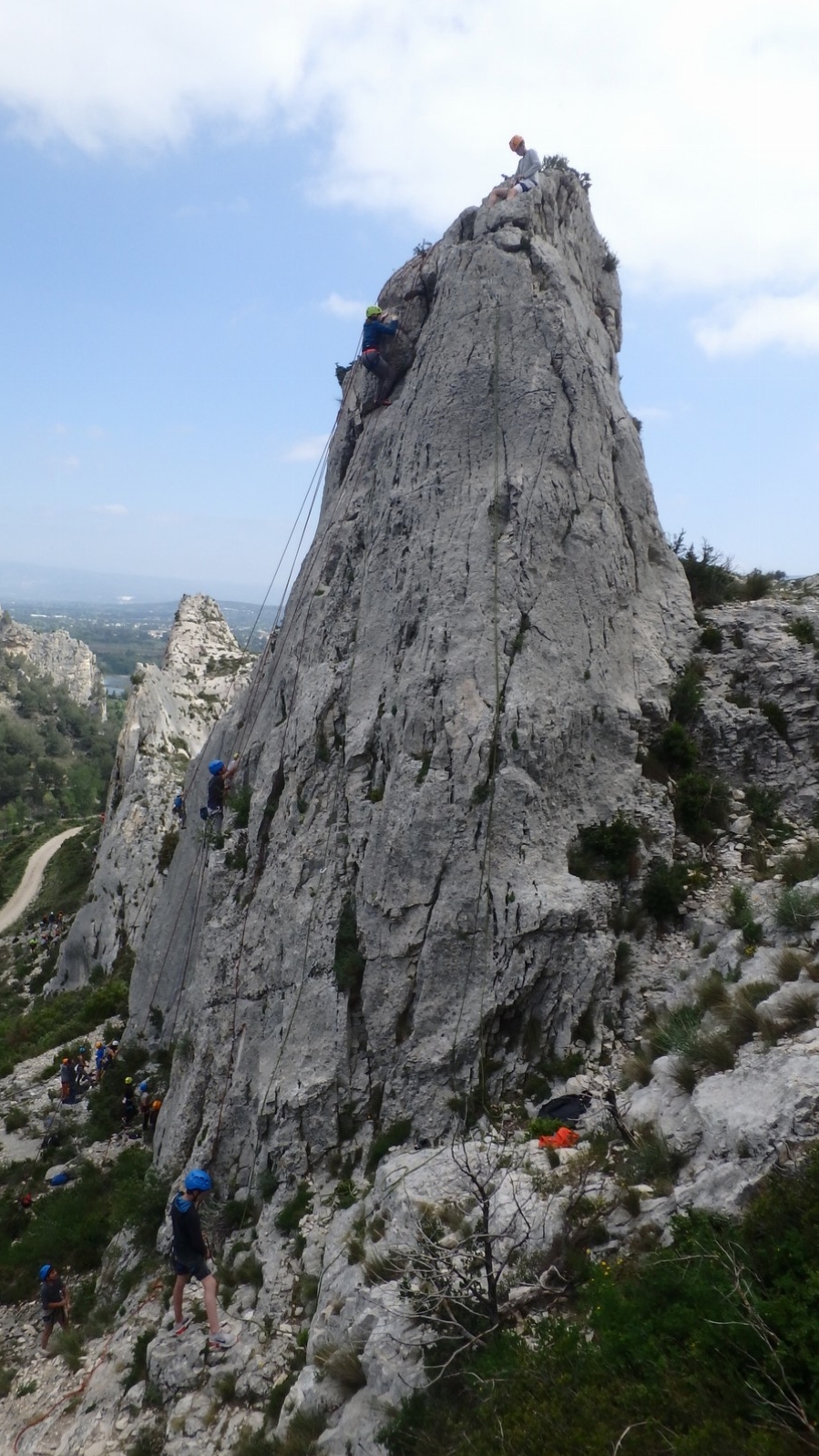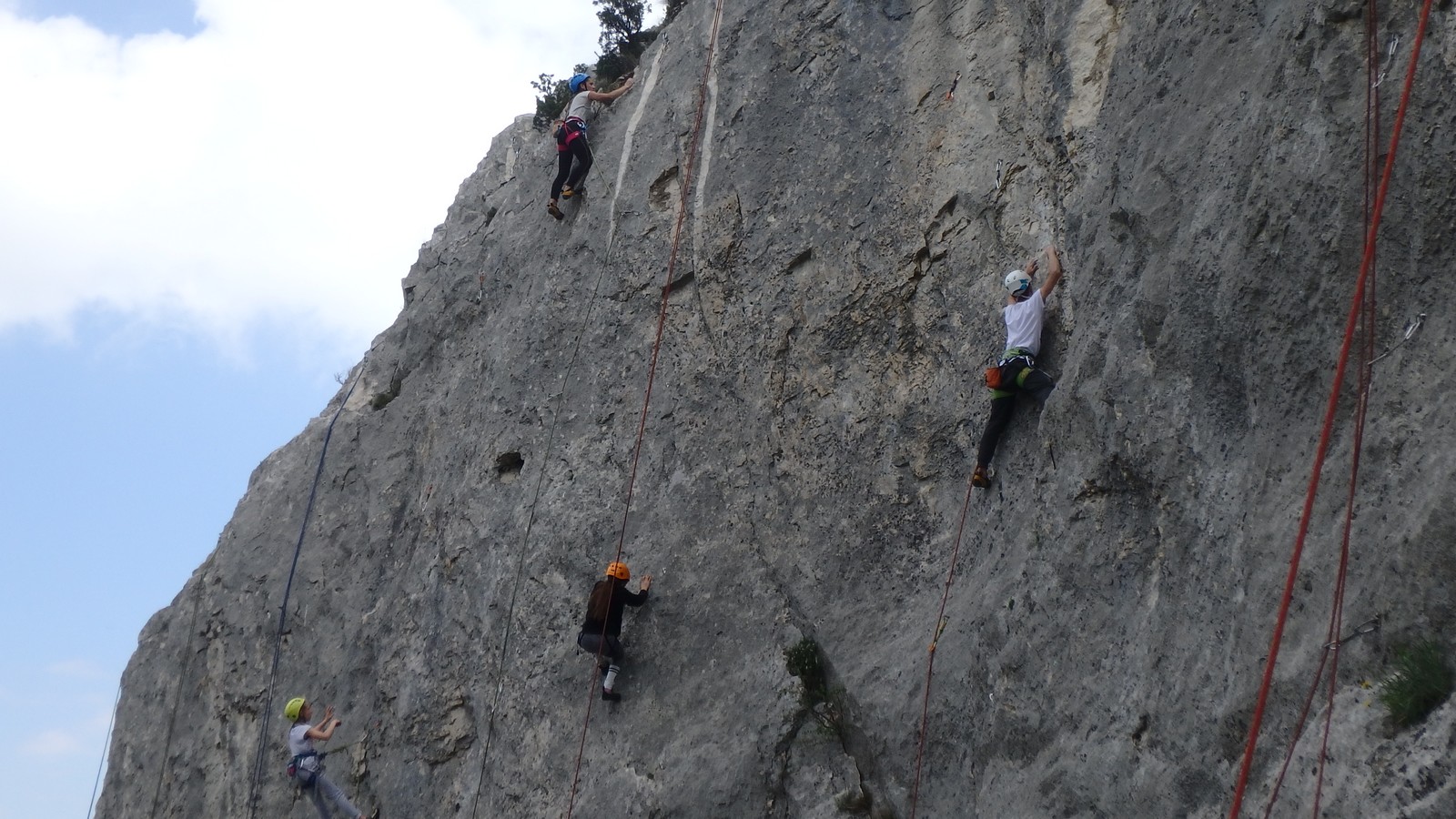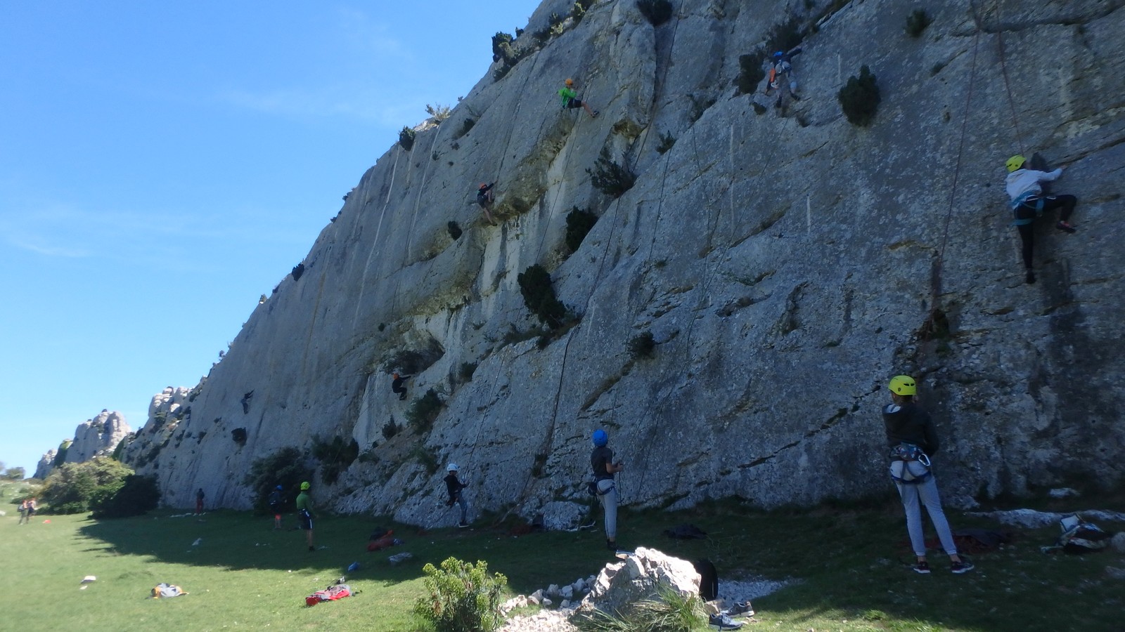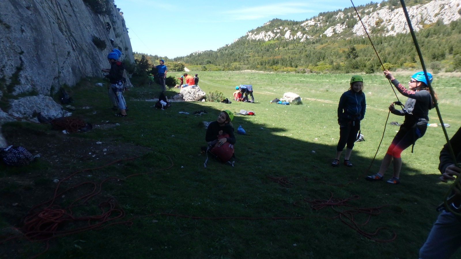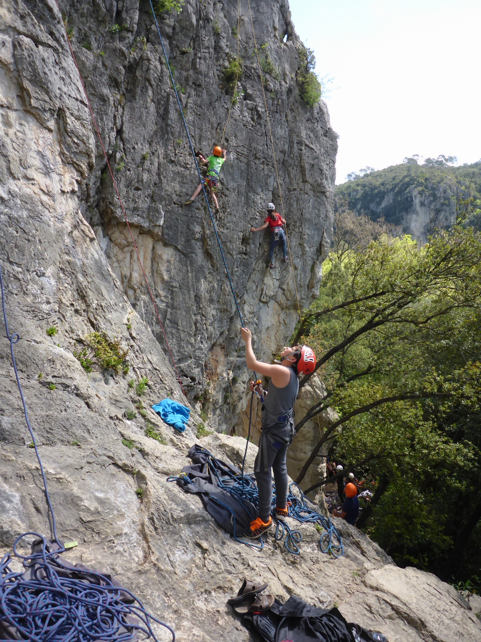 Les cordées s’organisent et chacun prend ses marques, les plus jeunes ont besoin d’être un peu poussés, d’autres enchaînent les longueurs, et s’essaient à la grimpe en tête. Au final l’après-midi est bien remplie et chacun a pu grimper à son rythme.