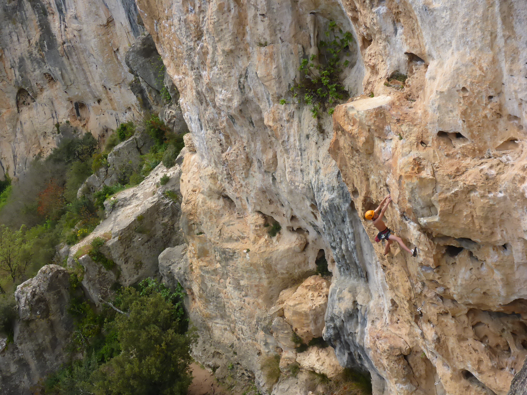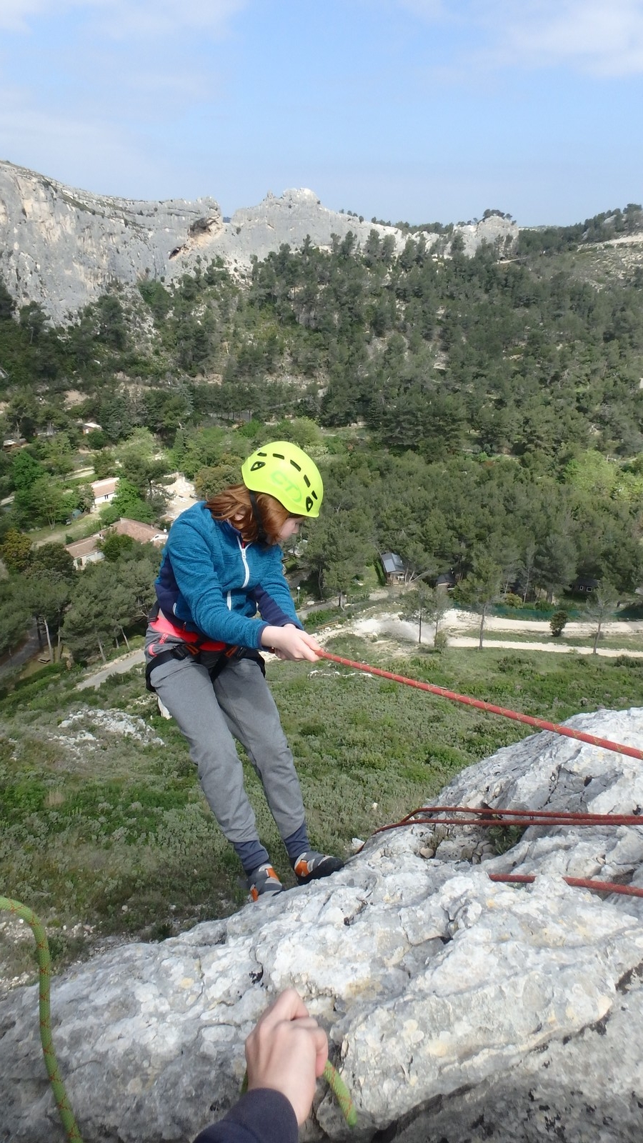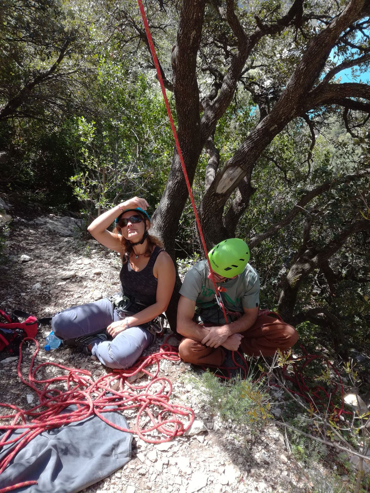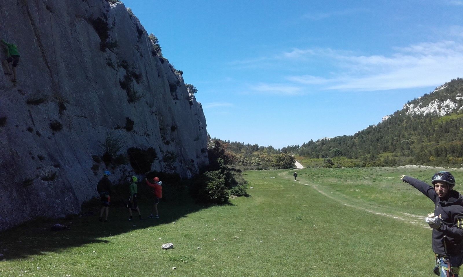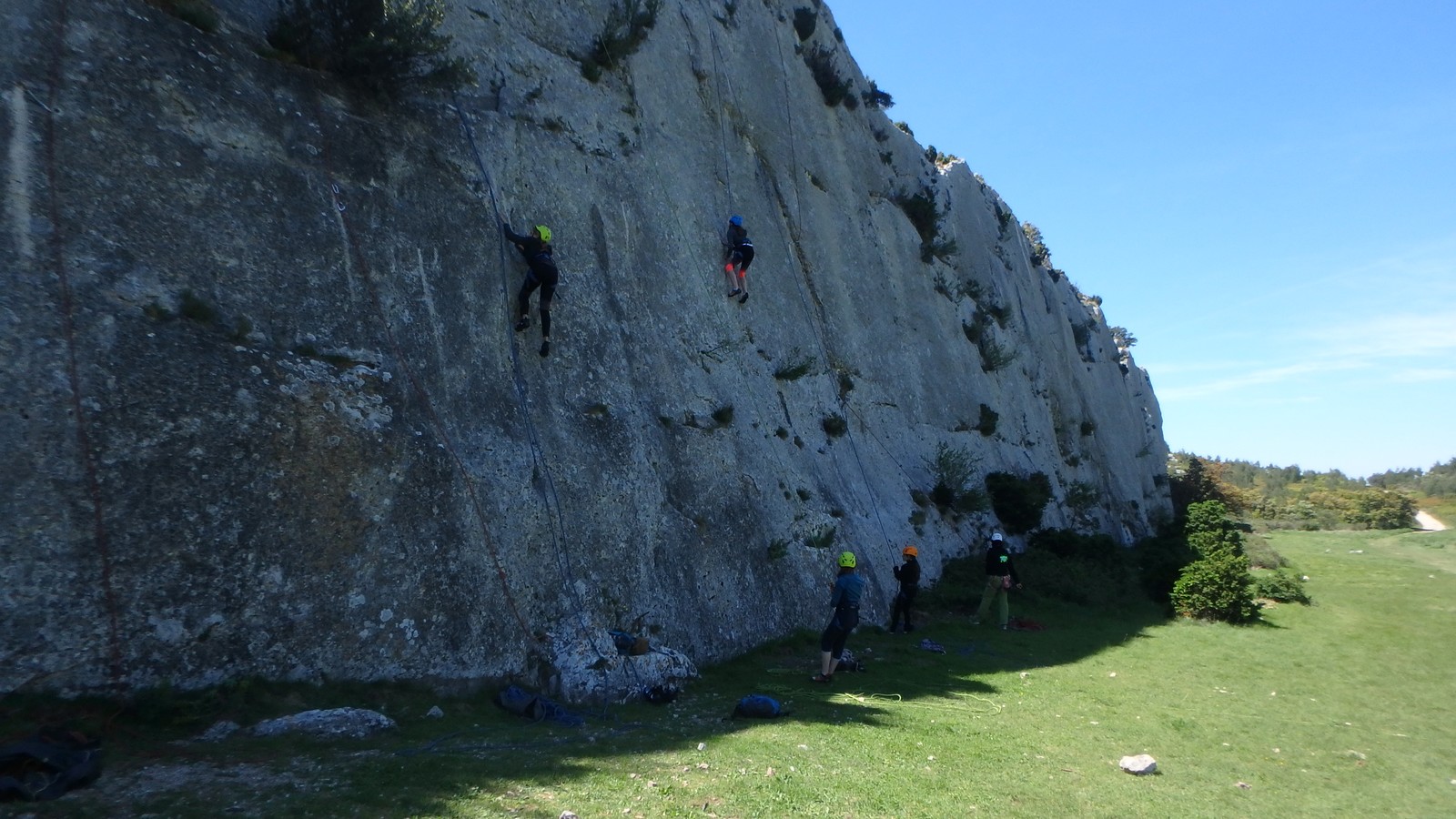 Aujourd’hui, nous grimpons aux Sallières, un site accessible depuis le haut en rappel (avec donc obligation de sortir les voies pour remonter le soir, histoire de mettre un peu la pression).