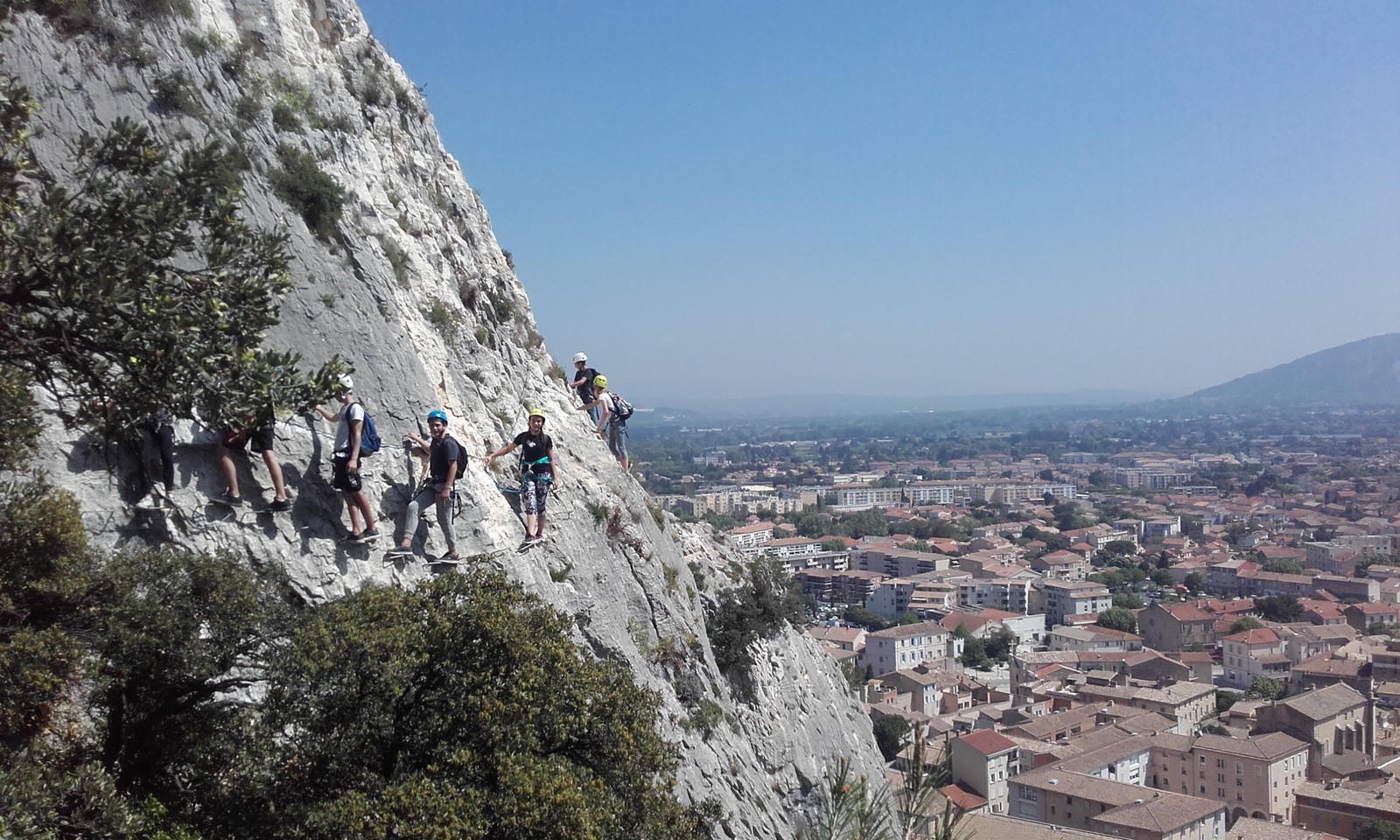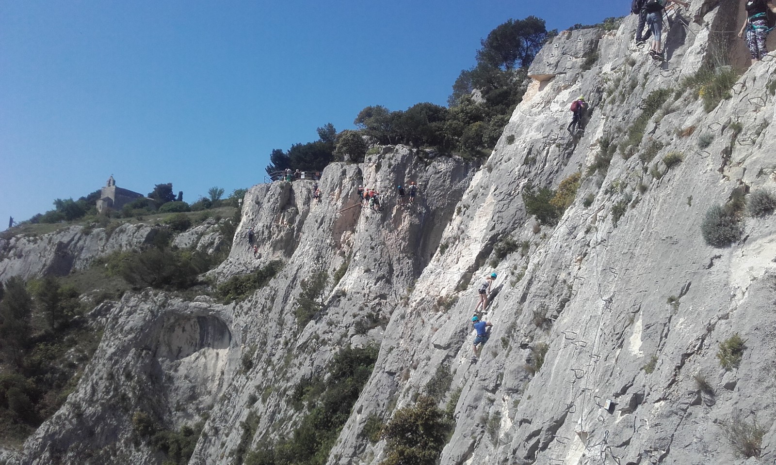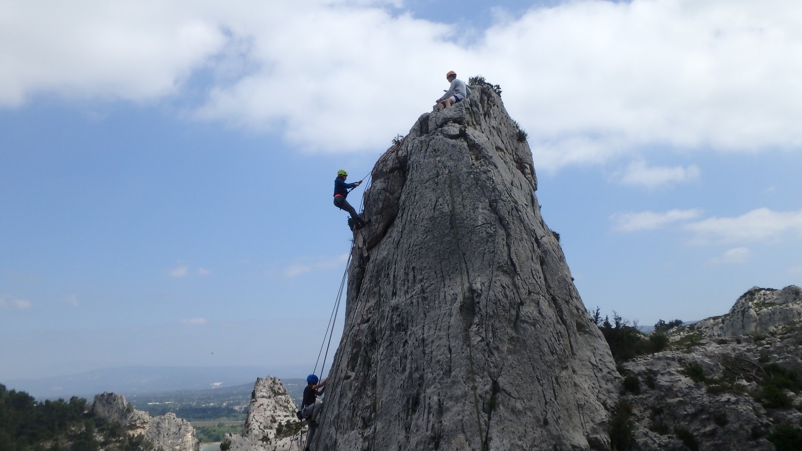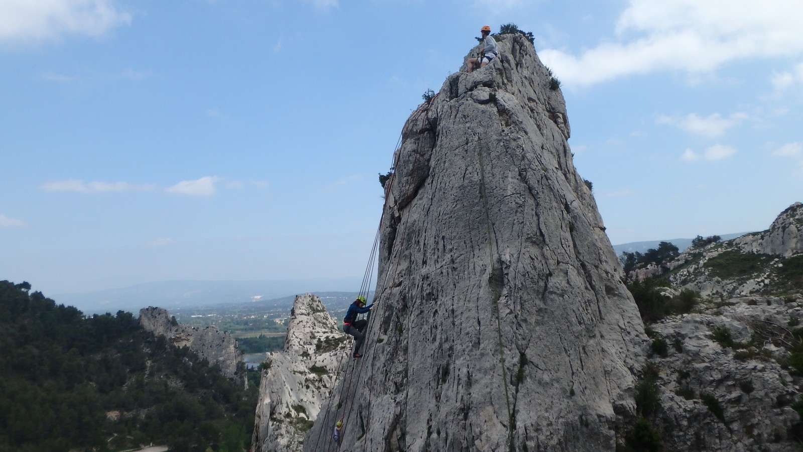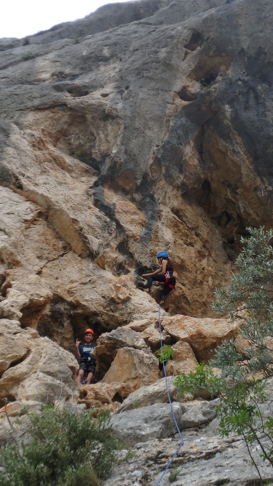 Aujourd’hui, nous grimpons aux Sallières, un site accessible depuis le haut en rappel (avec donc obligation de sortir les voies pour remonter le soir, histoire de mettre un peu la pression).