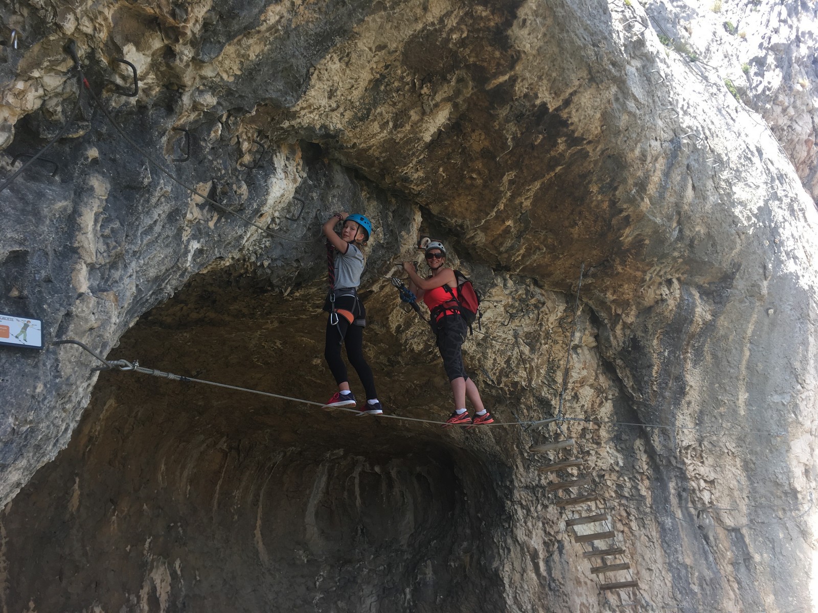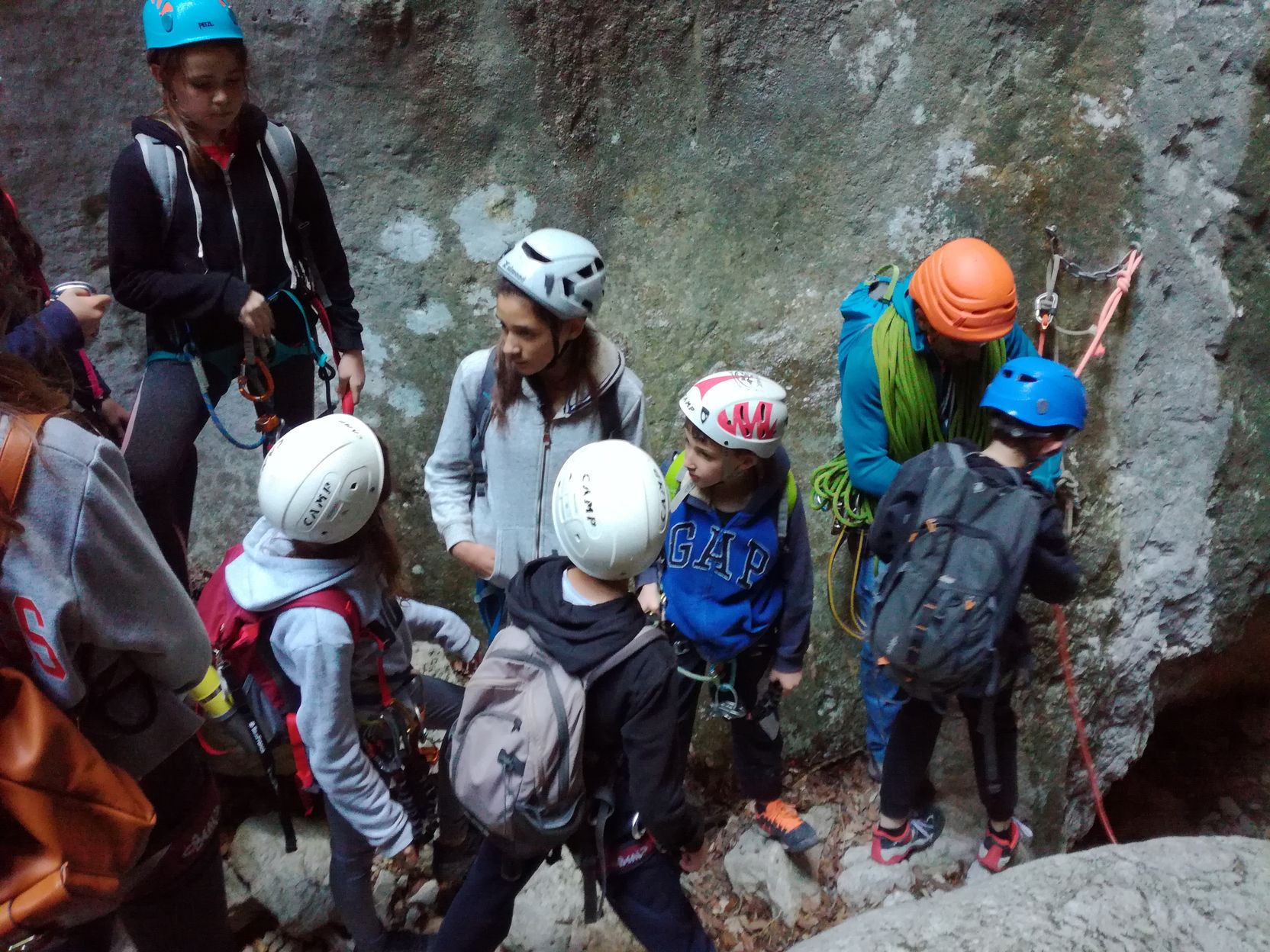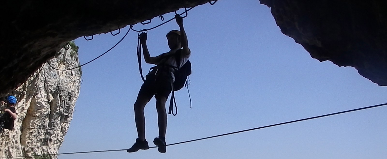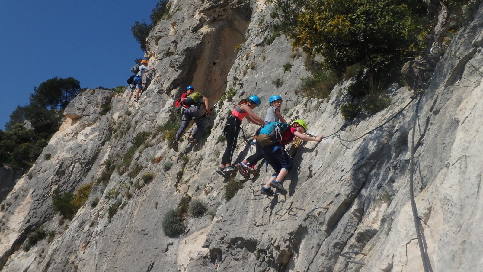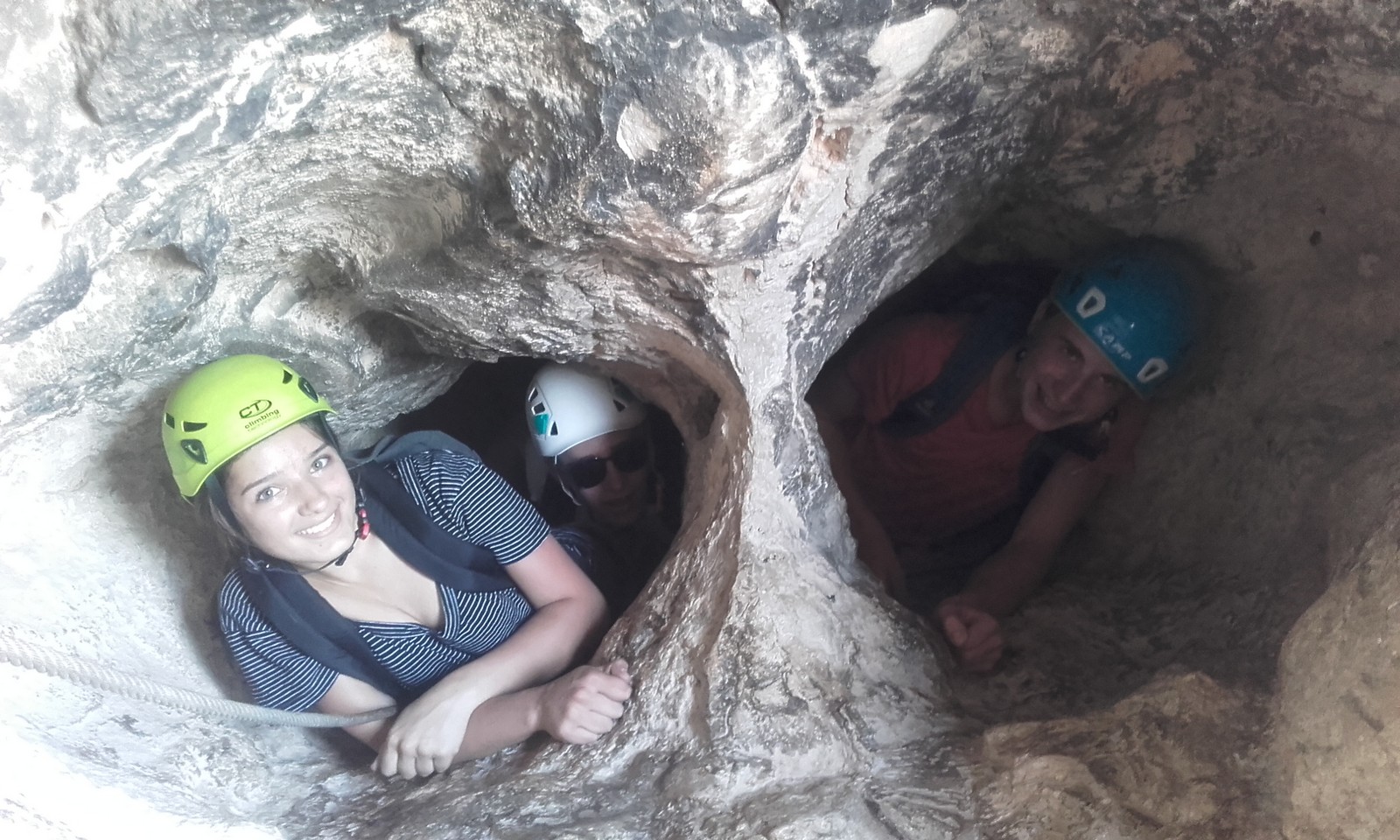 En ce milieu de semaine, les moniteurs avaient prévu une journée un peu plus tranquille pour faire un petit repos grimpe. Au programme un canyon sec : le ravin de Mainmorte. Oui, vous avez bien compris, il s’agit d’une descente de canyon mais sans eau qui coule, avec rappels, tyroliennes pour éviter les vasques stagnantes, marches et un peu de désescalade. C’est un superbe enchaînement de rappels dans d’incroyables resserrements qui nous attend. Nous nous déplaçons dans un décor magique, frais et humide à la recherche du soleil pour déjeuner.