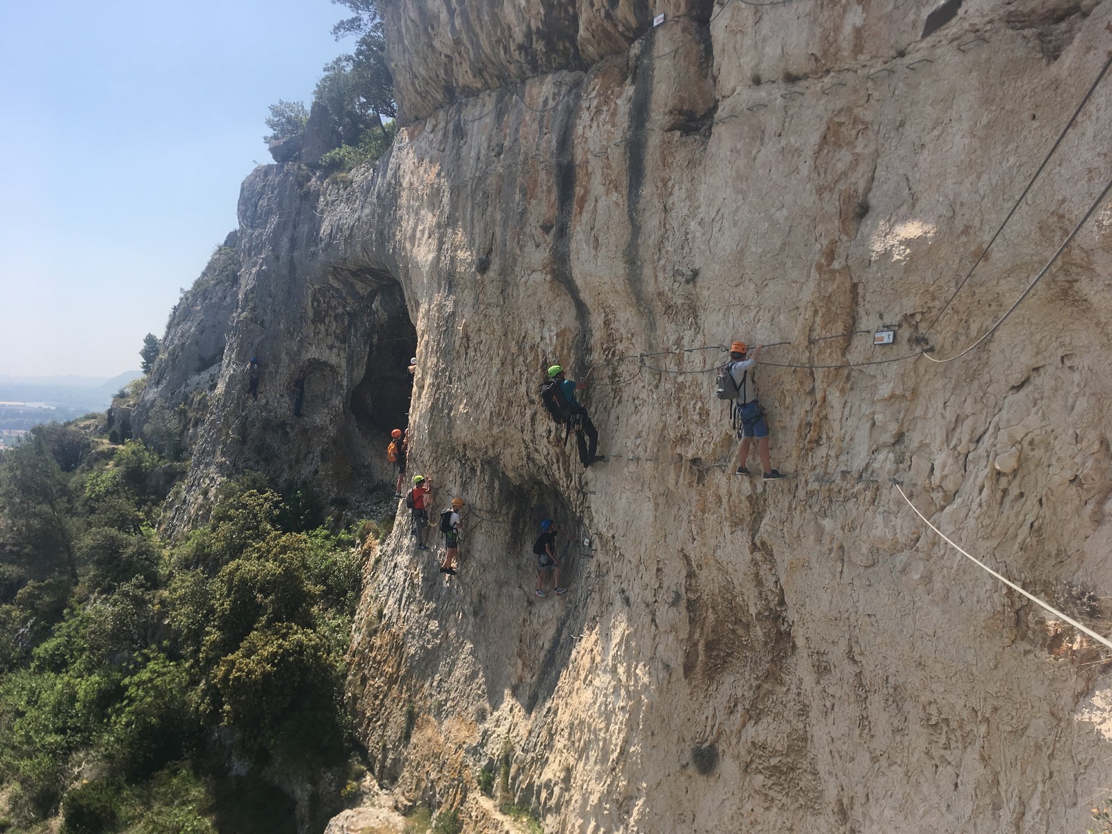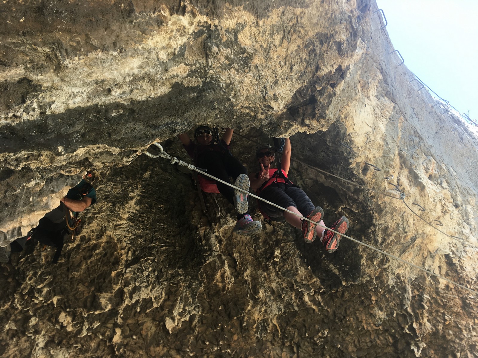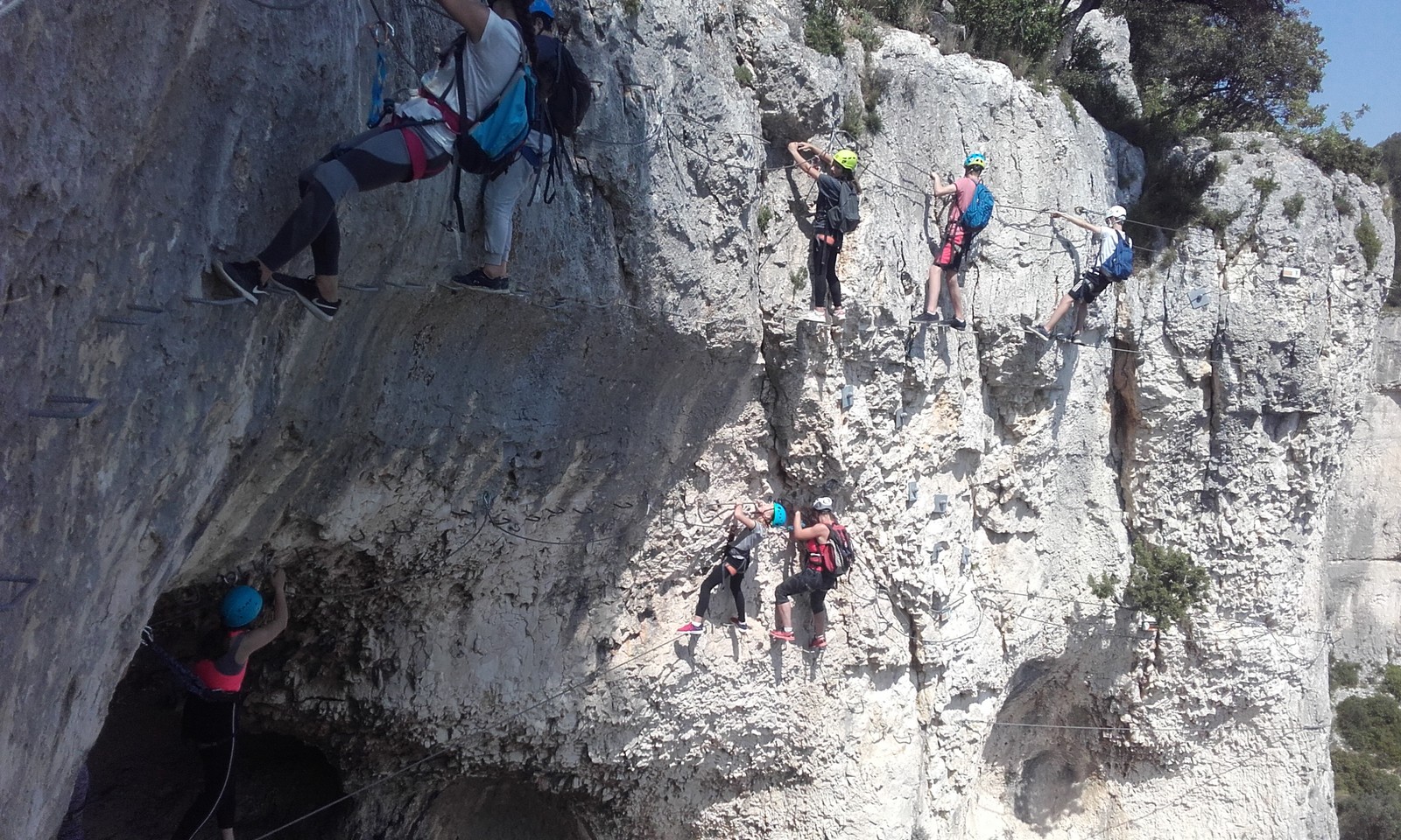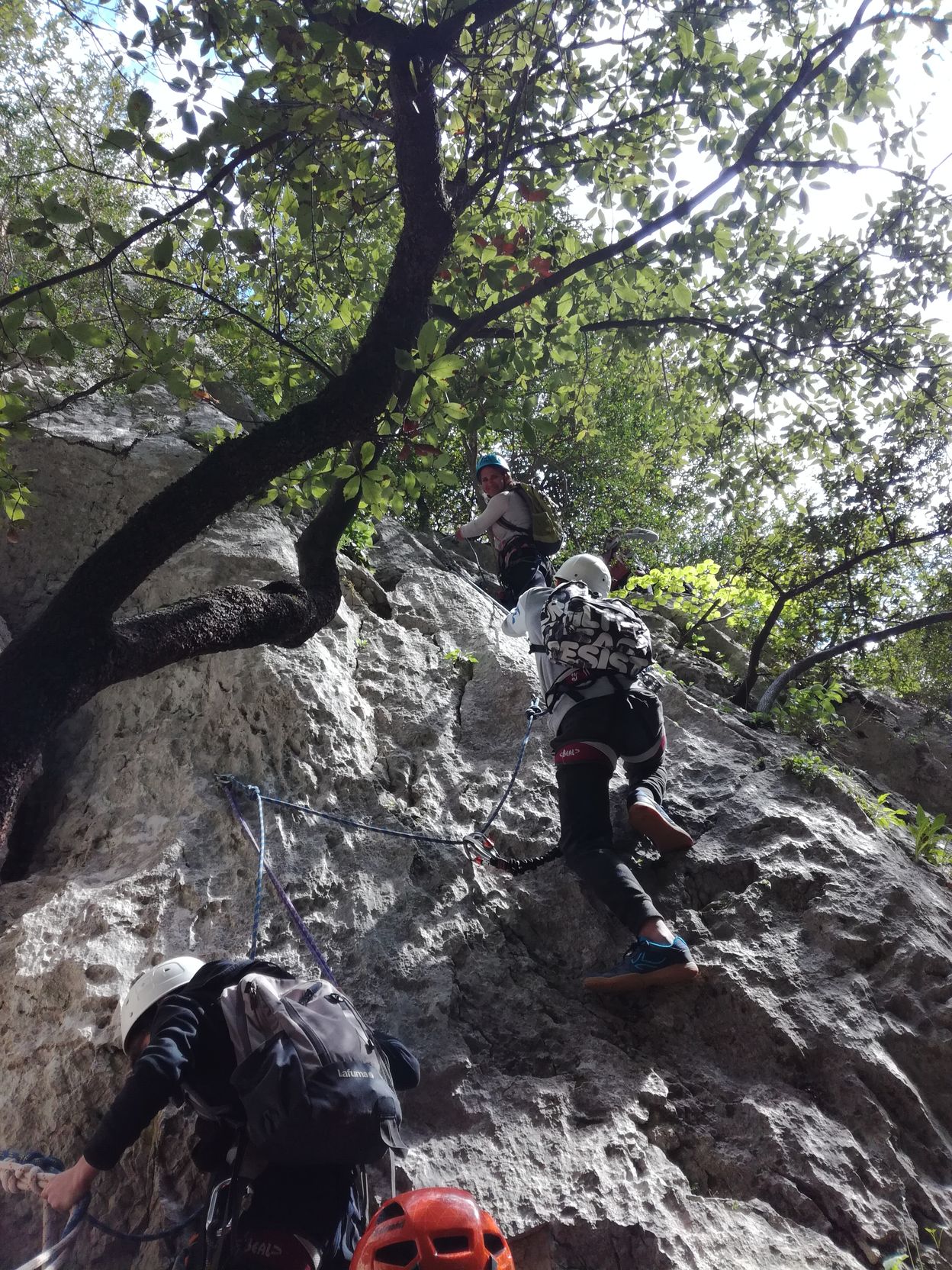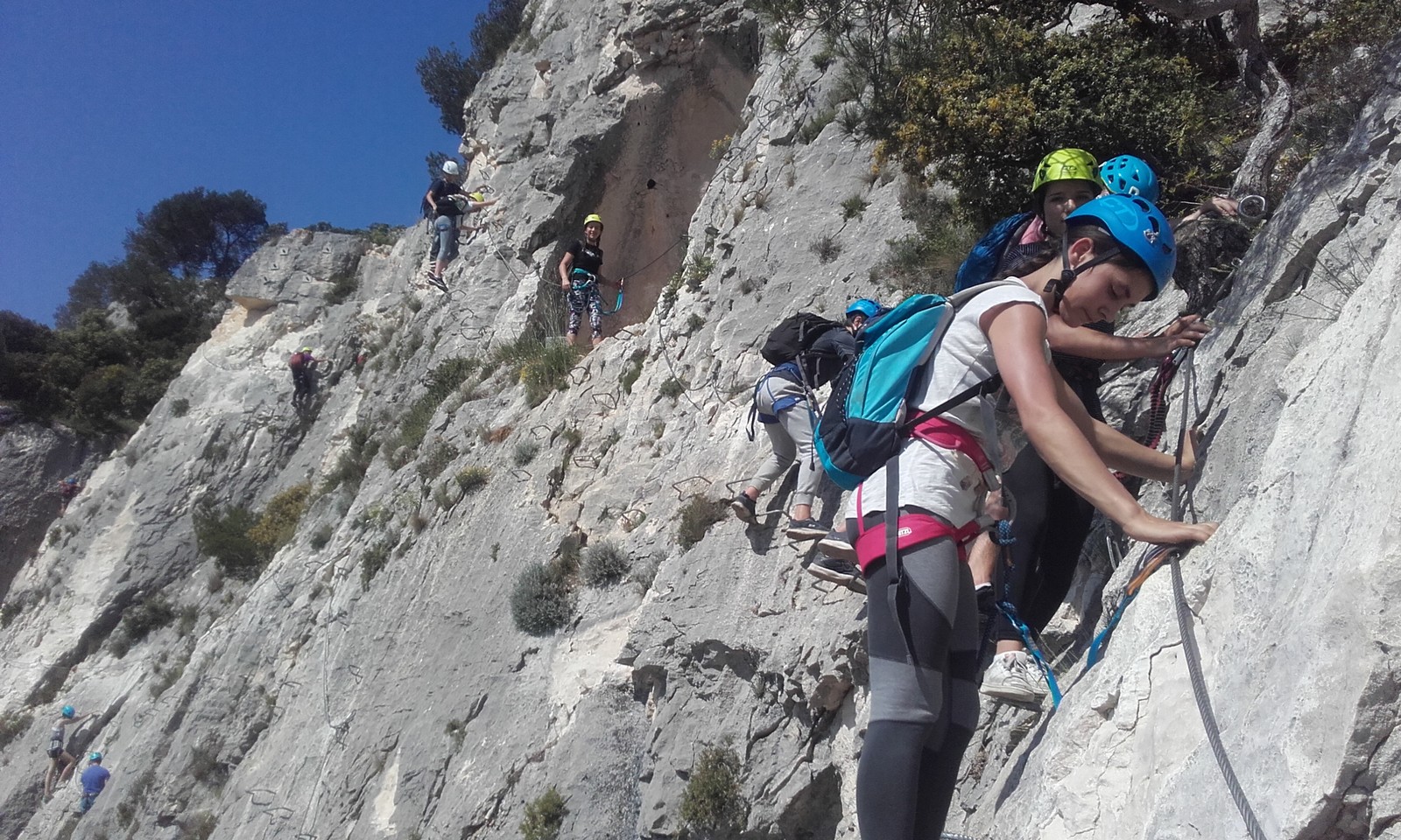 En ce milieu de semaine, les moniteurs avaient prévu une journée un peu plus tranquille pour faire un petit repos grimpe. Au programme un canyon sec : le ravin de Mainmorte. Oui, vous avez bien compris, il s’agit d’une descente de canyon mais sans eau qui coule, avec rappels, tyroliennes pour éviter les vasques stagnantes, marches et un peu de désescalade. C’est un superbe enchaînement de rappels dans d’incroyables resserrements qui nous attend. Nous nous déplaçons dans un décor magique, frais et humide à la recherche du soleil pour déjeuner.