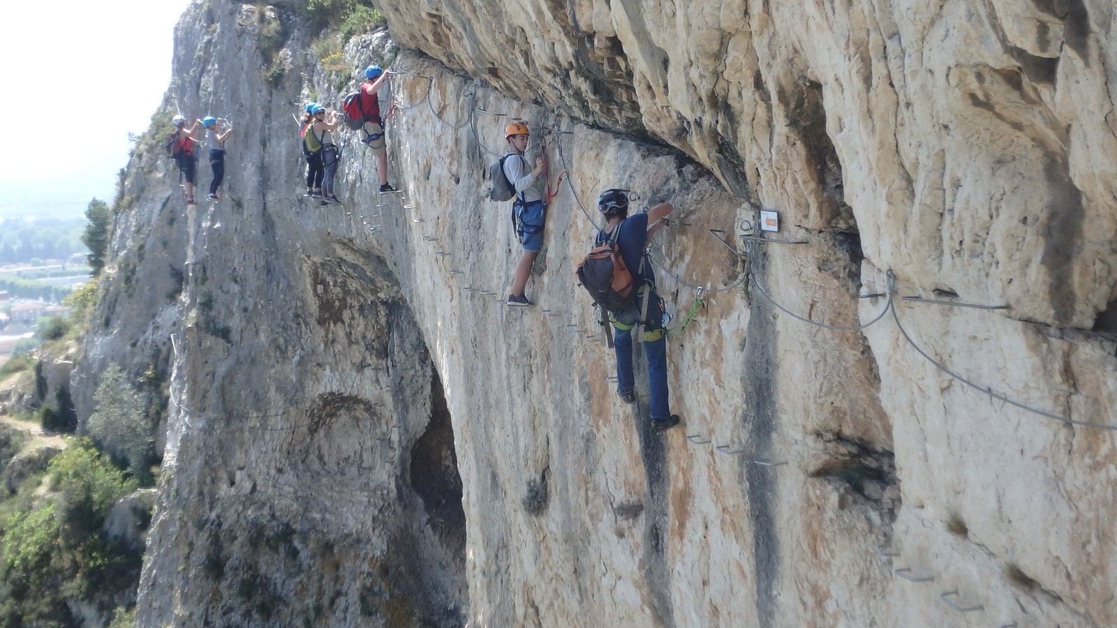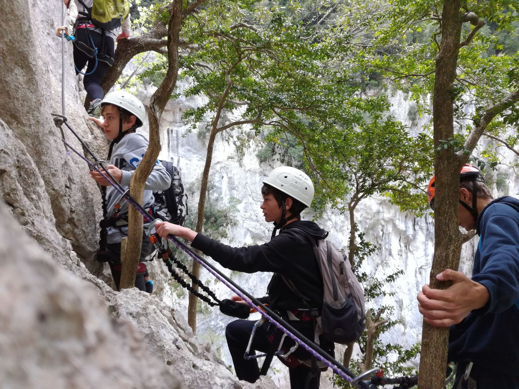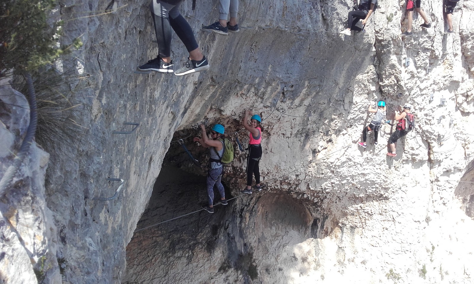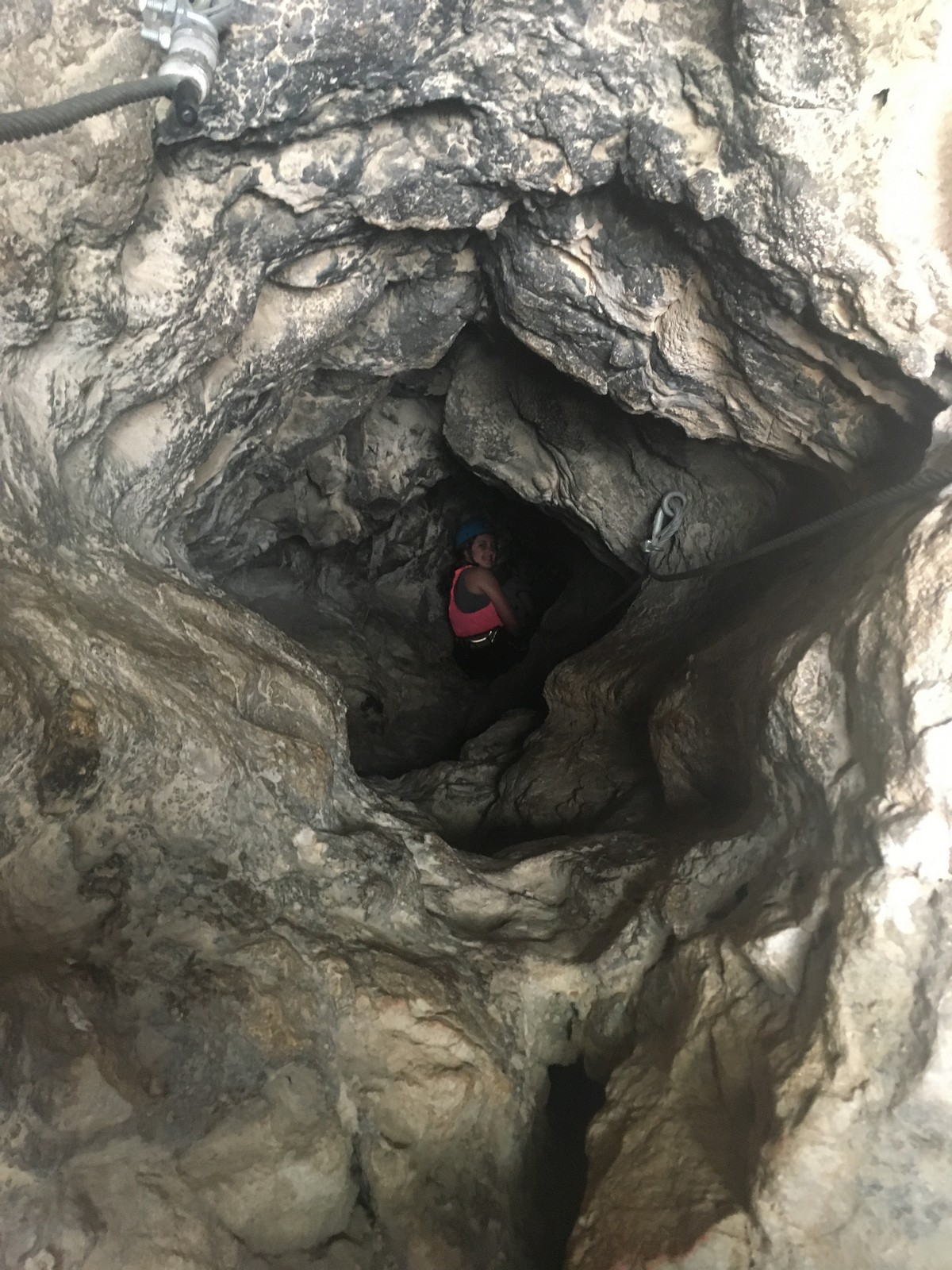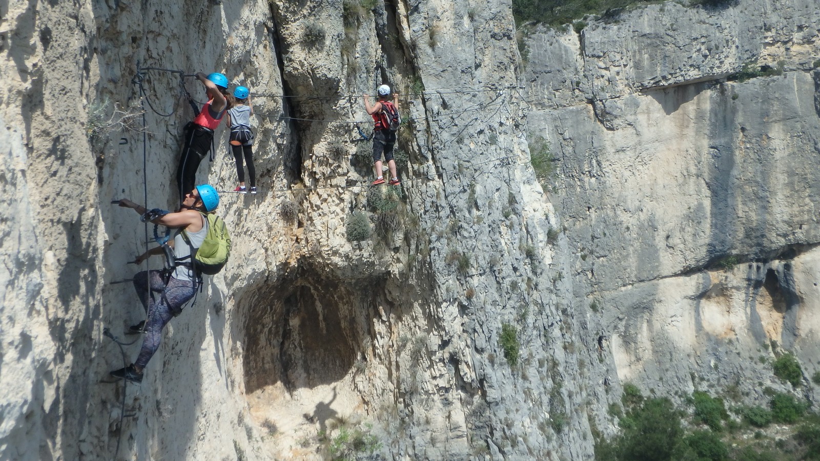 En ce milieu de semaine, les moniteurs avaient prévu une journée un peu plus tranquille pour faire un petit repos grimpe. Au programme un canyon sec : le ravin de Mainmorte. Oui, vous avez bien compris, il s’agit d’une descente de canyon mais sans eau qui coule, avec rappels, tyroliennes pour éviter les vasques stagnantes, marches et un peu de désescalade. C’est un superbe enchaînement de rappels dans d’incroyables resserrements qui nous attend. Nous nous déplaçons dans un décor magique, frais et humide à la recherche du soleil pour déjeuner.