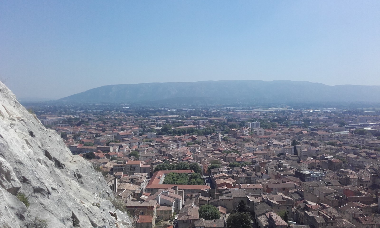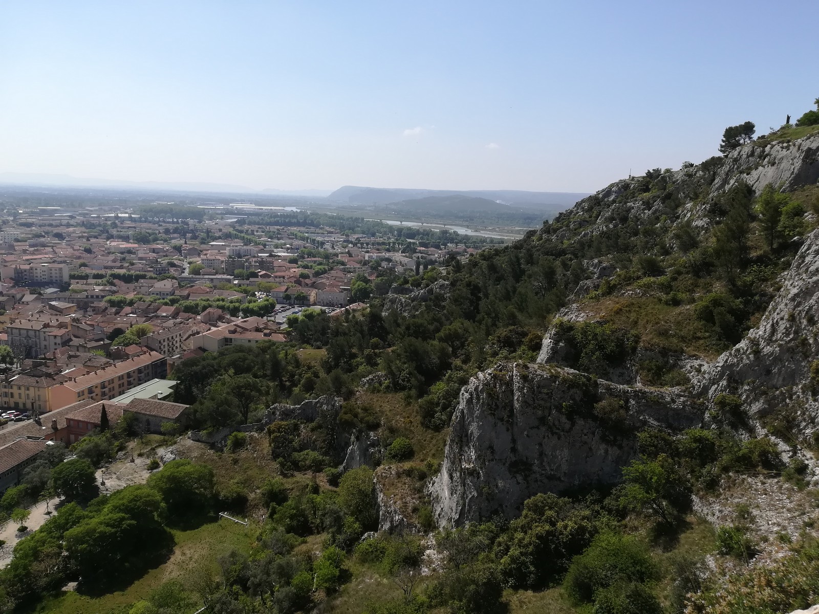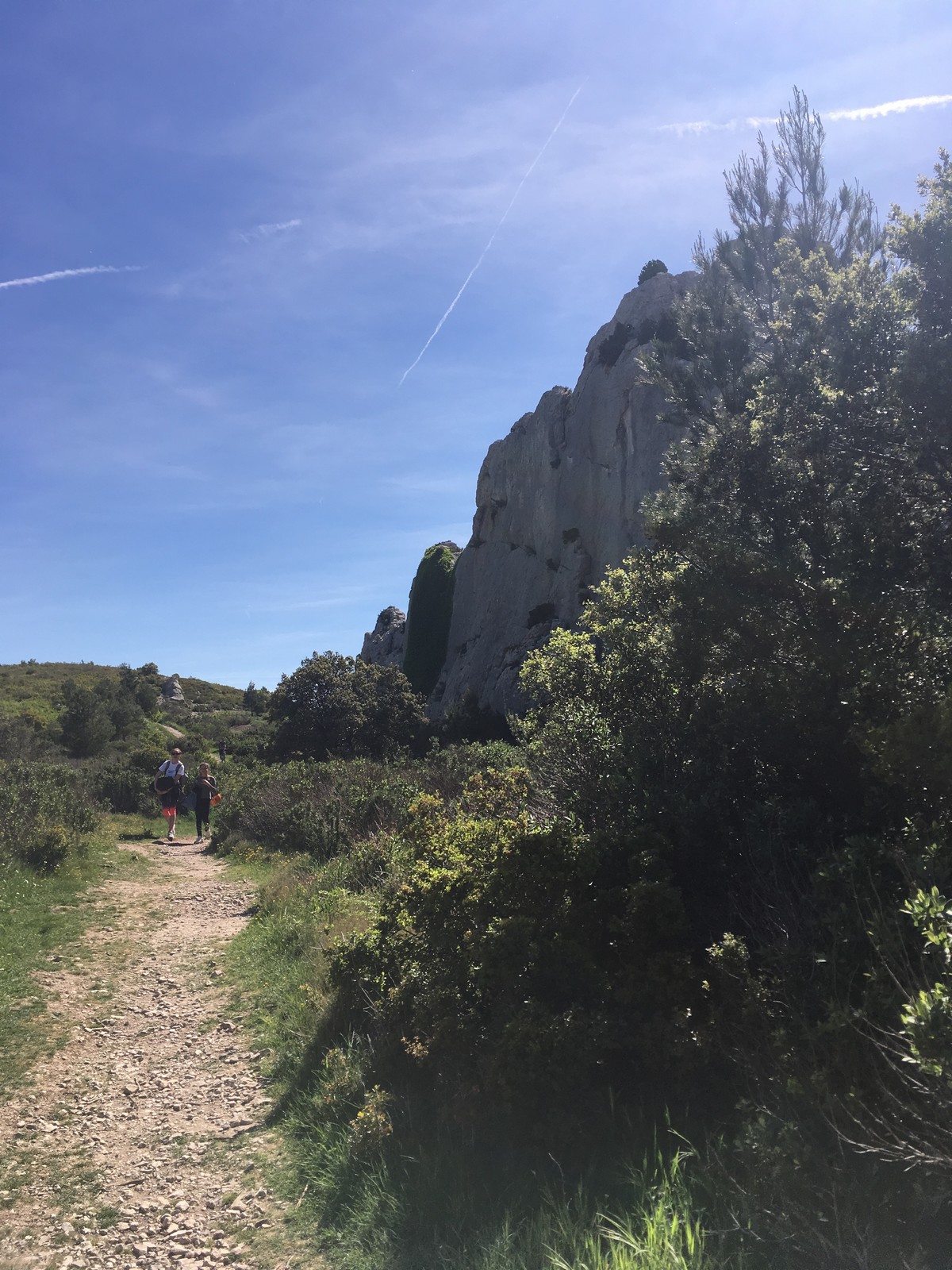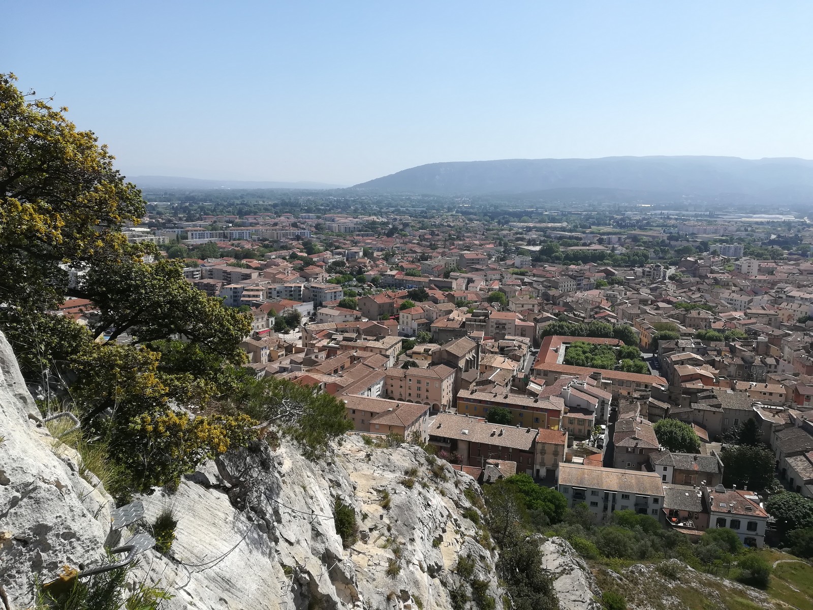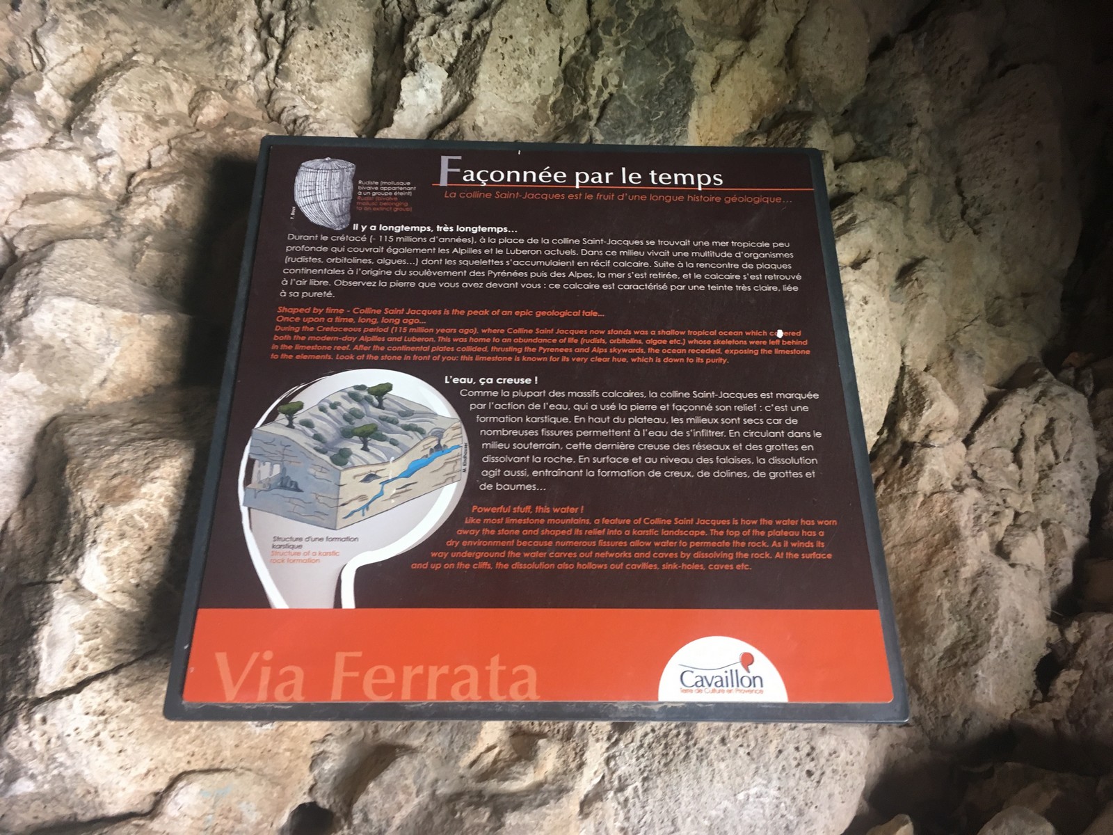 Mardi matin, nous sommes allés au site des Hauts Vernis, pratique car accessible depuis le haut du camping. Après une bonne demi-heure de marche d’approche plutôt raide dans laquelle on a failli perdre Adrien, nous arrivons au pied d’un très beau secteur de longues dalles grises côtées entre 5a et 7b+. Roche agréable, ombre pour le moment, et vue imprenable sur le lac de Sainte Croix !