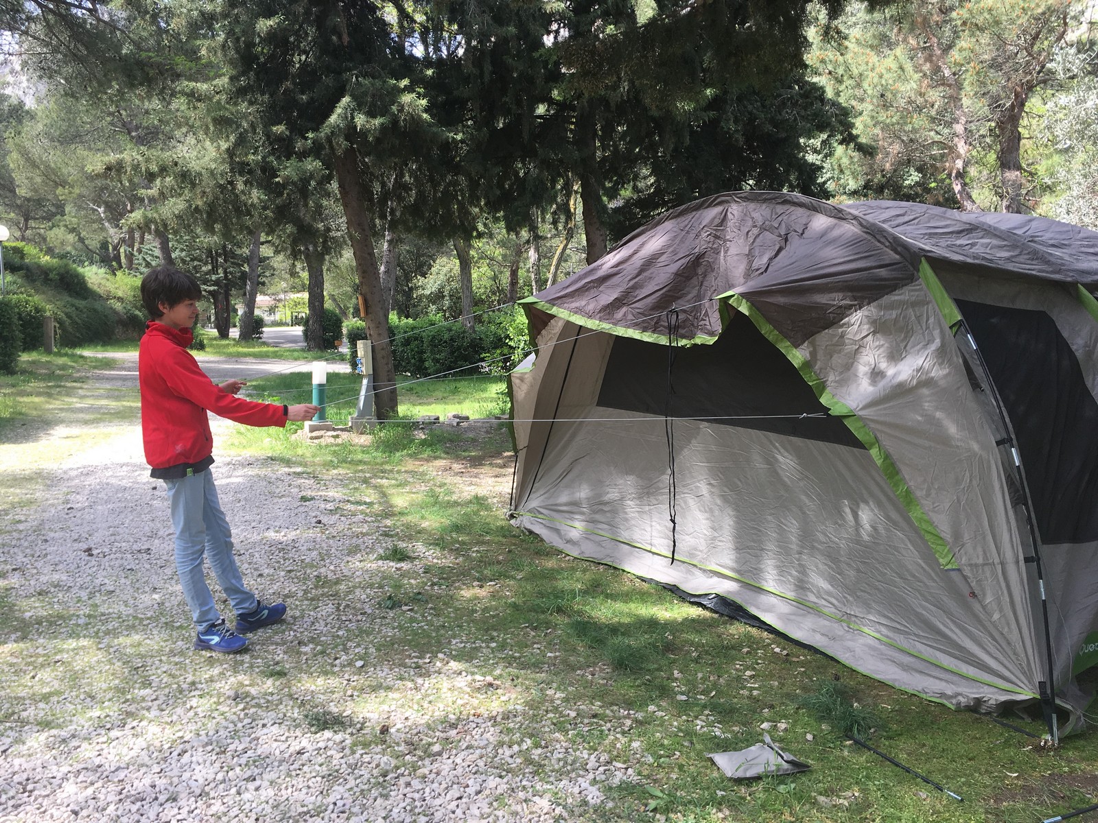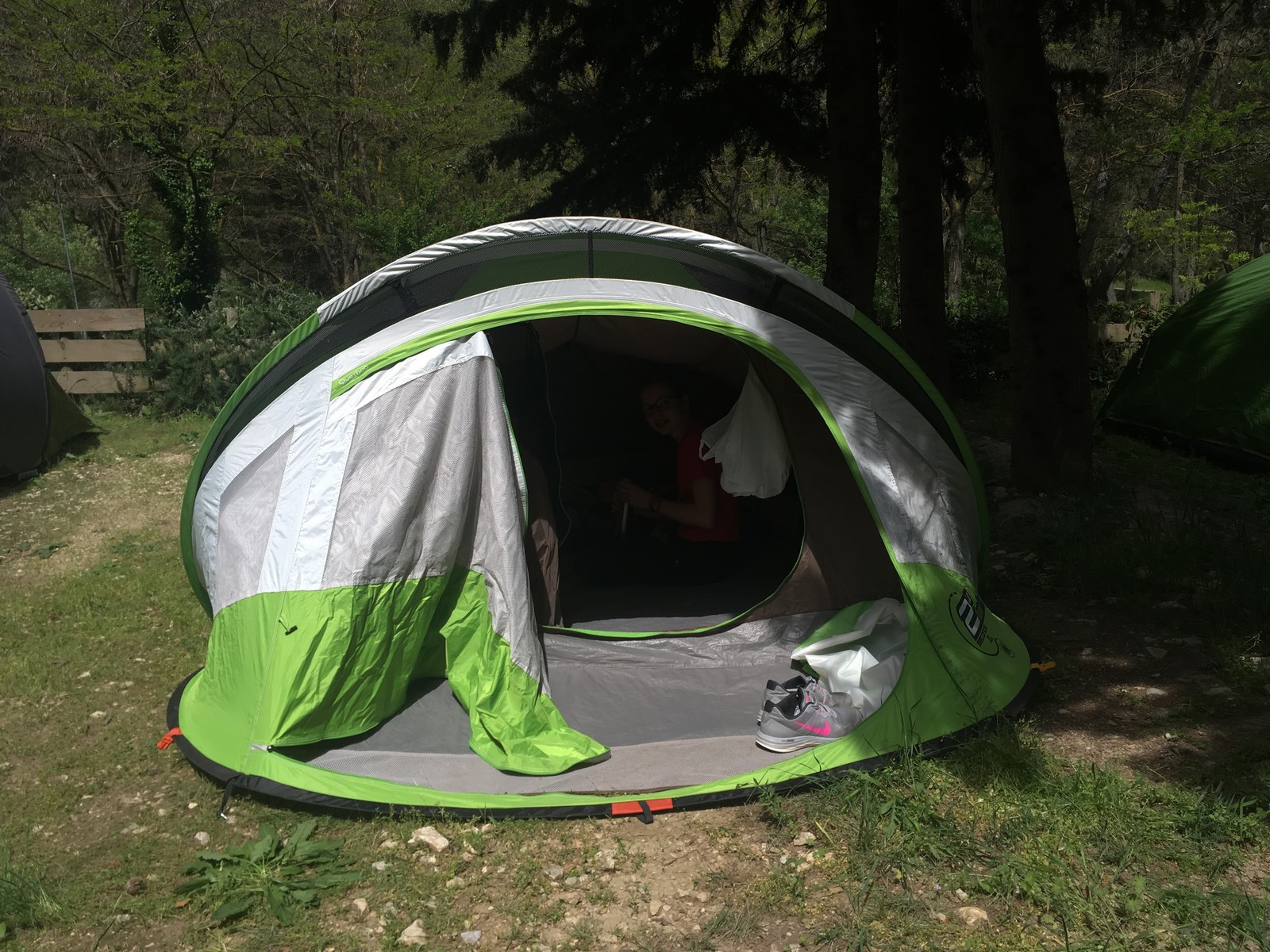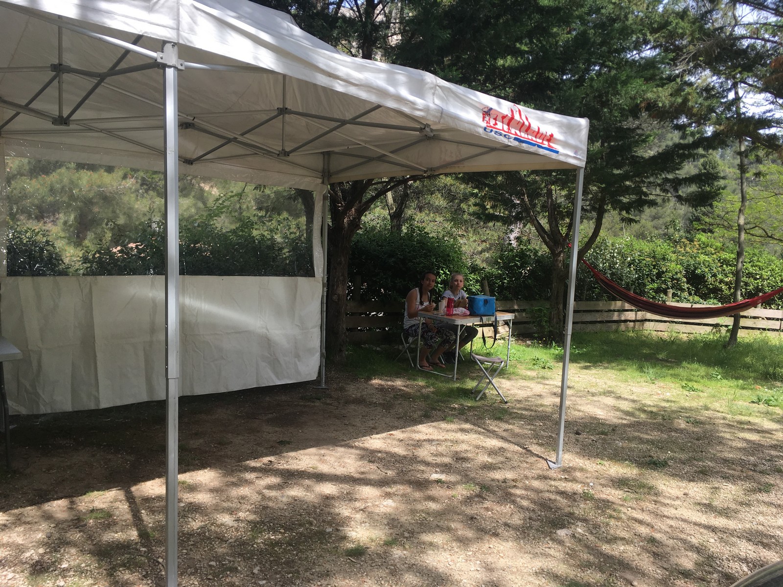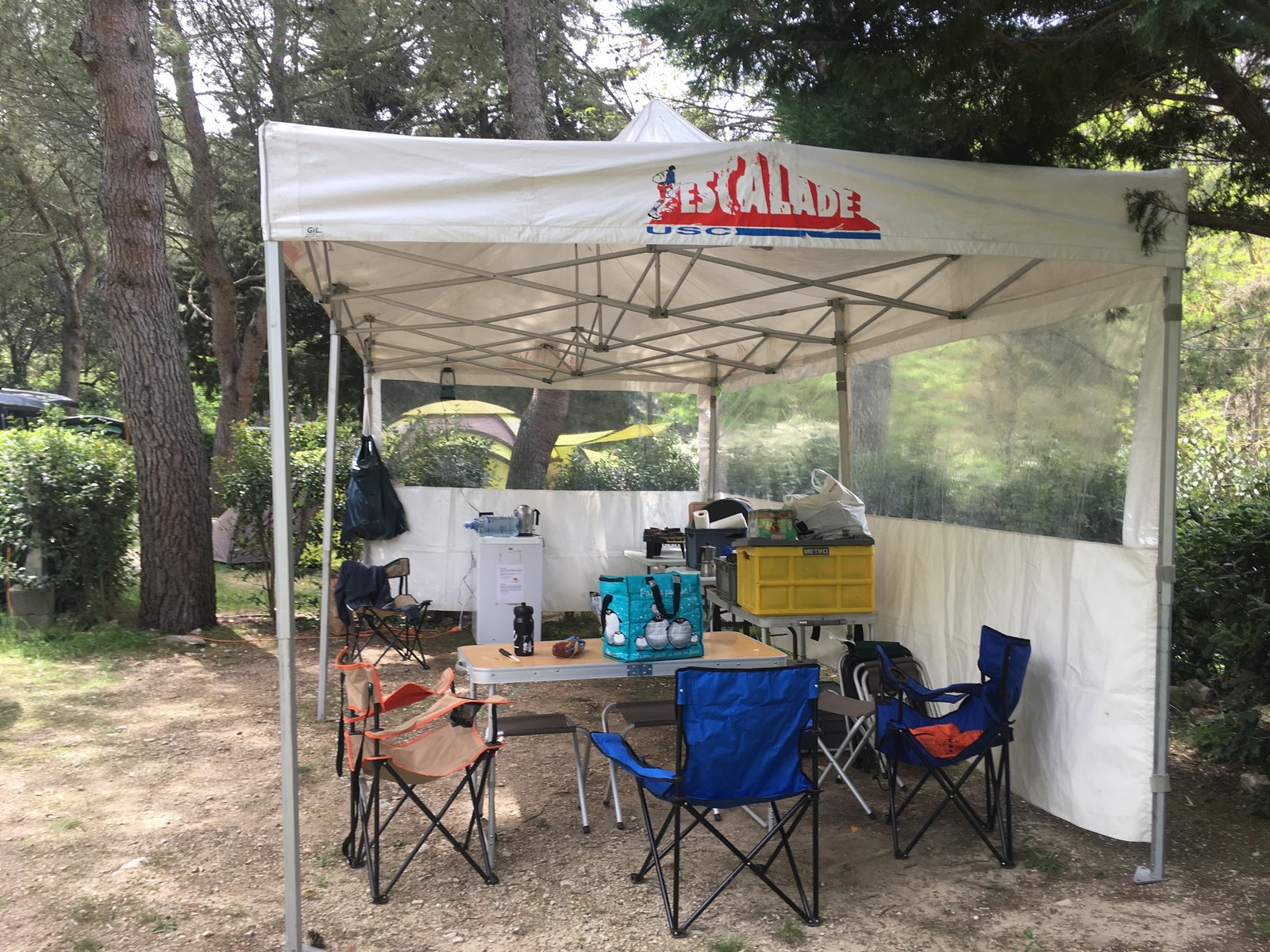 Un peu moins de 2 heures plus tard (enfin, sauf pour Guillaume qu’on attendra un peu plus longtemps), nous voilà arrivés sous le soleil au camping d’Aiguines, au bord du lac de Ste Croix. Nous commençons à nous installer dans un coin tranquille avant de lancer pour la première fois la phrase culte du stage « c’est pas là, on remonte dans le camion ! ». Les filles pourront ainsi tester le fly-surf version tente-minibus.