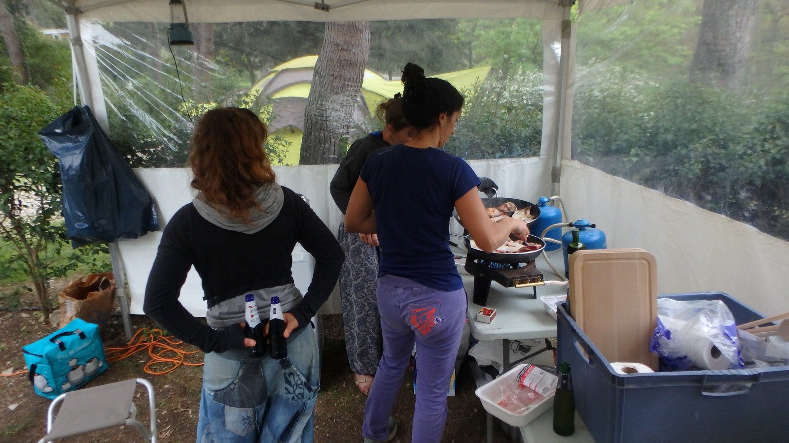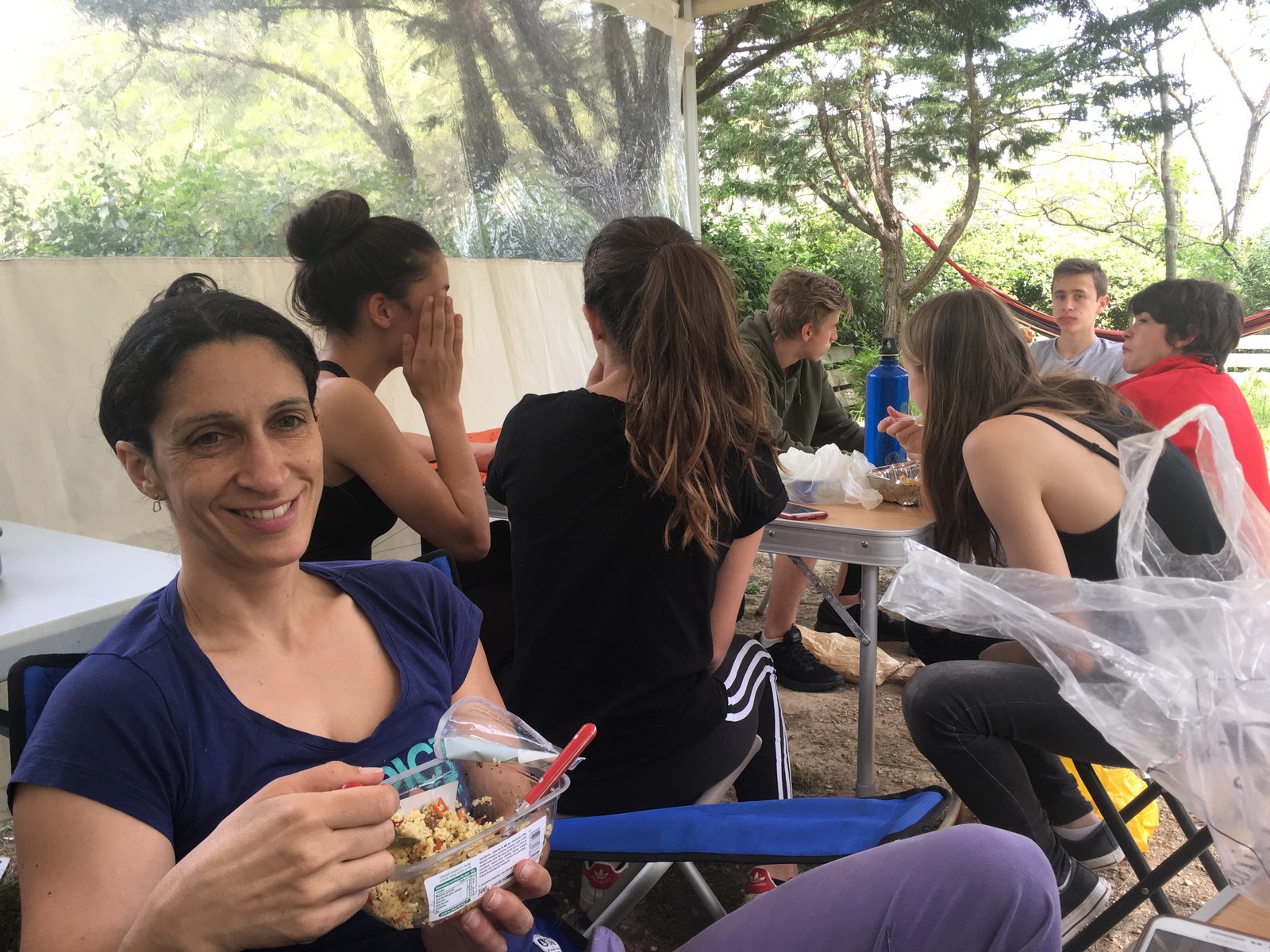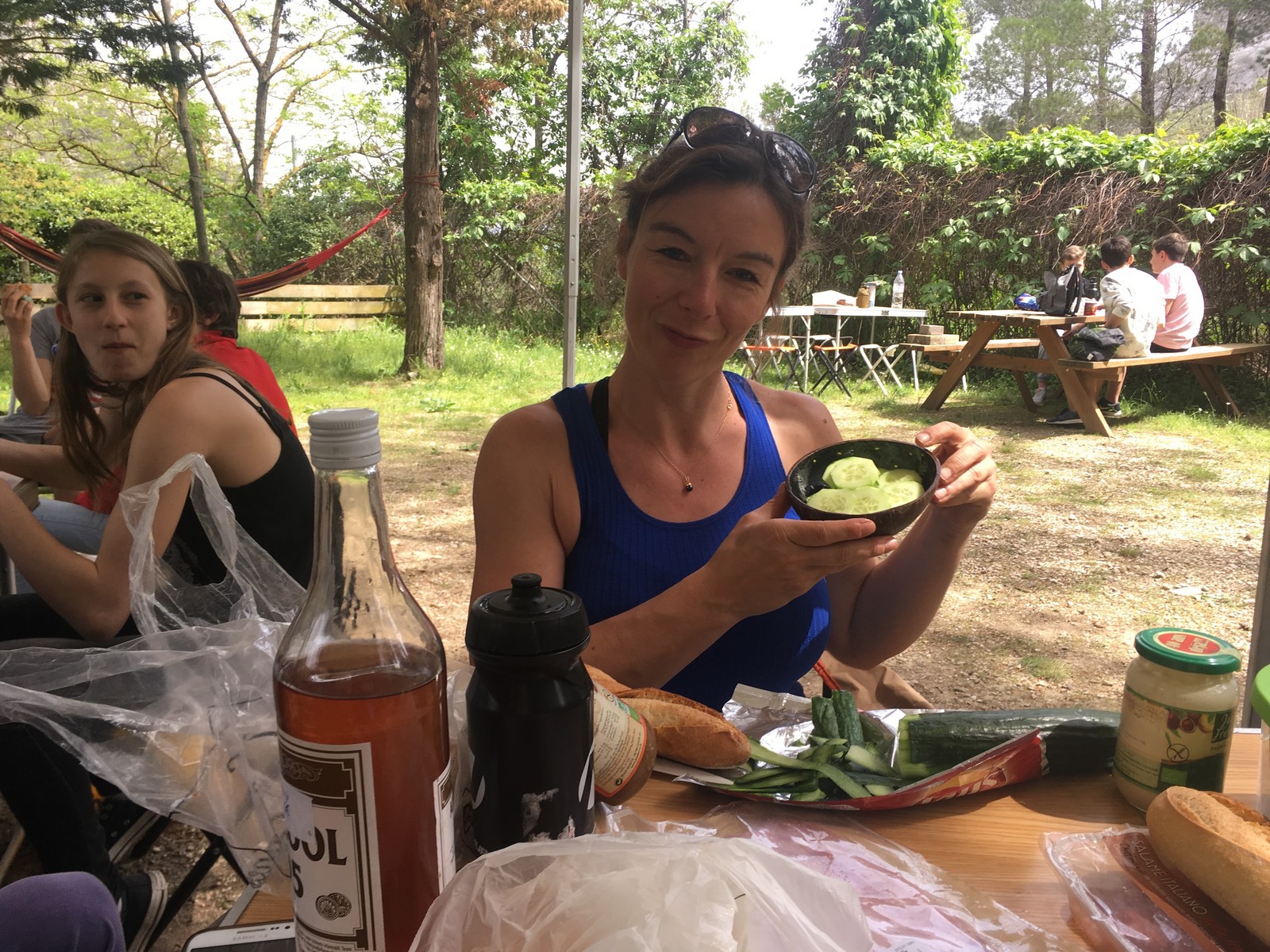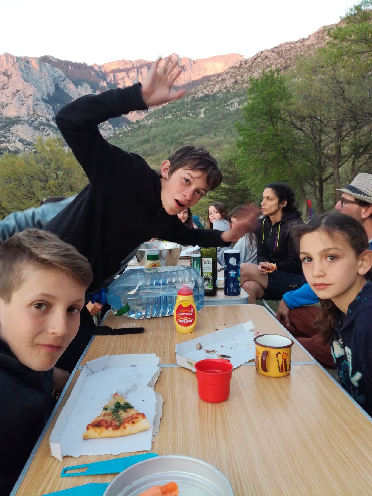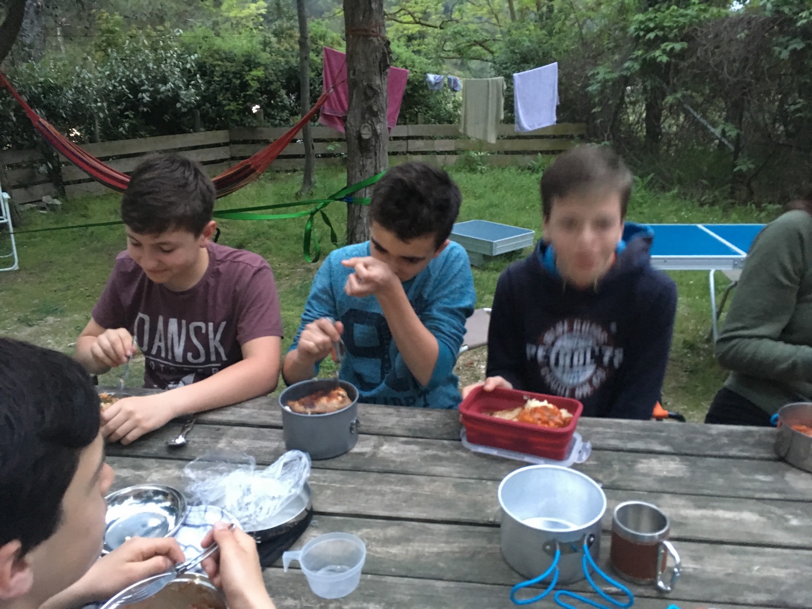 Le retour au camp se fait un peu tardivement, et on enchaîne rapidement sur les douches, les pâtes bolo, le gâteau au chocolat de Cécile et ce qui deviendra la traditionnelle soirée Loup-garou. Puis tout le monde au dodo !