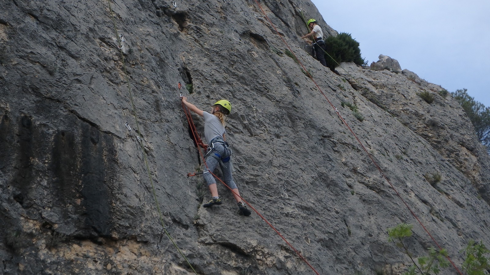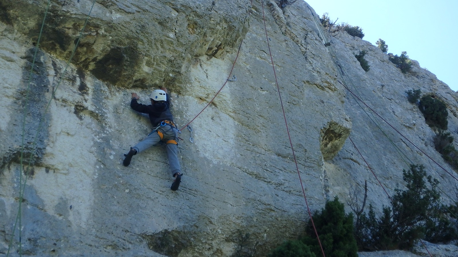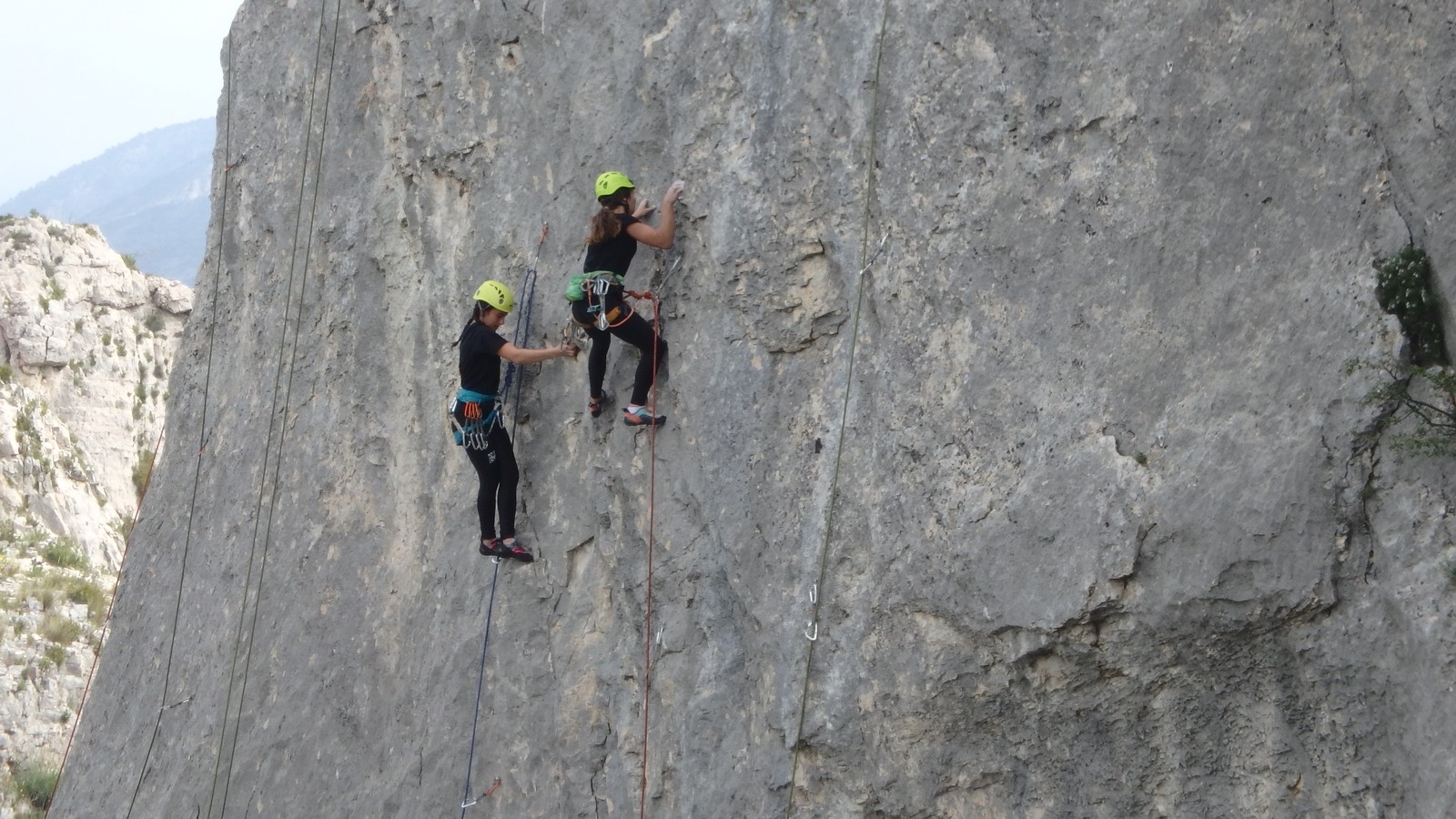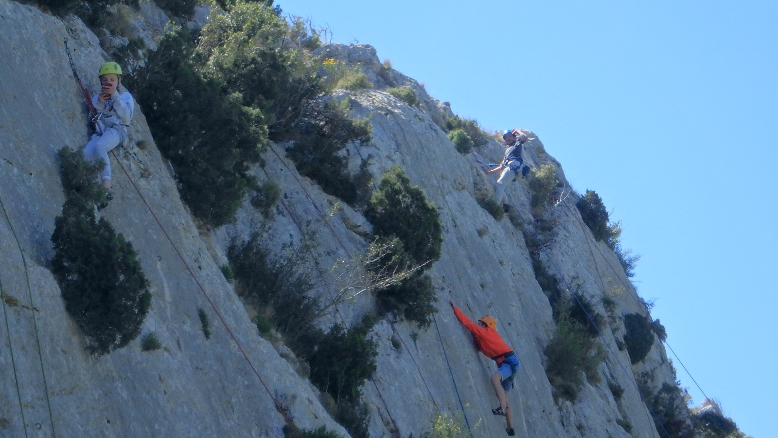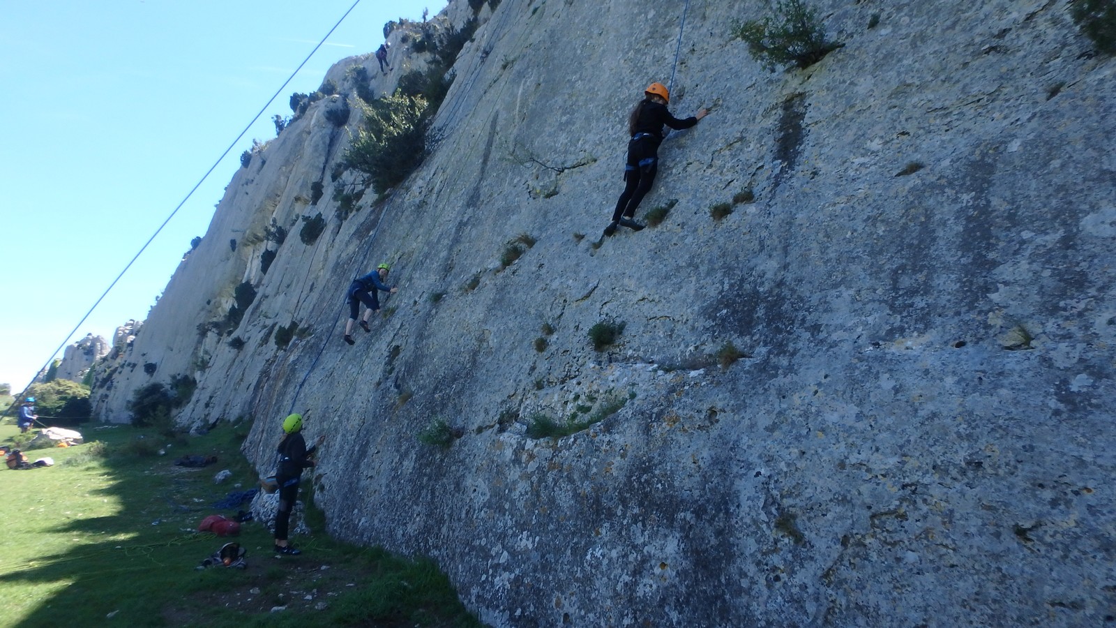 Les jeunes se lancent à l’assaut des voies, toujours chacun à son rythme. Lisa et Océane, que Sylvain et Guillaume poussent un peu plus que les autres, ont pour objectif 8 voies dans la journée. Océane peine à se délester d’une peur du vol tenace qui la prend dans un joli 6a un poil engagé que Lisa enchainera juste derrière. Les filles en seront bonnes pour une école de vol !