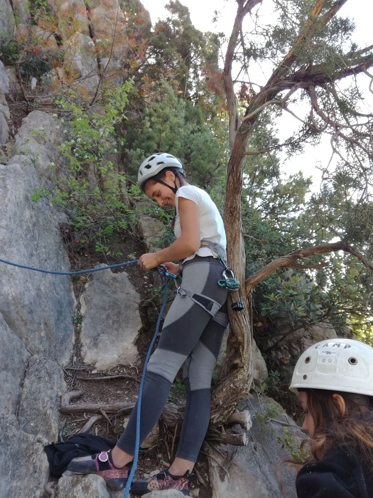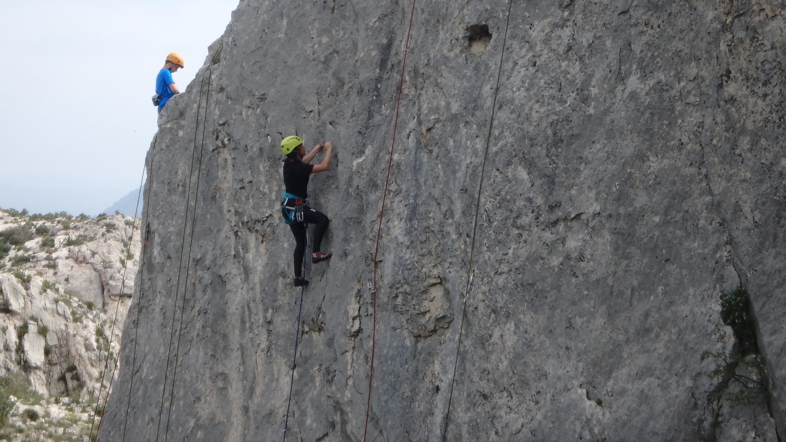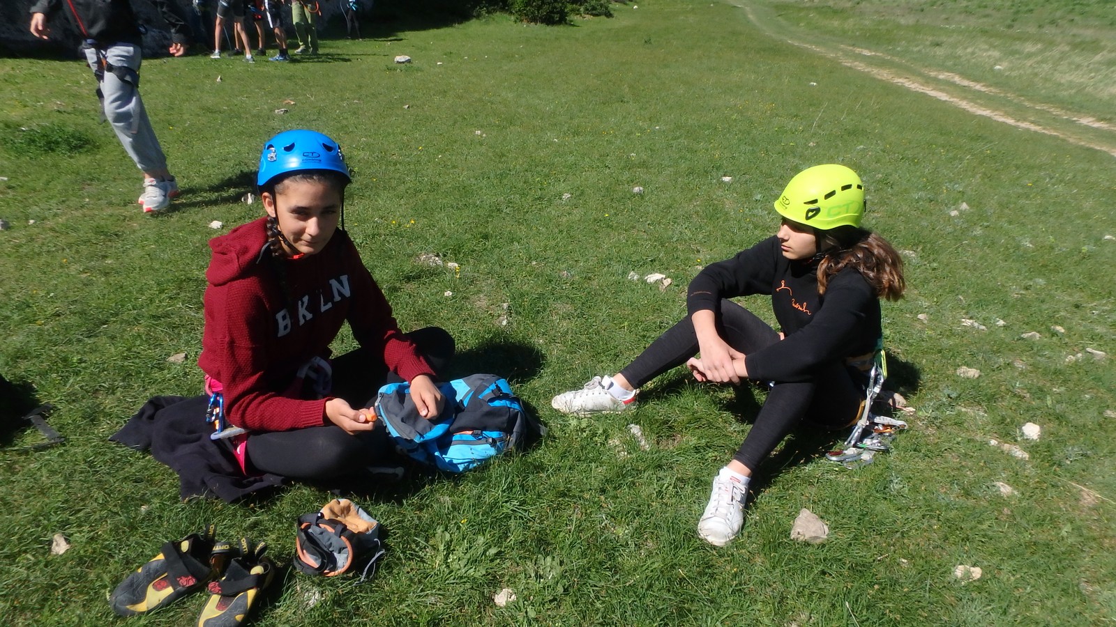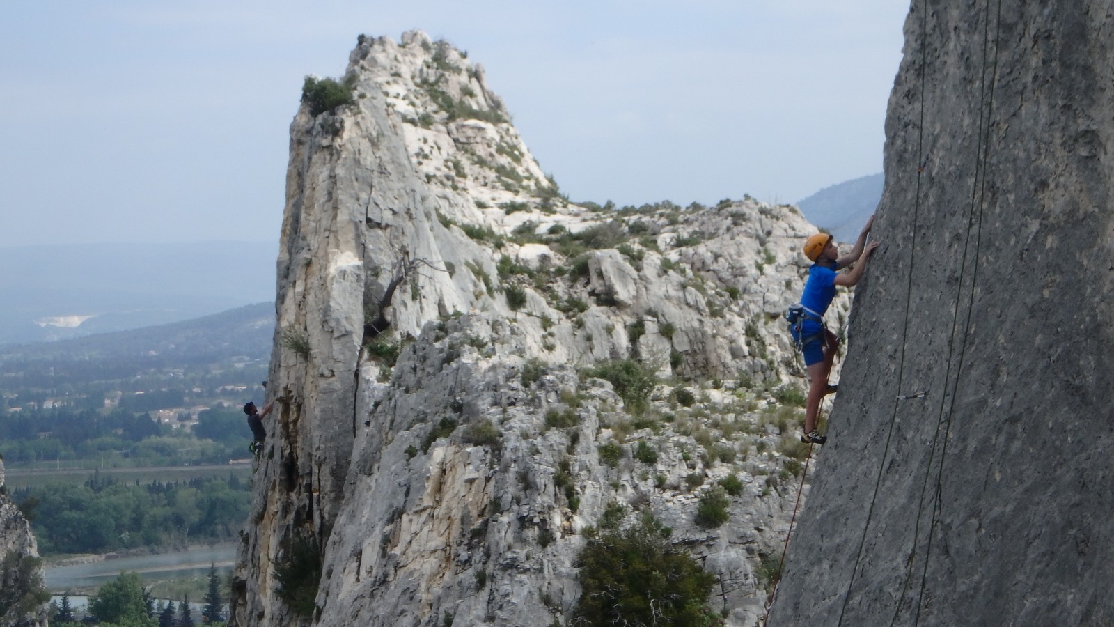 Les jeunes se lancent à l’assaut des voies, toujours chacun à son rythme. Lisa et Océane, que Sylvain et Guillaume poussent un peu plus que les autres, ont pour objectif 8 voies dans la journée. Océane peine à se délester d’une peur du vol tenace qui la prend dans un joli 6a un poil engagé que Lisa enchainera juste derrière. Les filles en seront bonnes pour une école de vol !