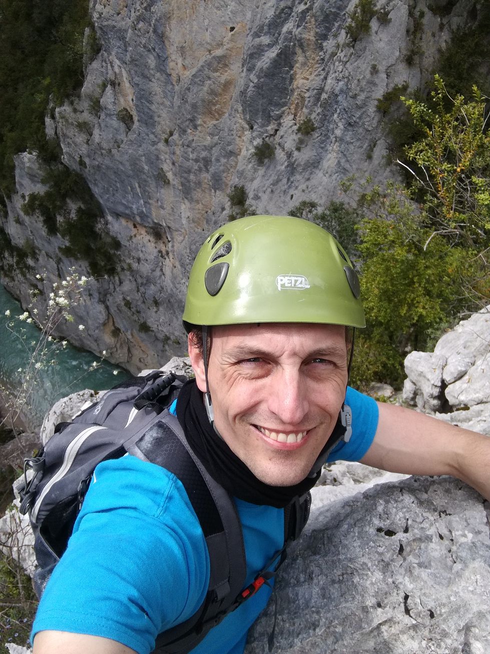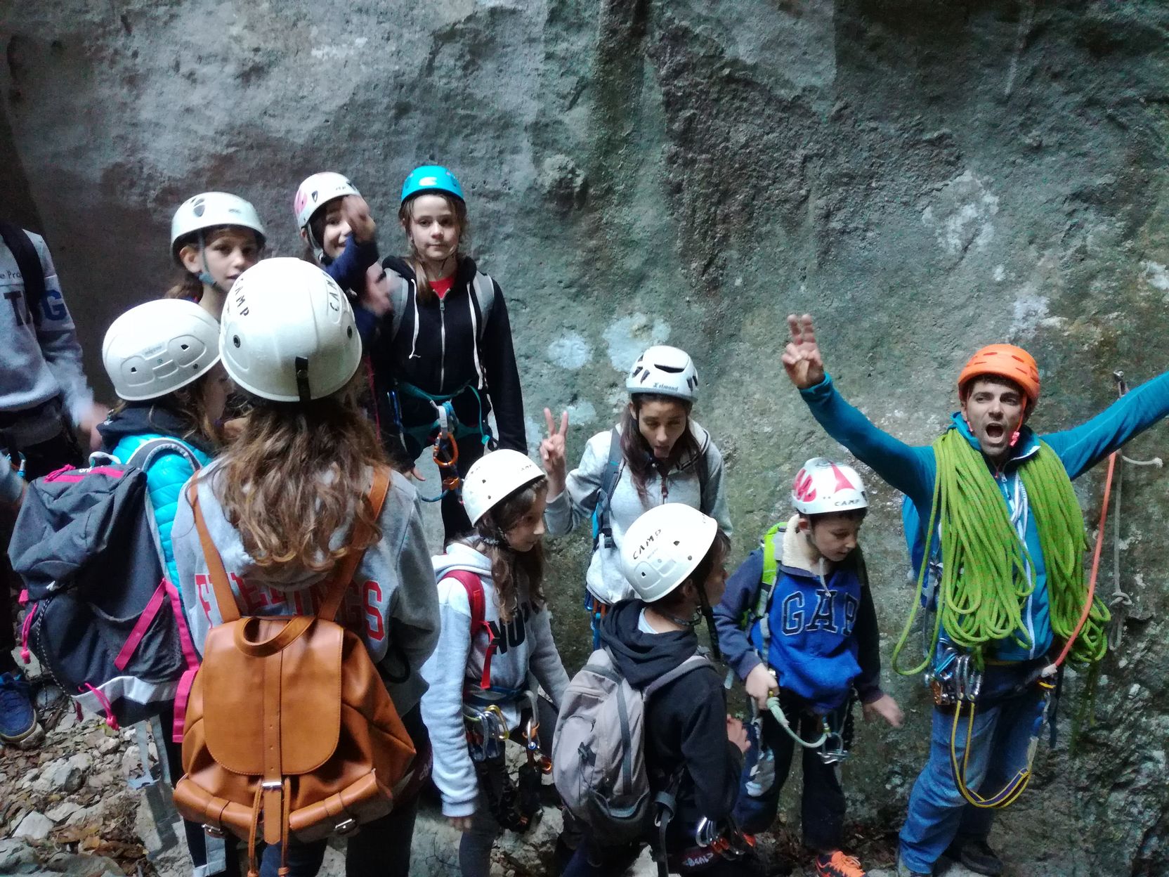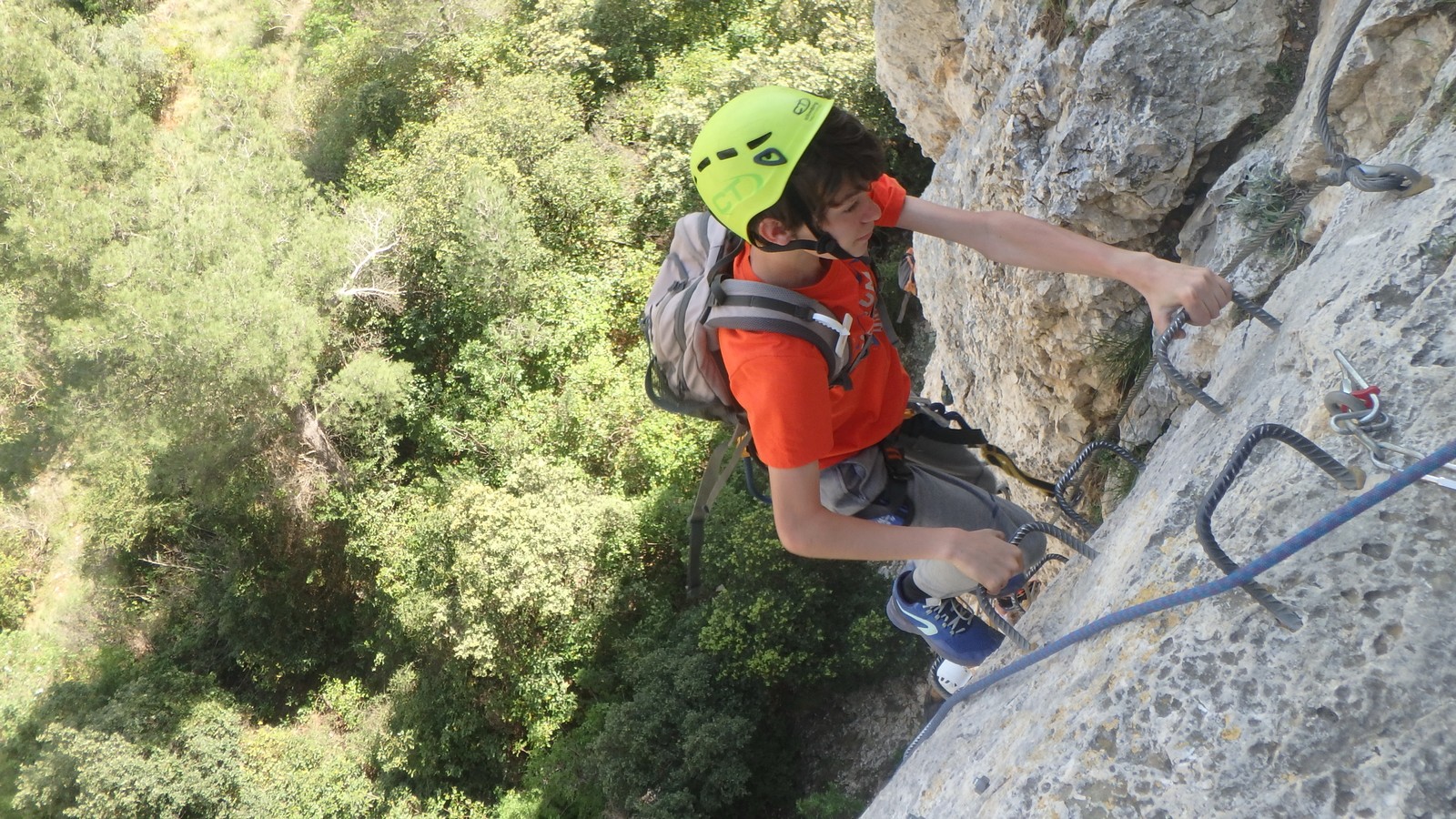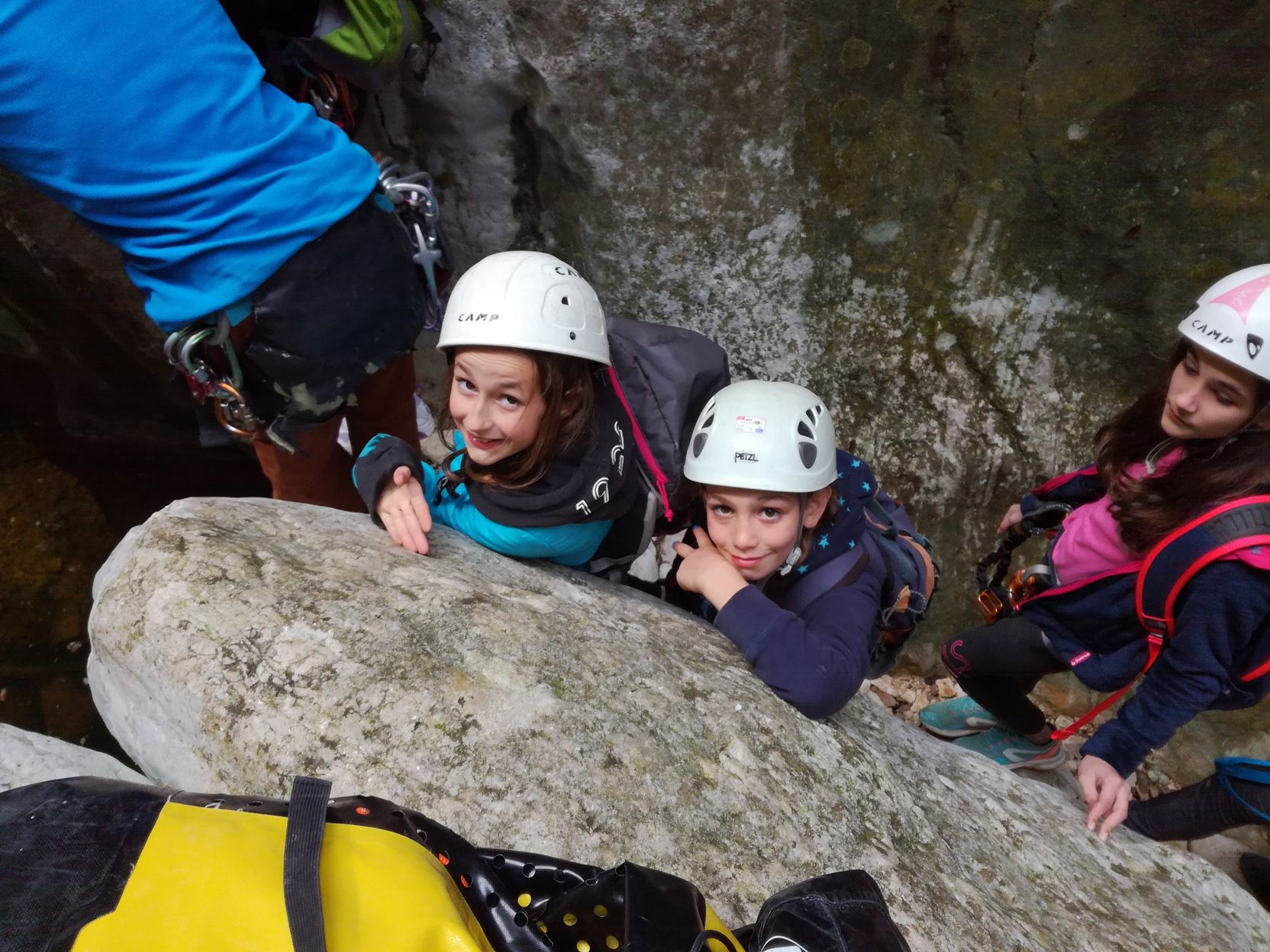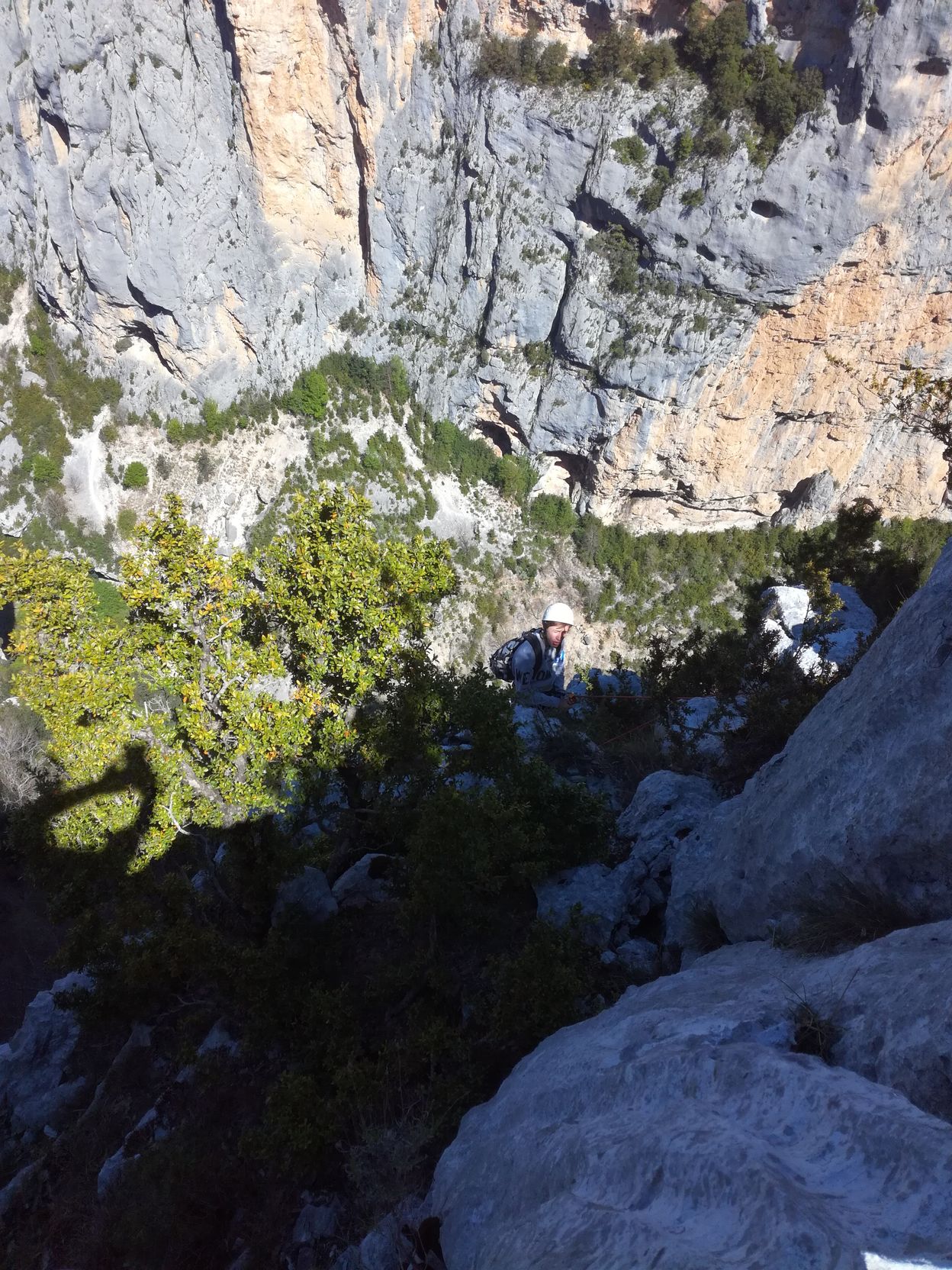 Ce jour-là on bat nos records de désorientation (il faut dire à notre décharge que les topos n’étaient pas très clairs et assez contradictoires), avec allers-retours en camions, en footing et en mode sanglier dans les broussailles pour repérer le départ des rappels. C’est long mais les enfants prennent leur mal en patience en inventant une chanson dédiée au club et à leurs moniteurs : « Avec Guillaume et Sylvain, on n’est jamais sûr de rien ! » Une petite variante plus loin, « Avec Guillaume et Sylvain, on n’est jamais sur l’bon chemin !« , nous descendons à tour de rôle (rapidement, on est rôdé de la veille) dans un décor impressionnant, celui du plus grand canyon d’Europe !