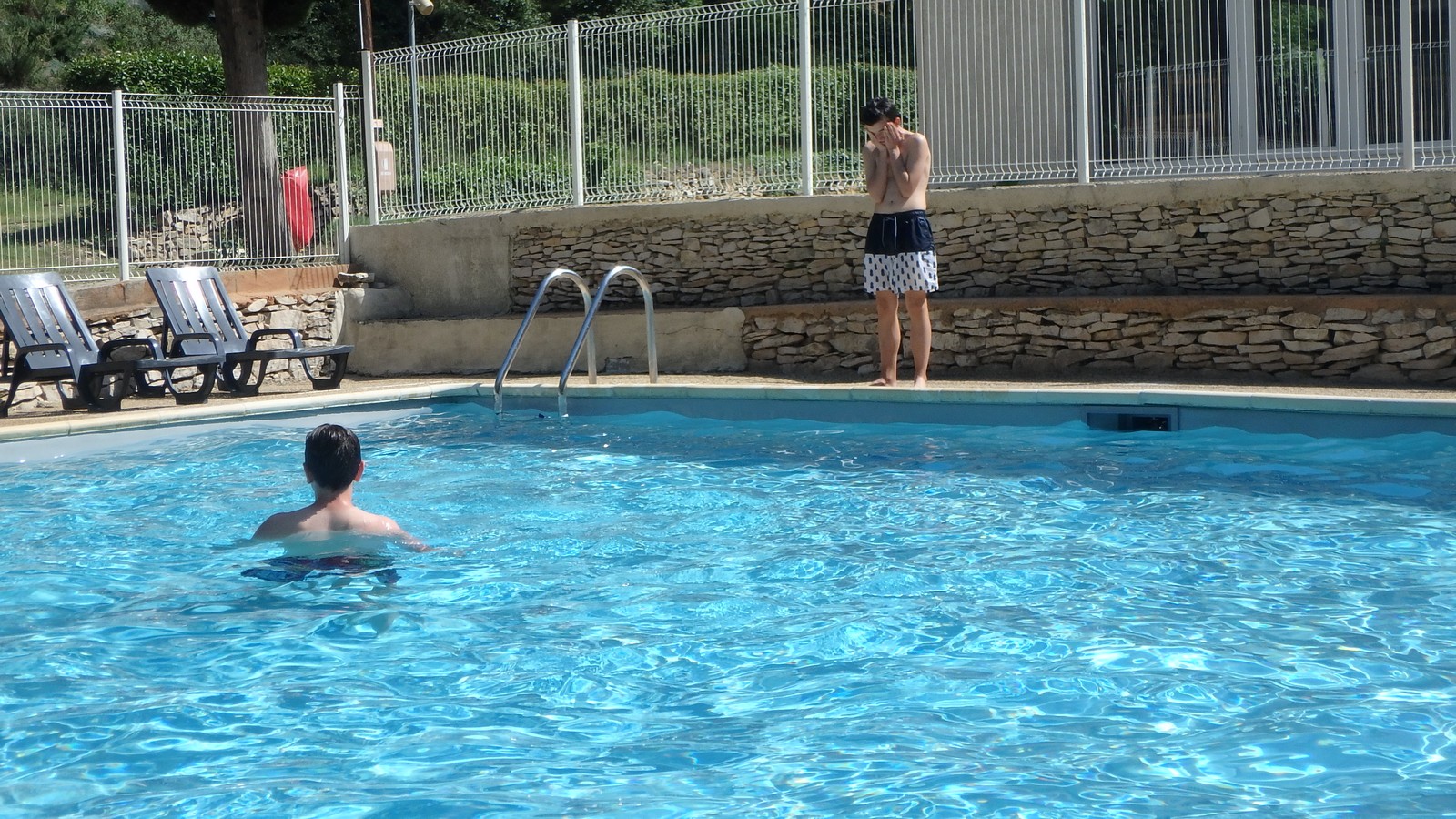 En fin de matinée tout est en ordre. La chaleur et la fatigue aidant, quelques jeunes feront l’impasse préférant se prélasser près du lac et profiter d’un dernier bain. Guillaume se dévoue 😉 alors que Sylvain, dans un dernier effort surhumain, amène le petit groupe de motivés pour une dernière séance de grimpe sur les dalles du Galetas, à quelques encablures du camping. Magnifiques envolées de 30m toutes en fissures obliques offrant de bonnes prises, pour des cotations dans le 6 super bien équipées. Perf du jour pour Vincent et Constant qui enchaînent un 6a+ à vue en voie de chauffe, pendant que Lisa s’efforce de surmonter son appréhension et se bat pour engager au-dessus des points.