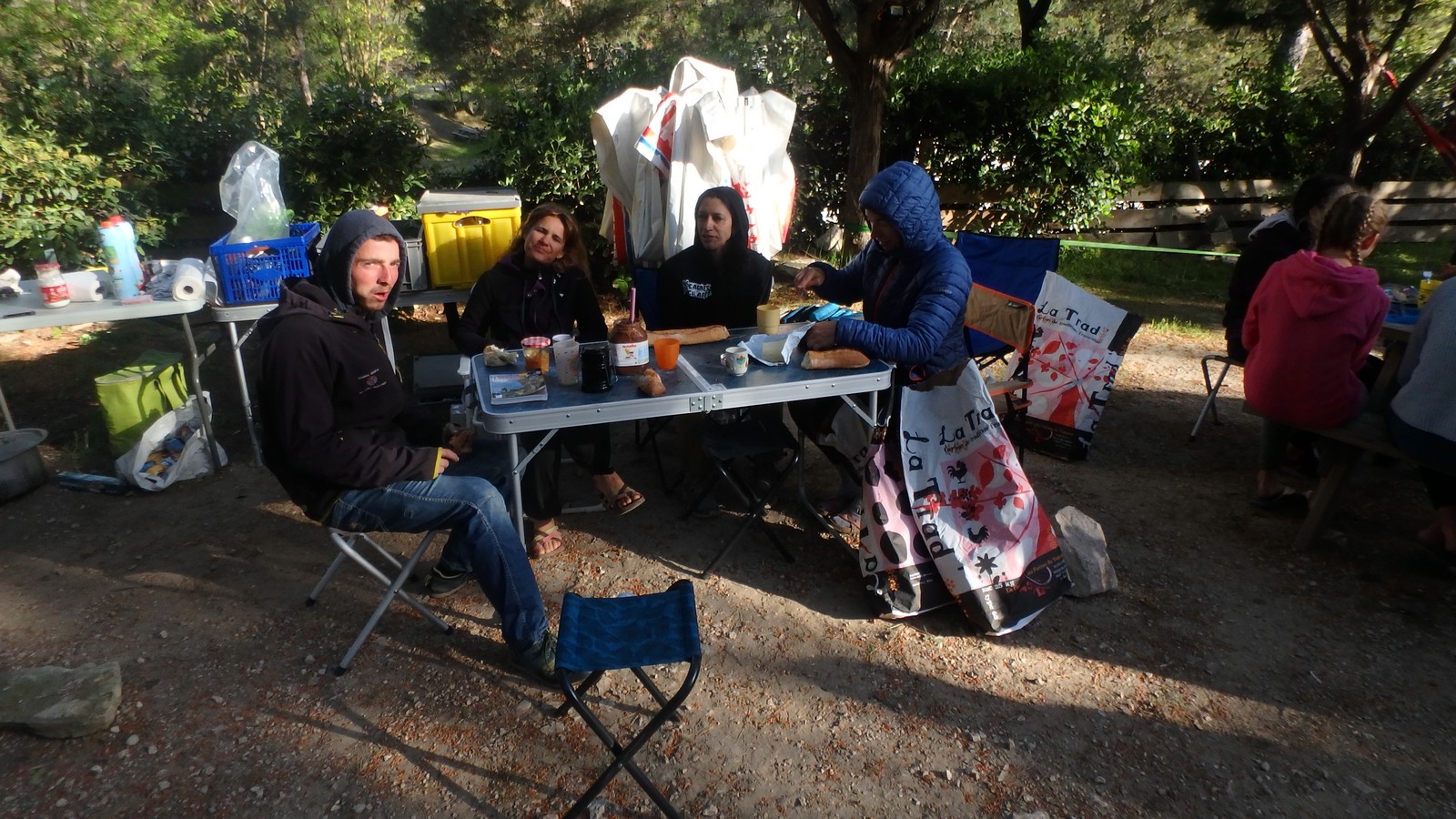 Dernier réveil de la semaine, de plus en plus tardif pour la plupart, sauf pour Sylvain qui nous ramène les croissants pour nous récompenser de nos efforts.