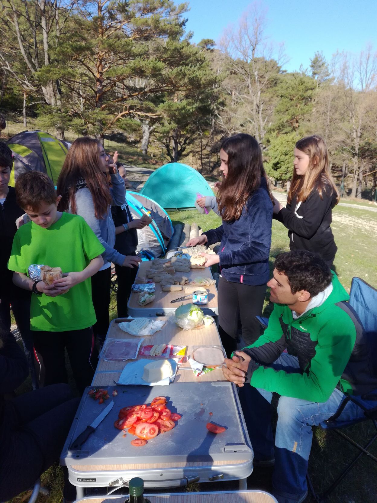 Le deuxième essai est le bon, le responsable du camping nous propose un emplacement plus proche du lac et un peu à l’écart des autres campeurs pour préserver leur tranquillité, et le camp s’installe doucement et sûrement, tout le monde mettant la main à la pâte. Un premier pique-nique sur le camp s’organise (pour ceux qui n’ont pas oublié d’amener leur sandwich ;-)), puis direction le spot de grimpe du vallon d’Estay.